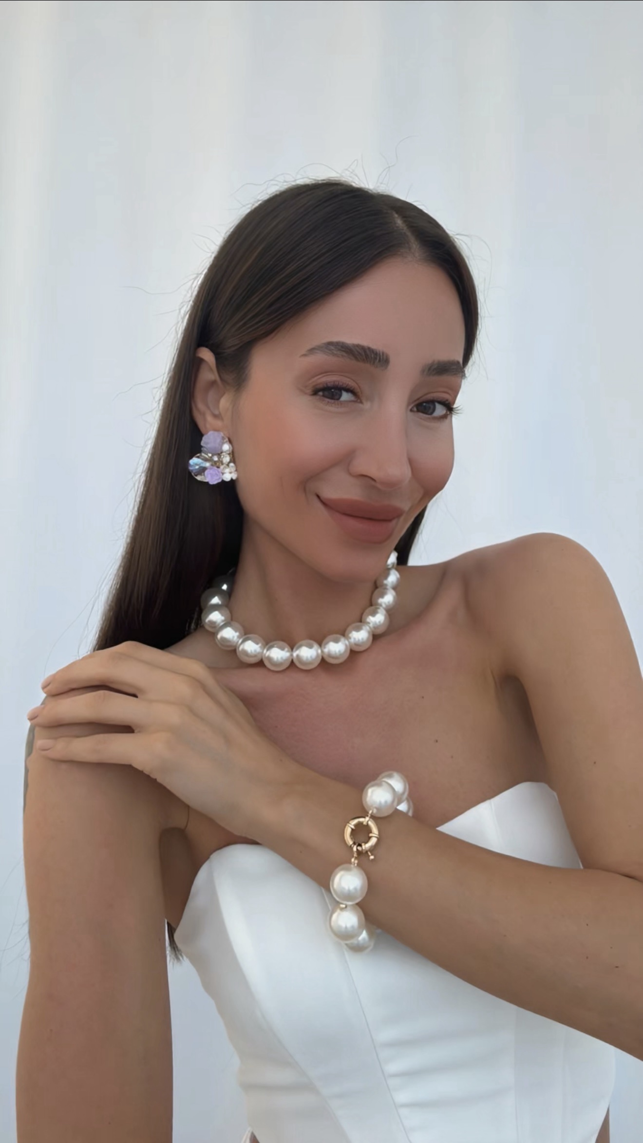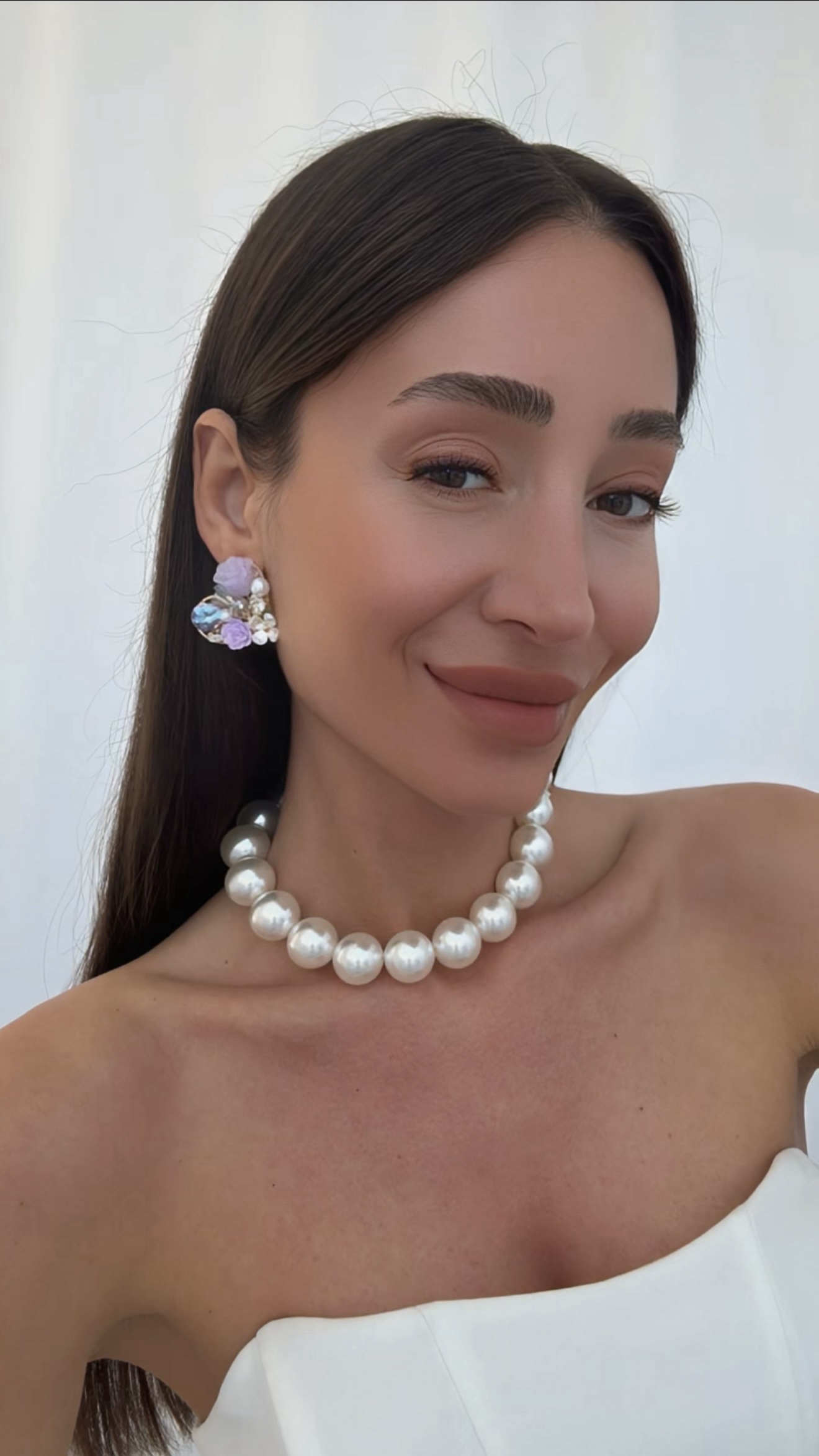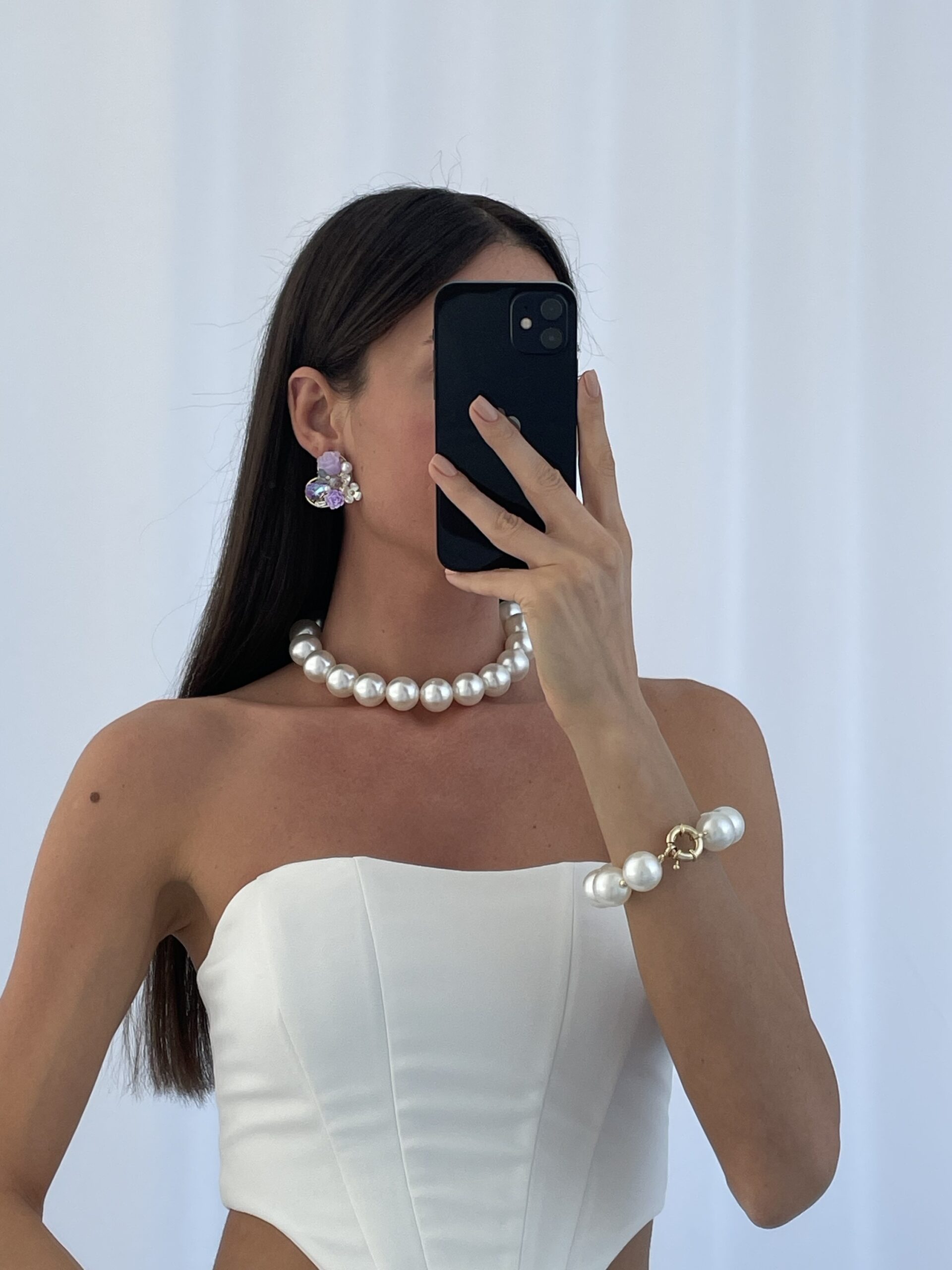 Özel Seri Taşlı Çiçek & İnci Tasarım Mor Kalp Küpe