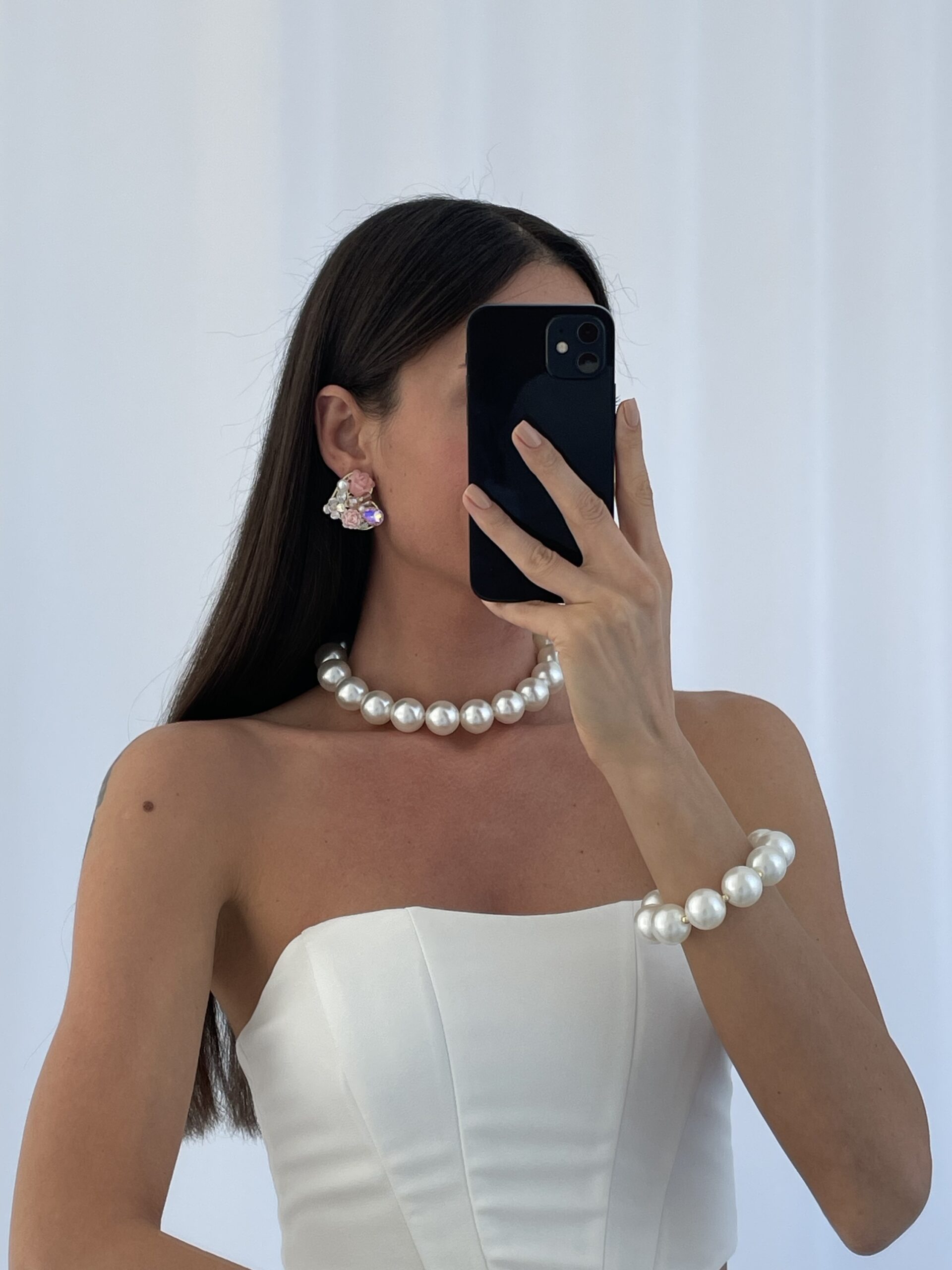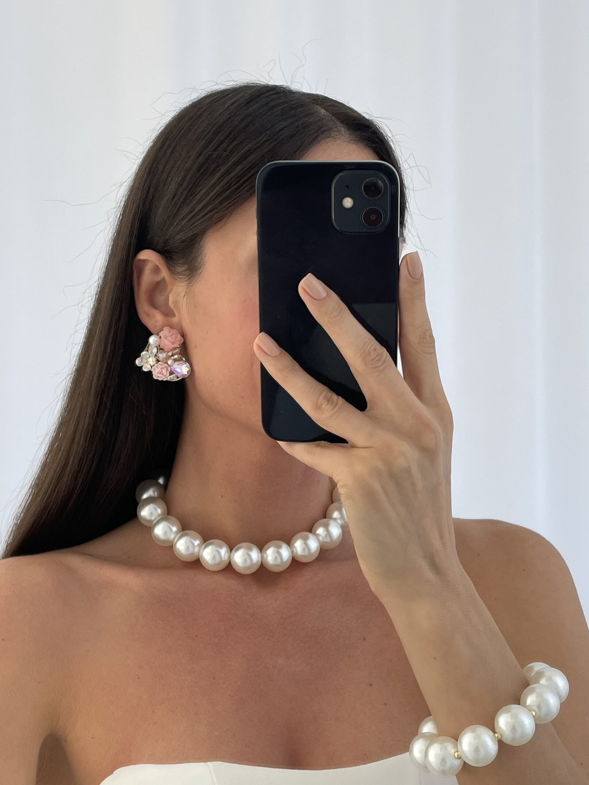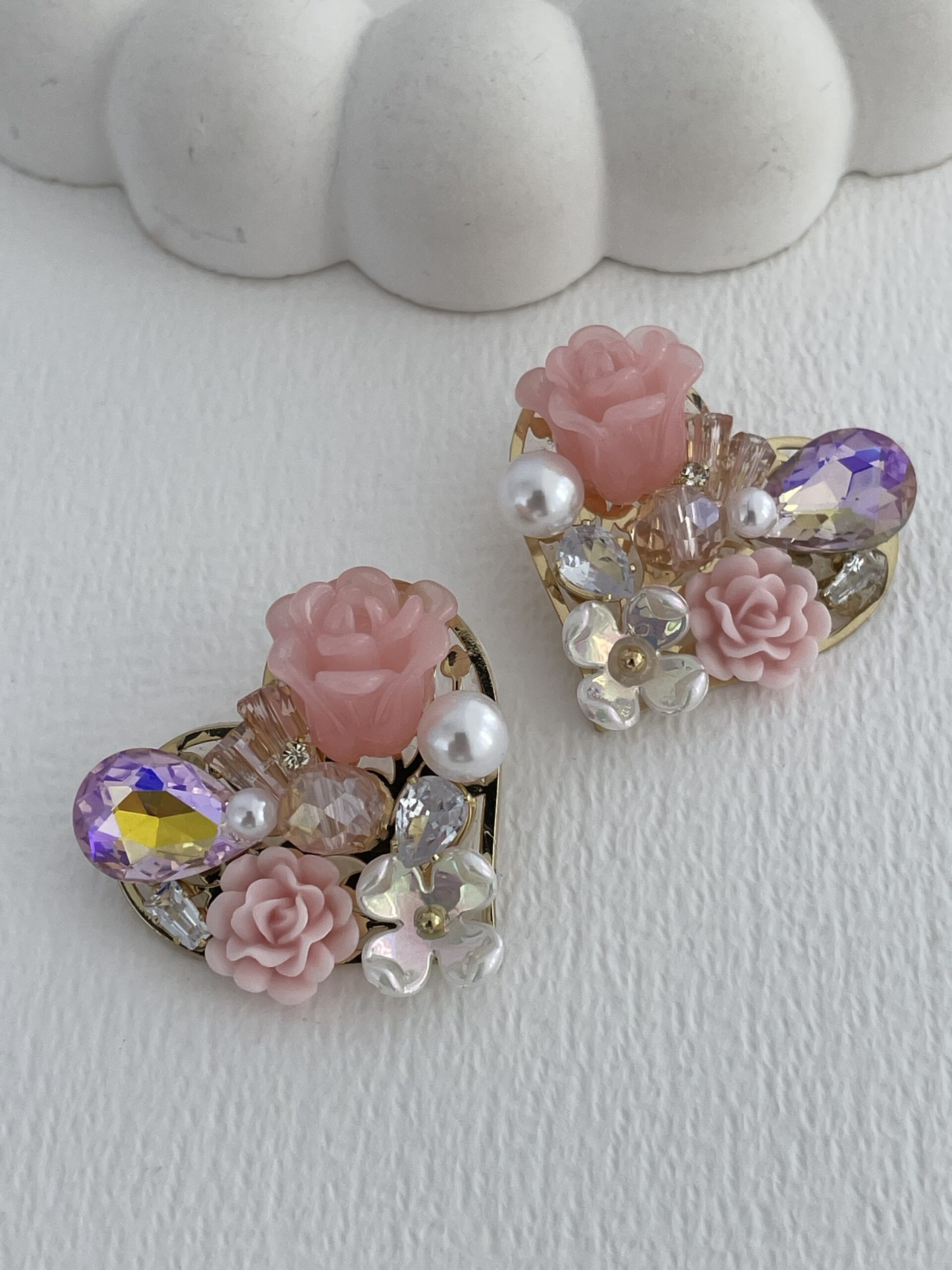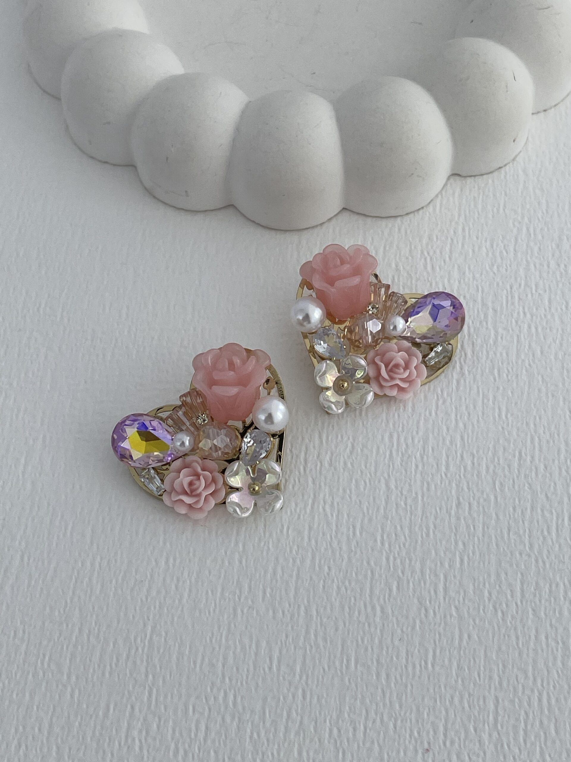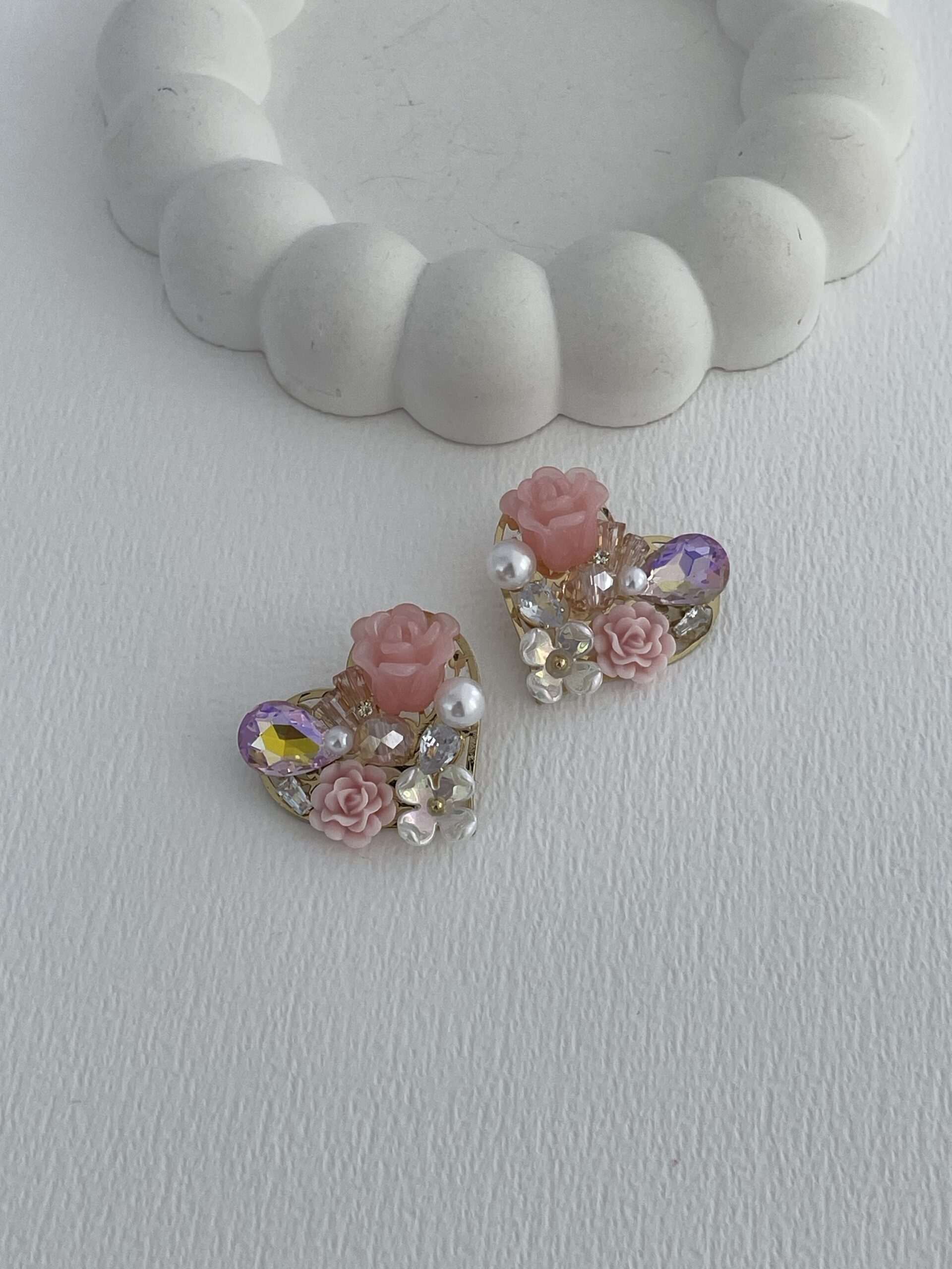 Özel Seri Taşlı Çiçek & İnci Tasarım Pembe Kalp Küpe