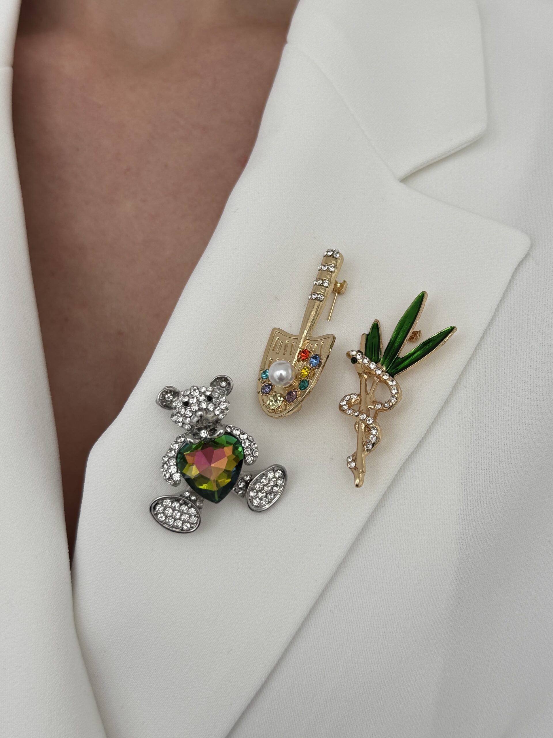 Özel Seri Taşlı Kürek Tasarım Gold Broş
