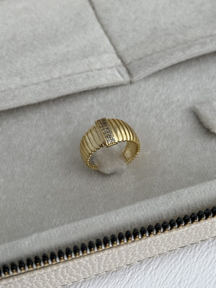 Özel Seri Tek Sıra Zirkon Taş Tasarım Ayarlanabilir Gold Yüzük