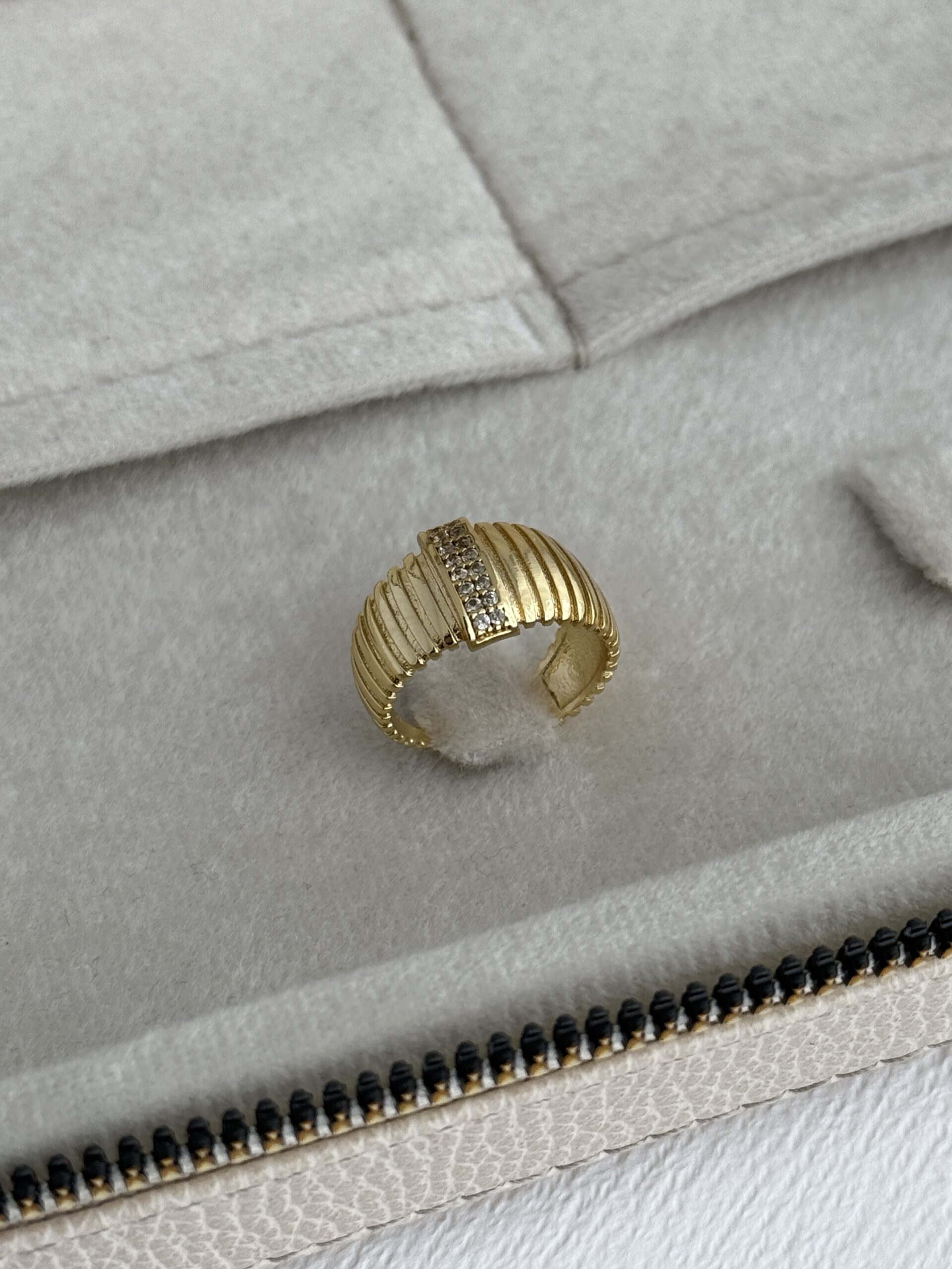 Özel Seri Tek Sıra Zirkon Taş Tasarım Ayarlanabilir Gold Yüzük