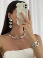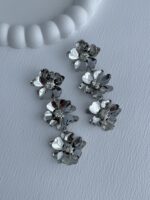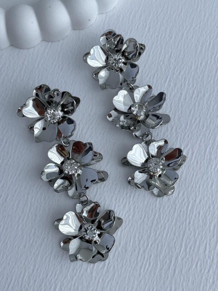 Özel Seri Tek Taş Detaylı Gümüş Üçlü Çiçek Küpe 7cm