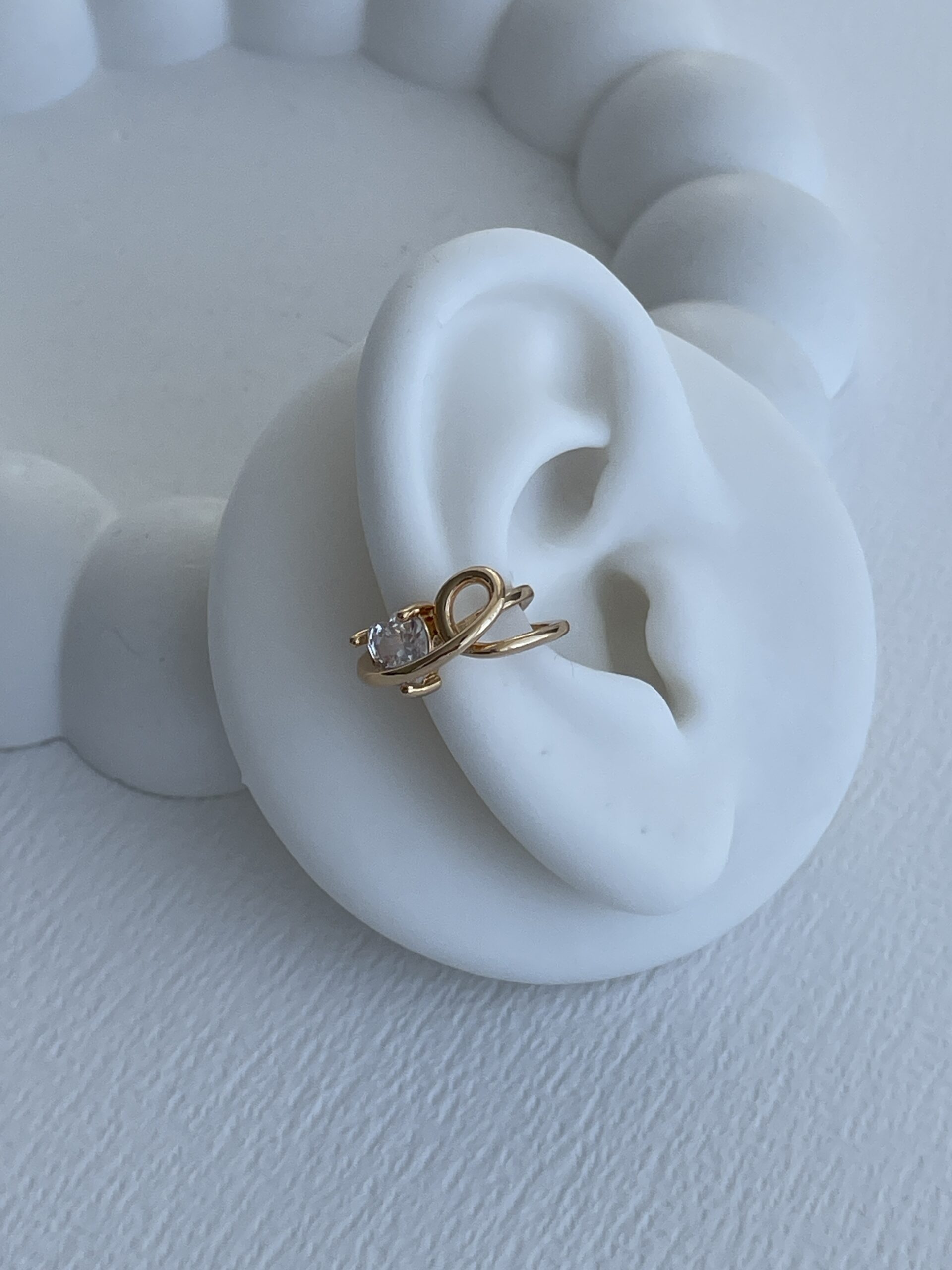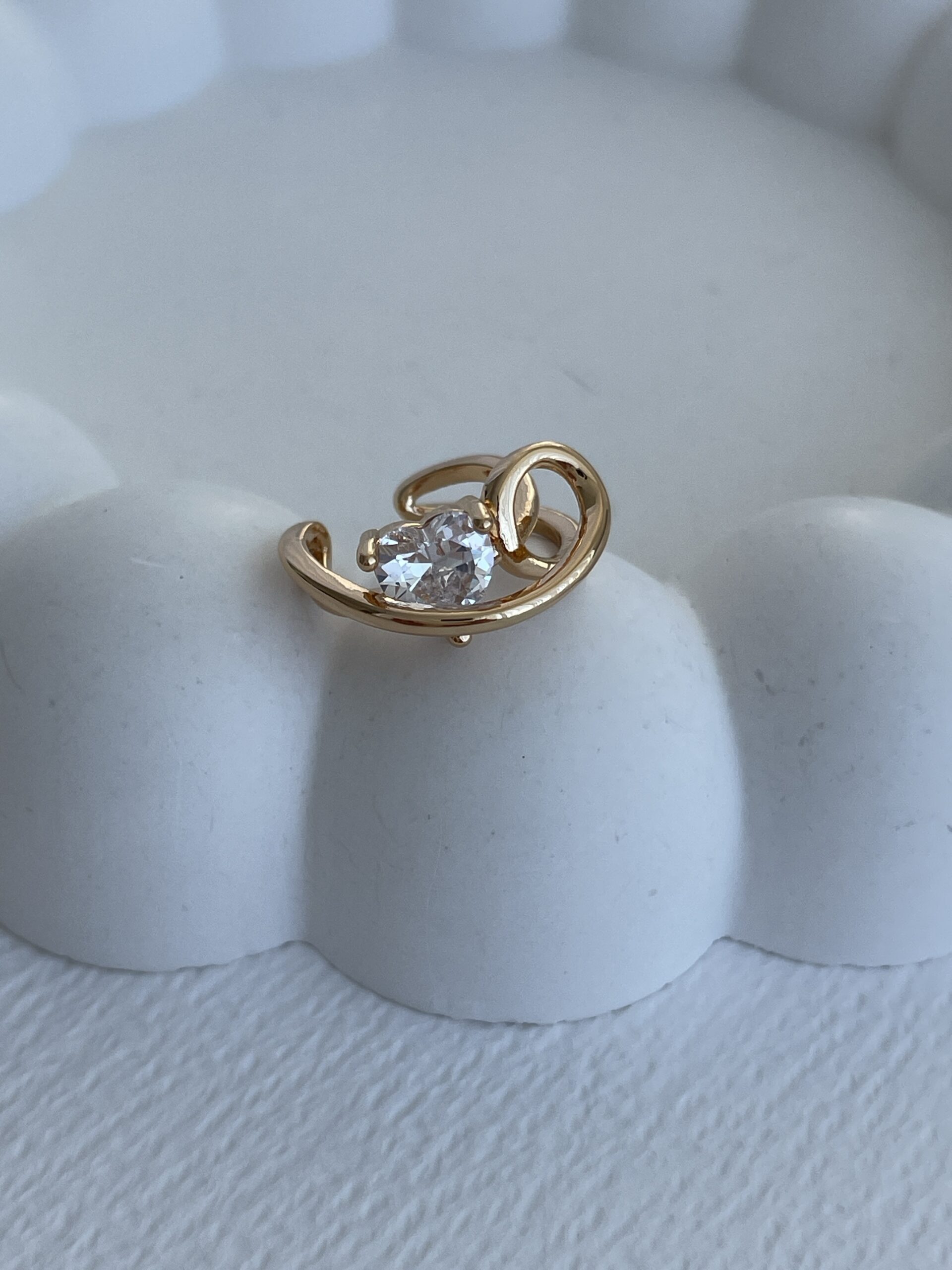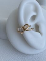 Özel Seri Tek Taş Kalp Tasarım Gold Earcuff
