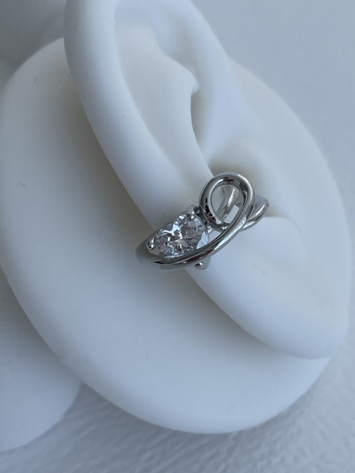 Özel Seri Tek Taş Kalp Tasarım Gümüş Earcuff