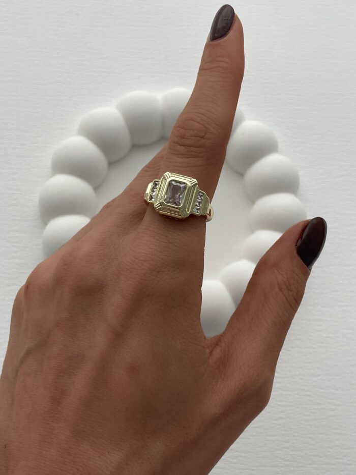 Özel Seri Tektaş Model Baget Taşlı Ayarlanabilir Gold Yüzük