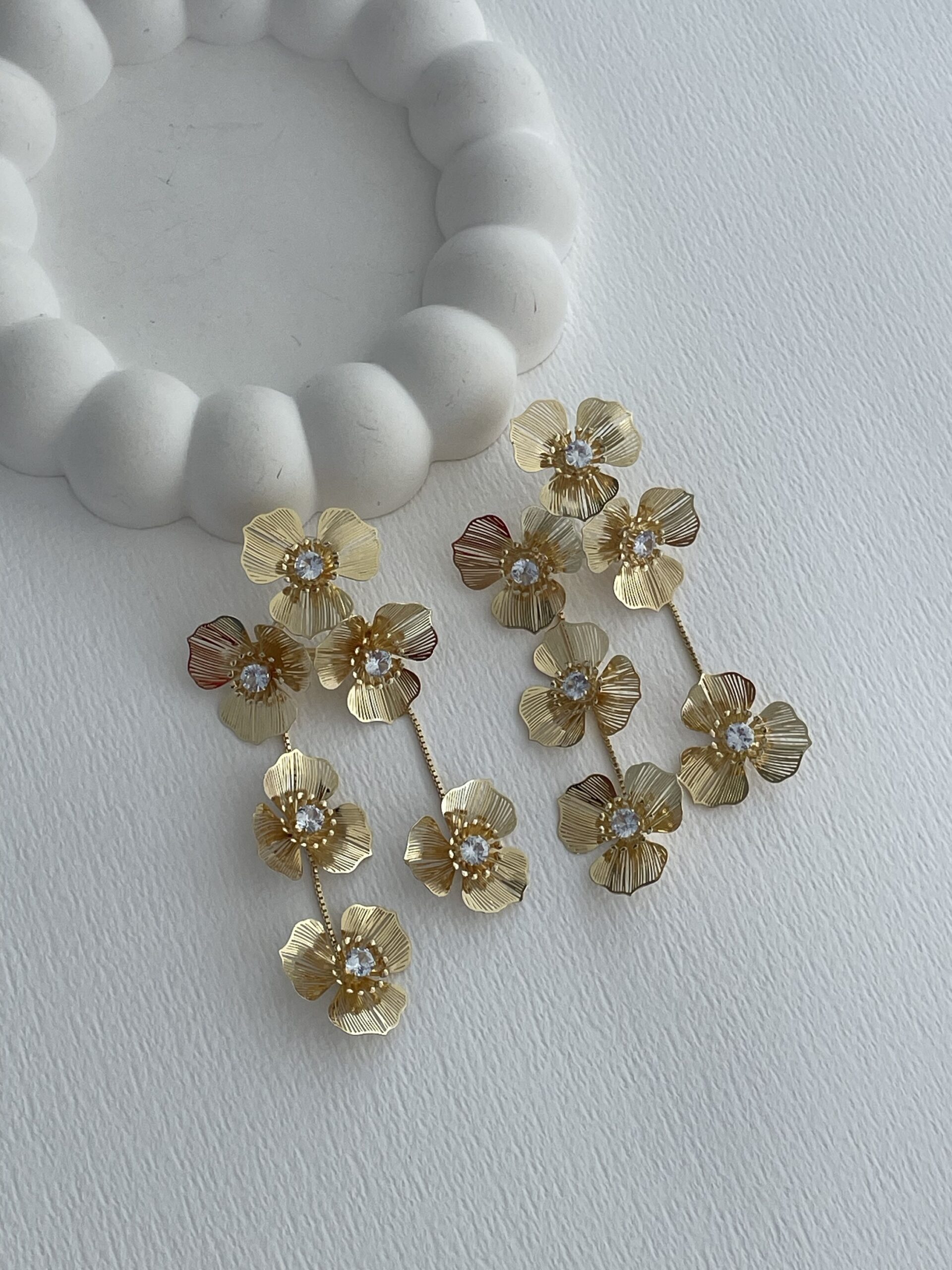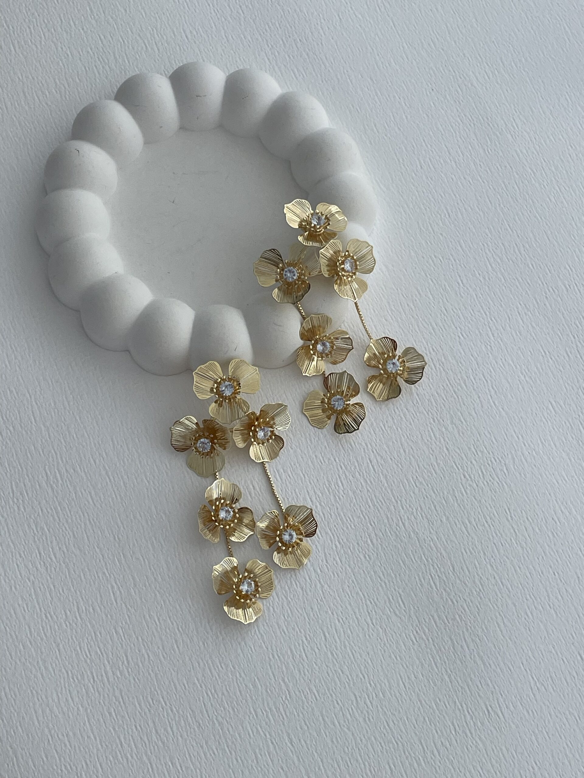 Özel Seri Tel Çiçek Tasarım Maksi Boy Gold Küpe