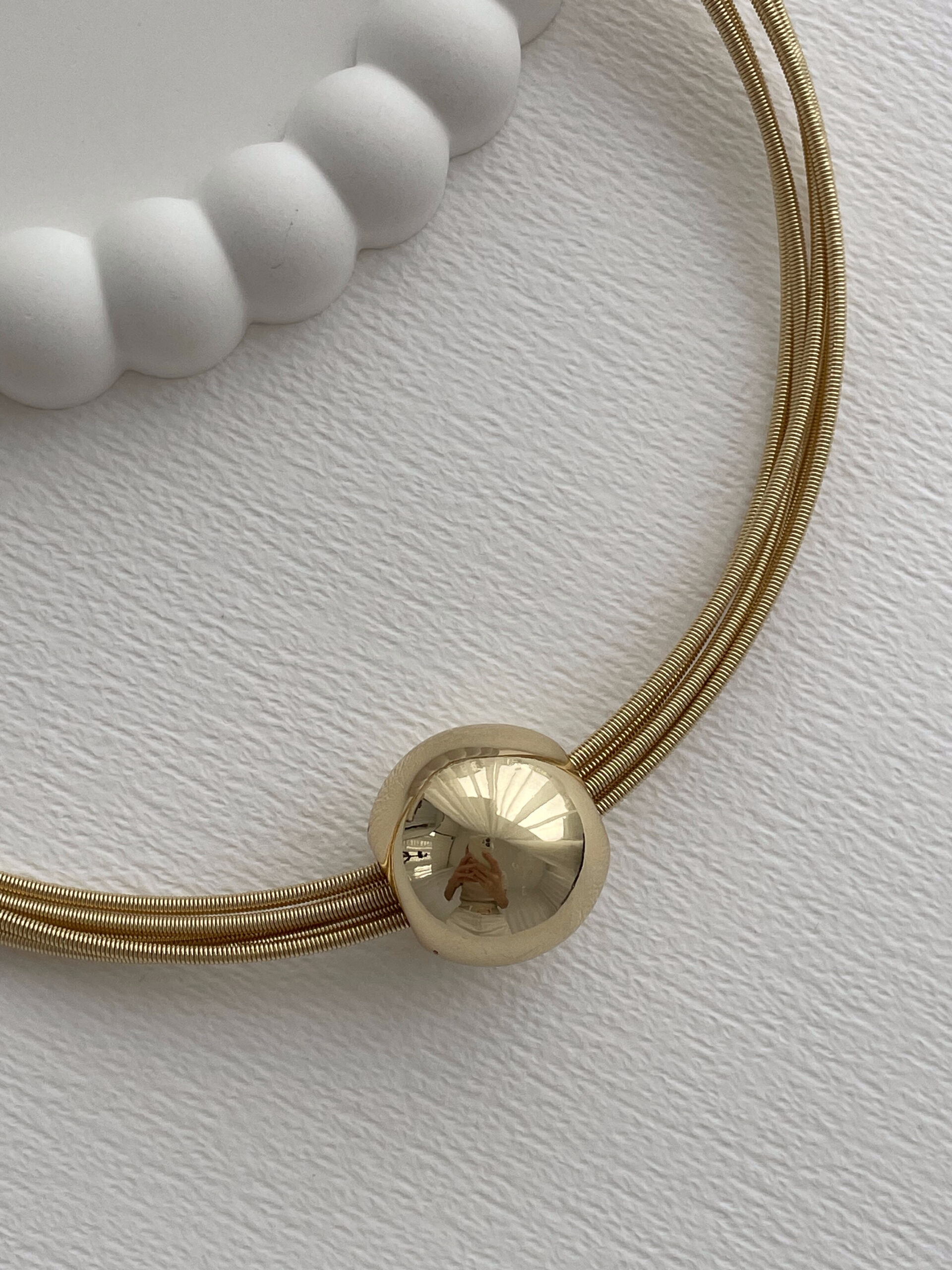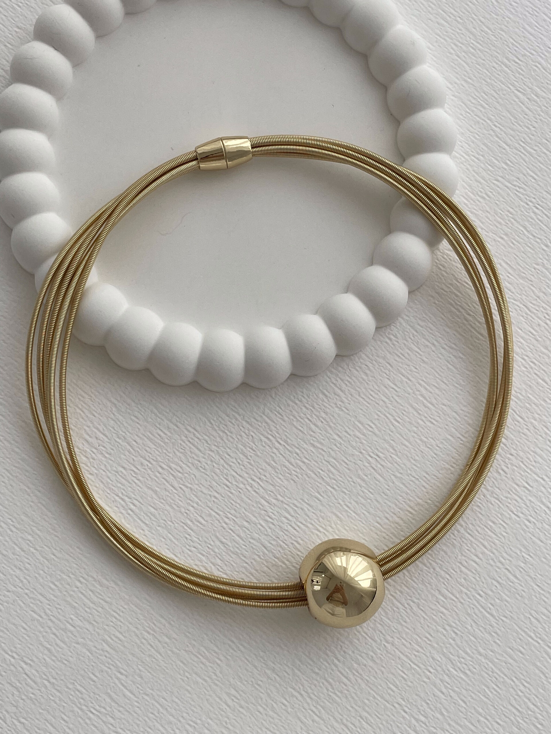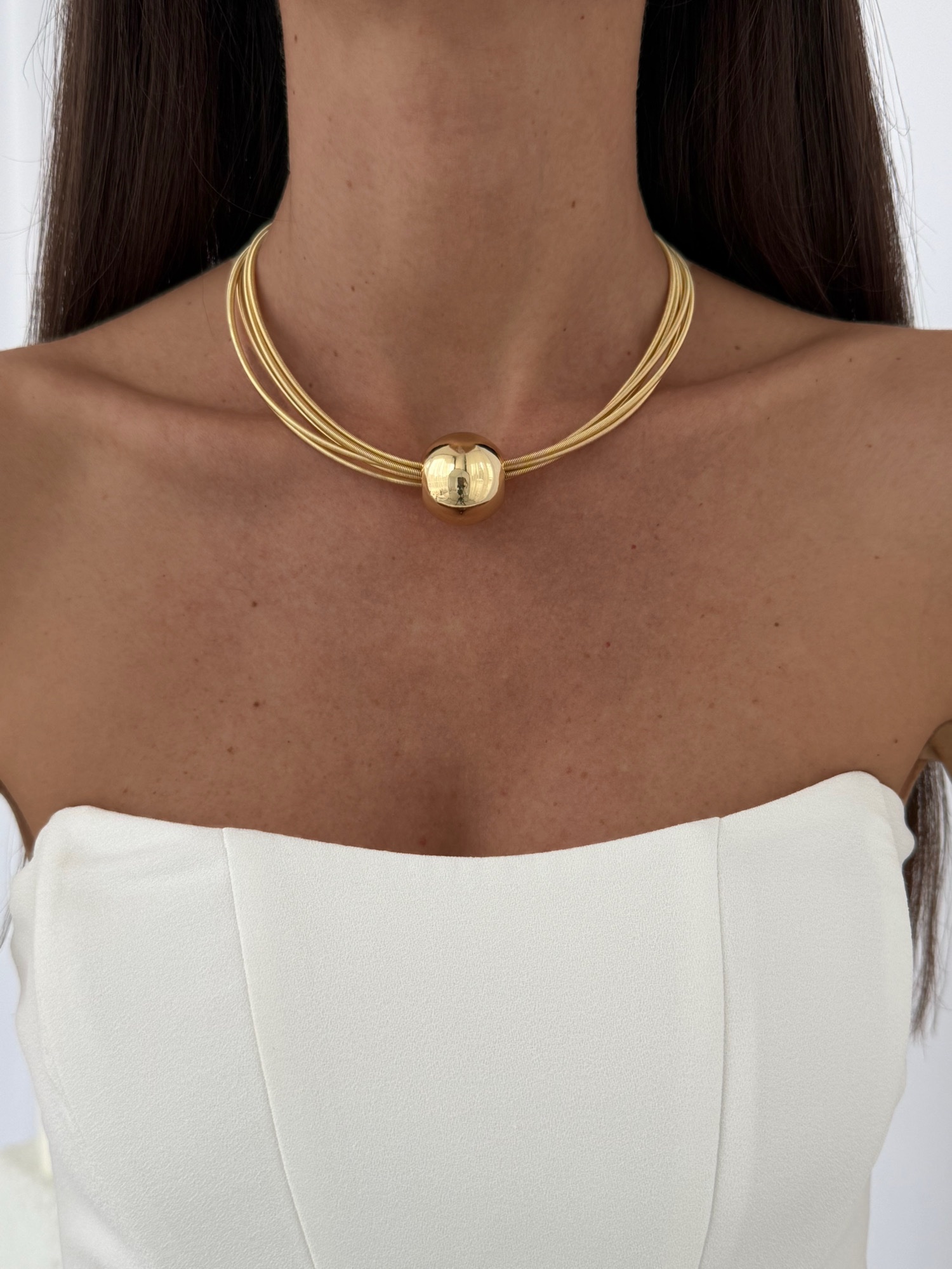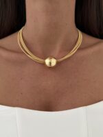 Özel Seri Tel Tasarım Top Detay Gold Choker Kolye