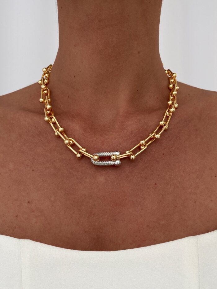 Özel Seri Marka Zirkon Taşlı Zincir Gold Kolye