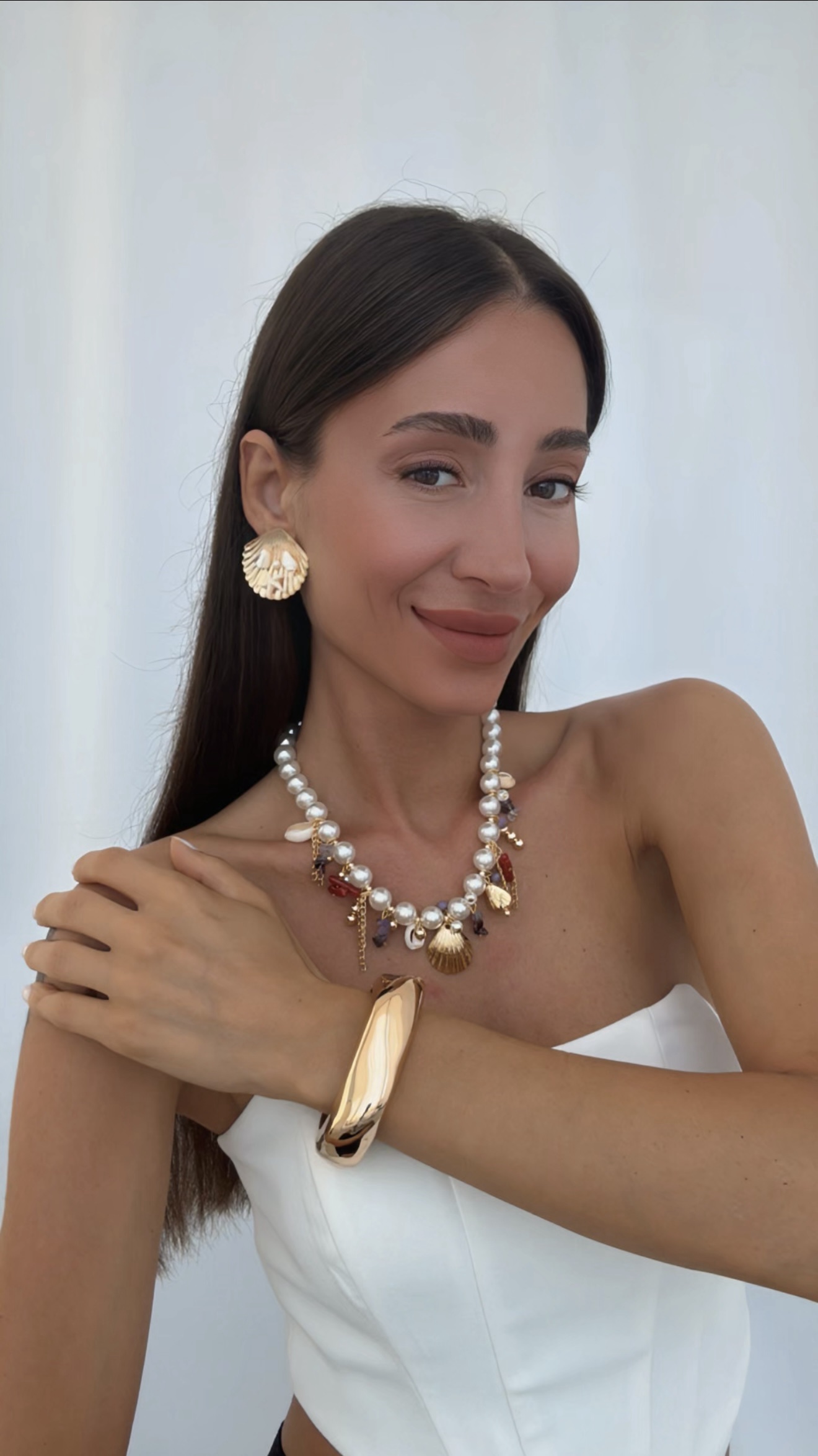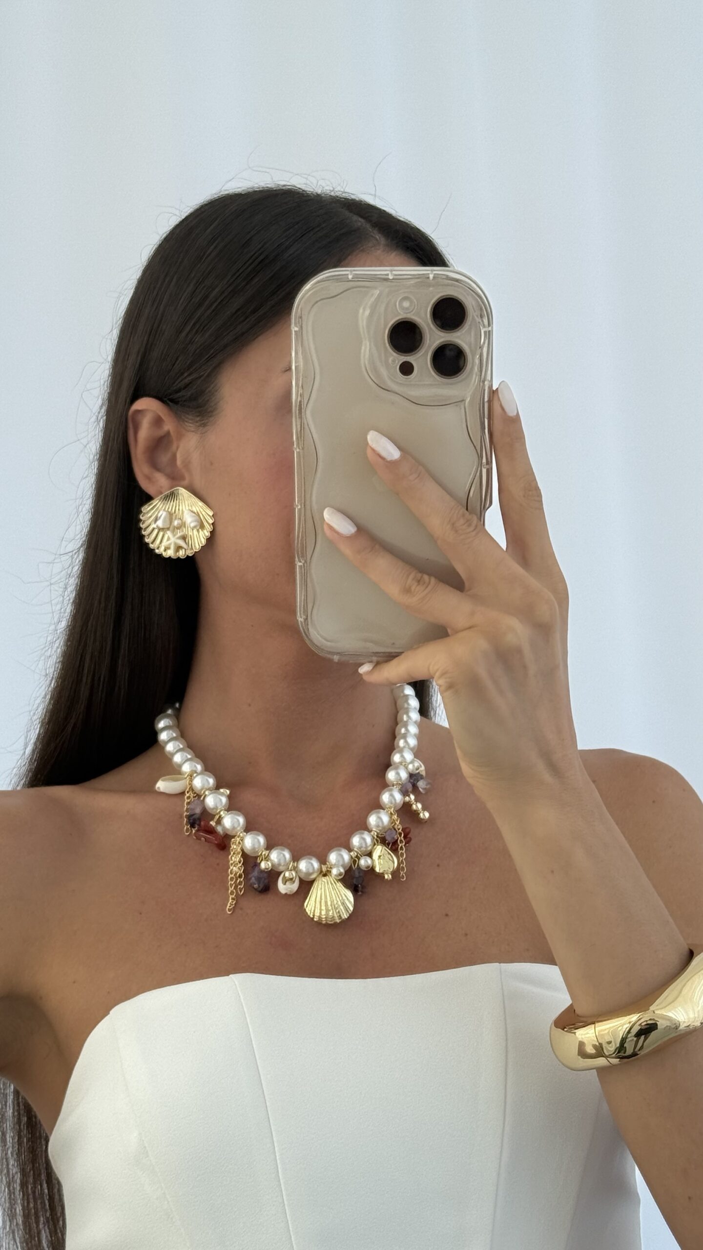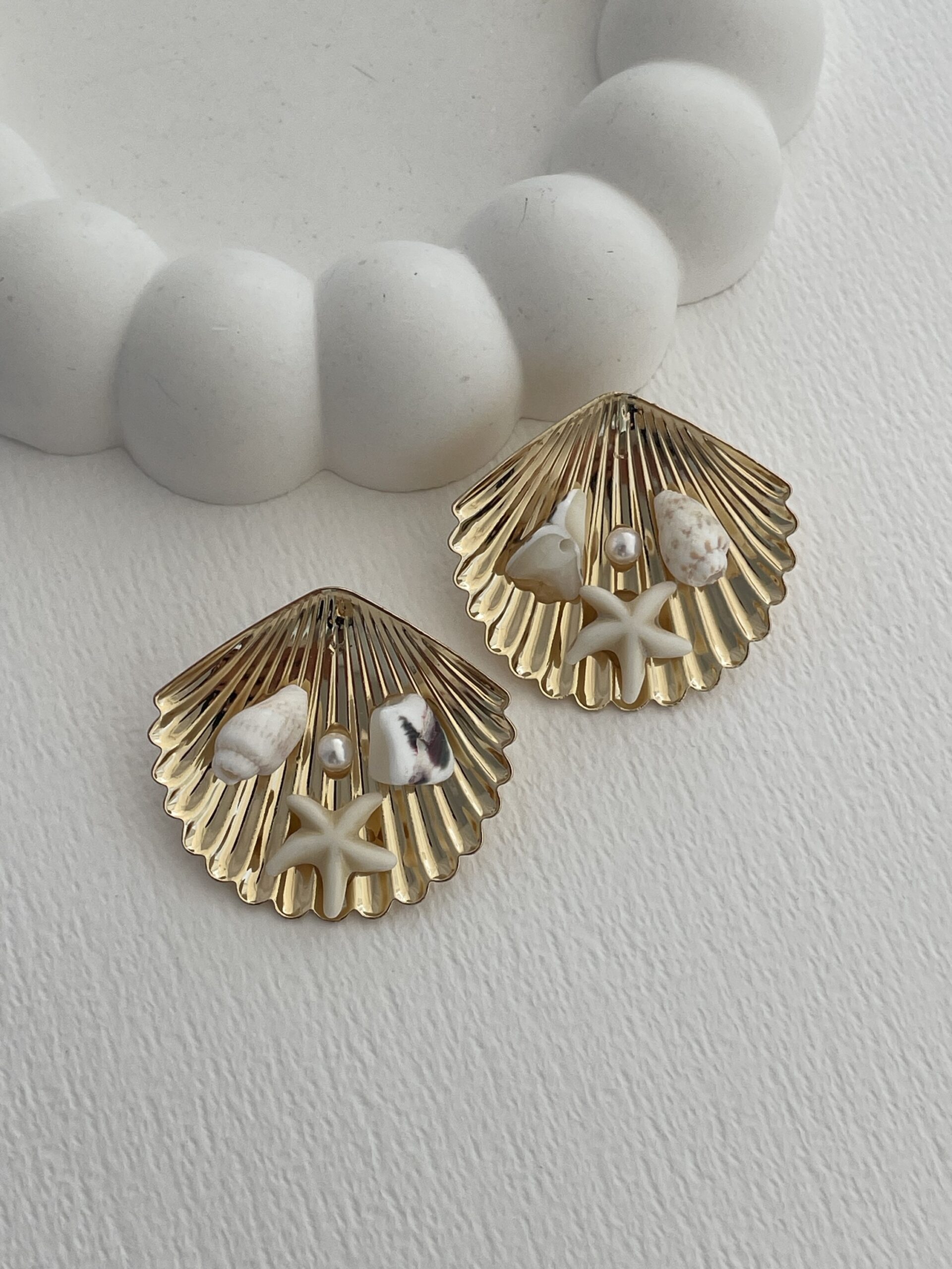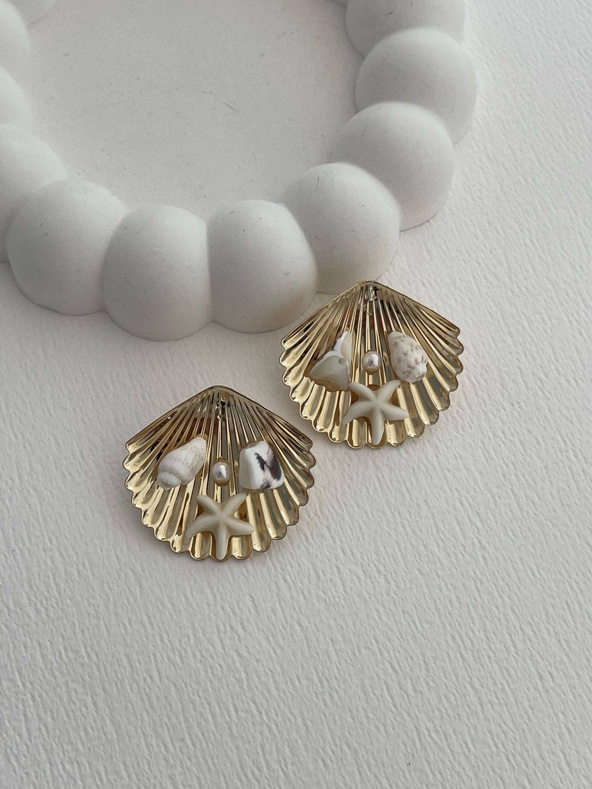 Özel Seri Tırtık Desen Deniz Kabuğu Gold Küpe