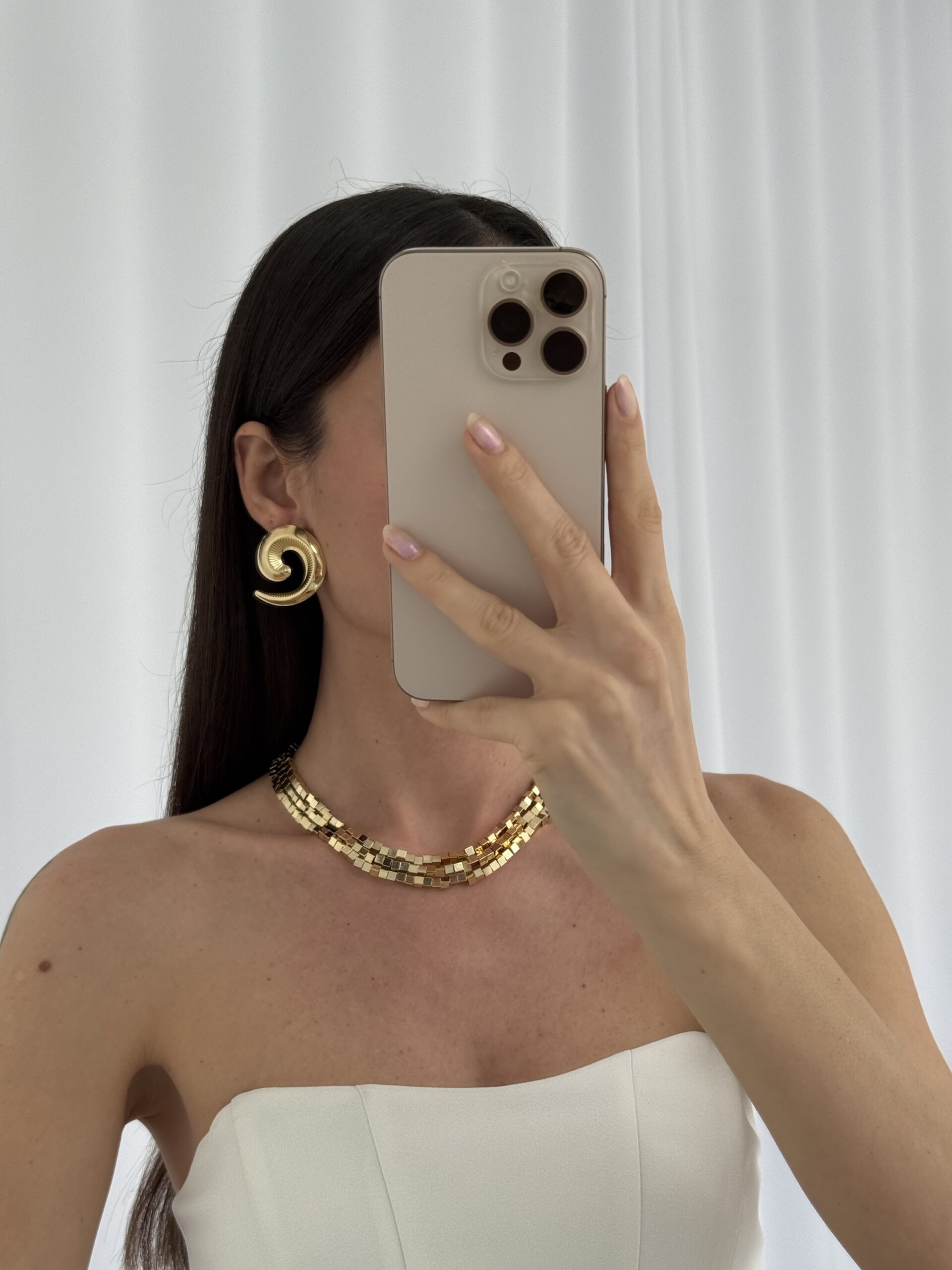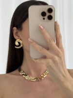 Özel Seri Tırtık Desen Geometrik Tasarım Gold Küpe
