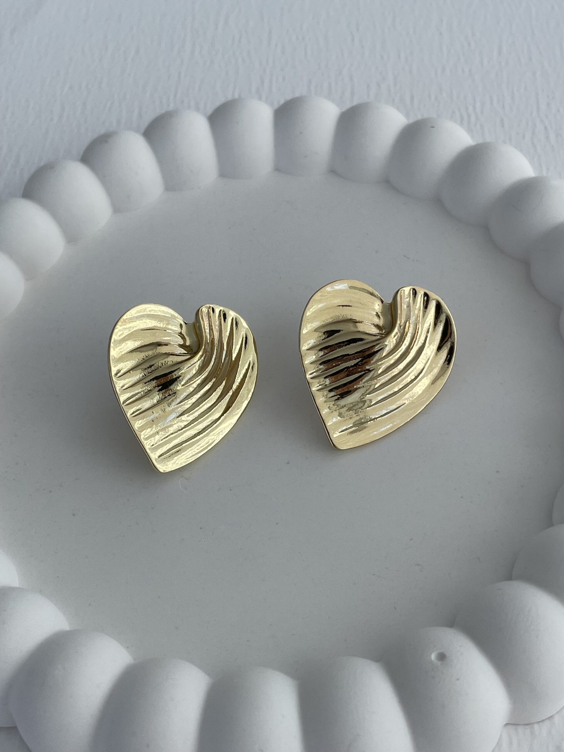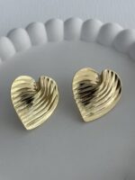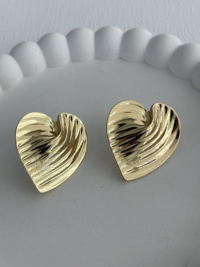 Özel Seri Tırtık Desen Gold Kalp Küpe