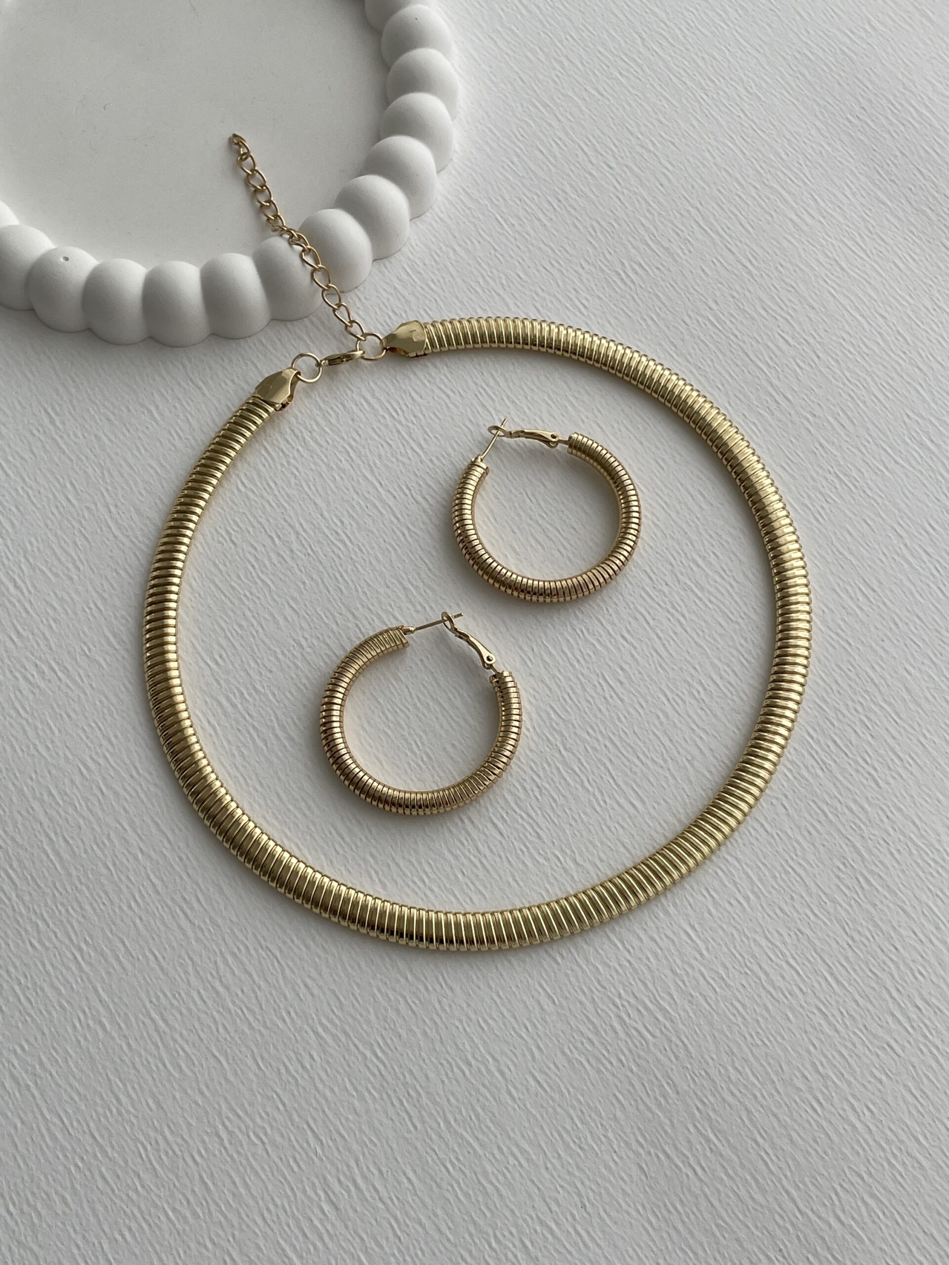 Özel Seri Tırtık Desen Gold Kolye Küpe Seti