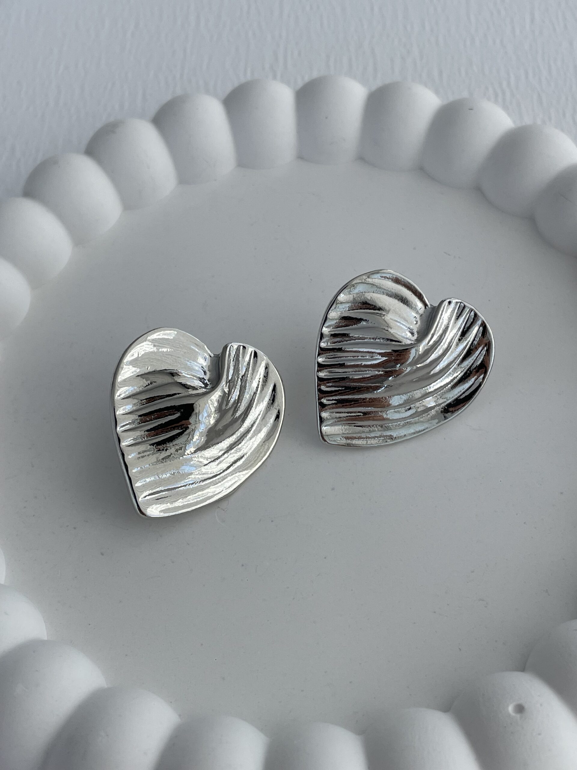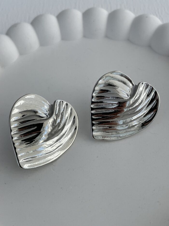 Özel Seri Tırtık Desen Gümüş Kalp Küpe