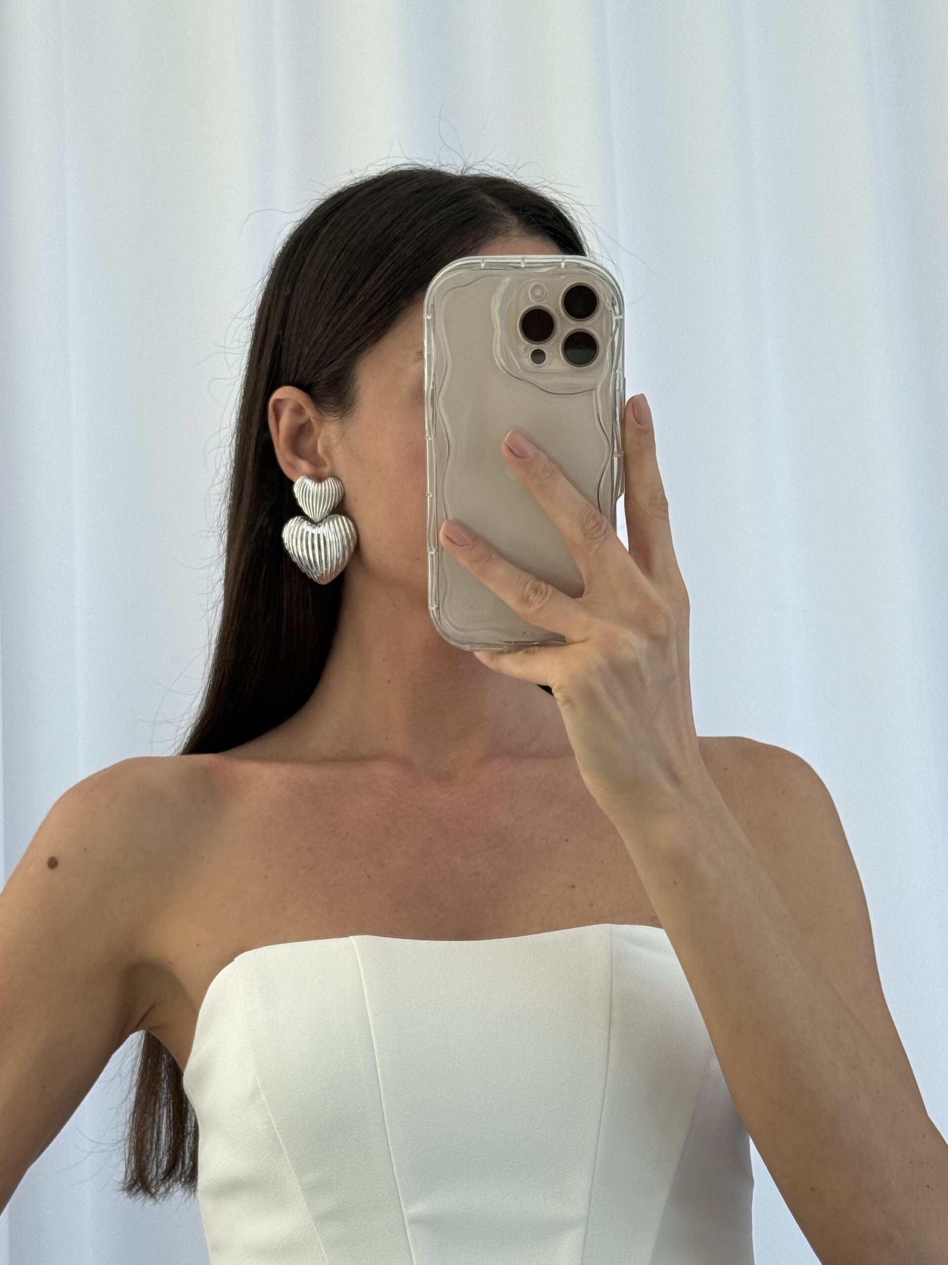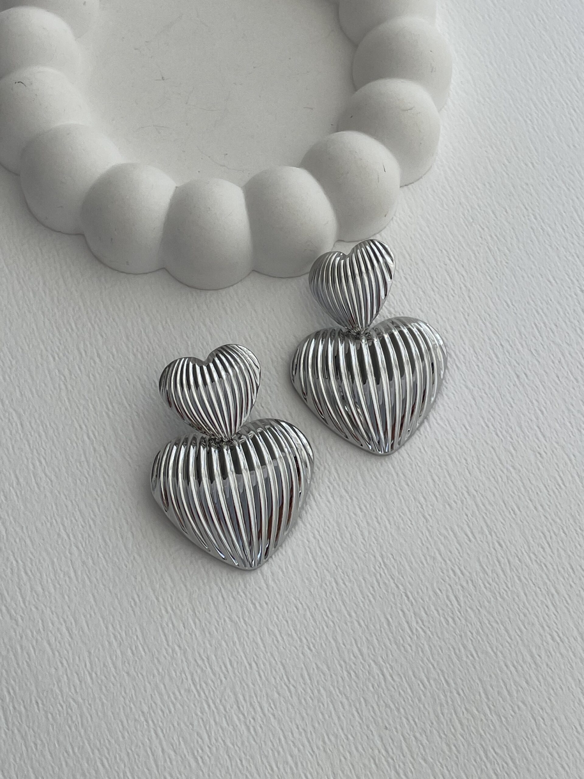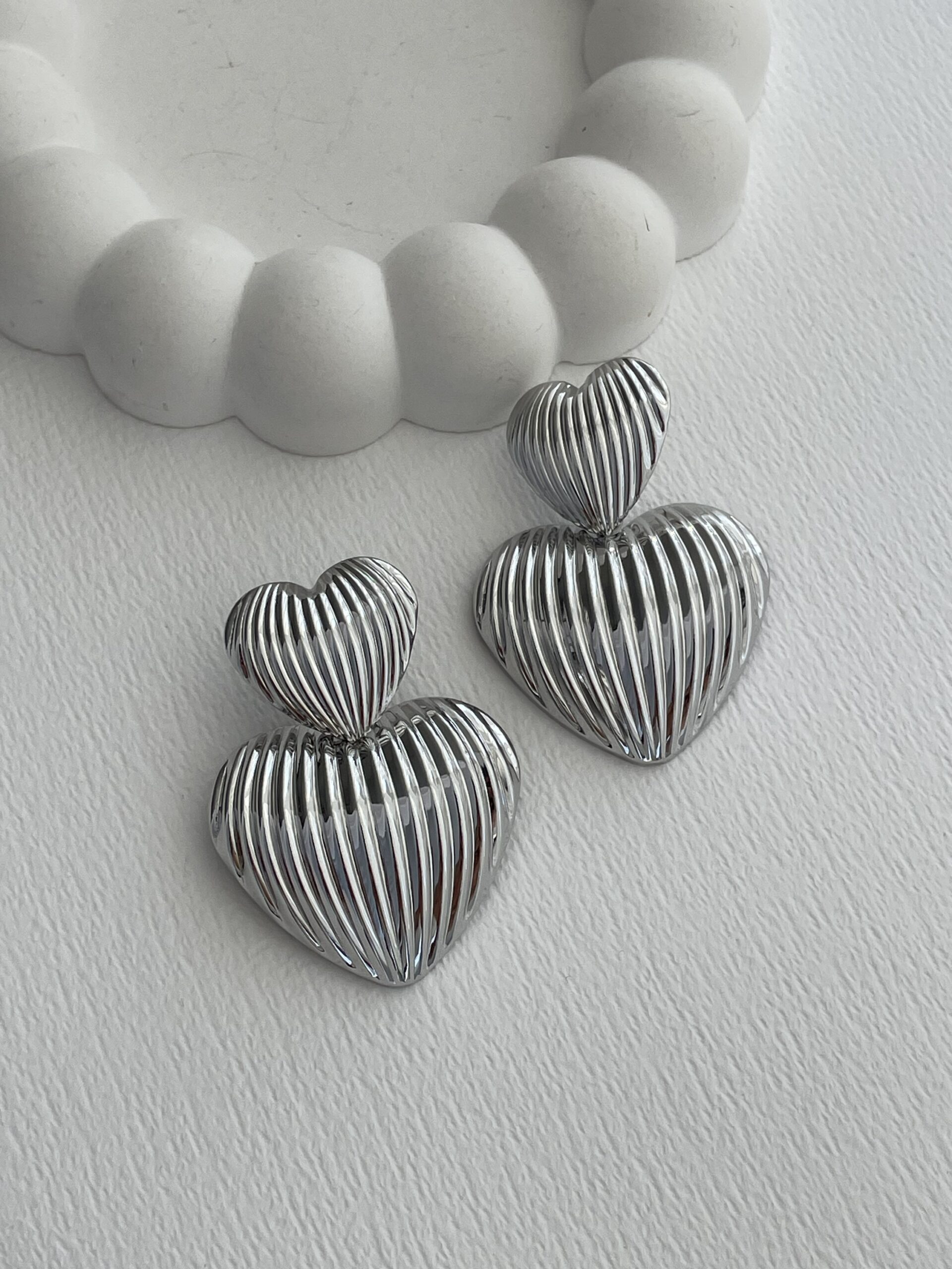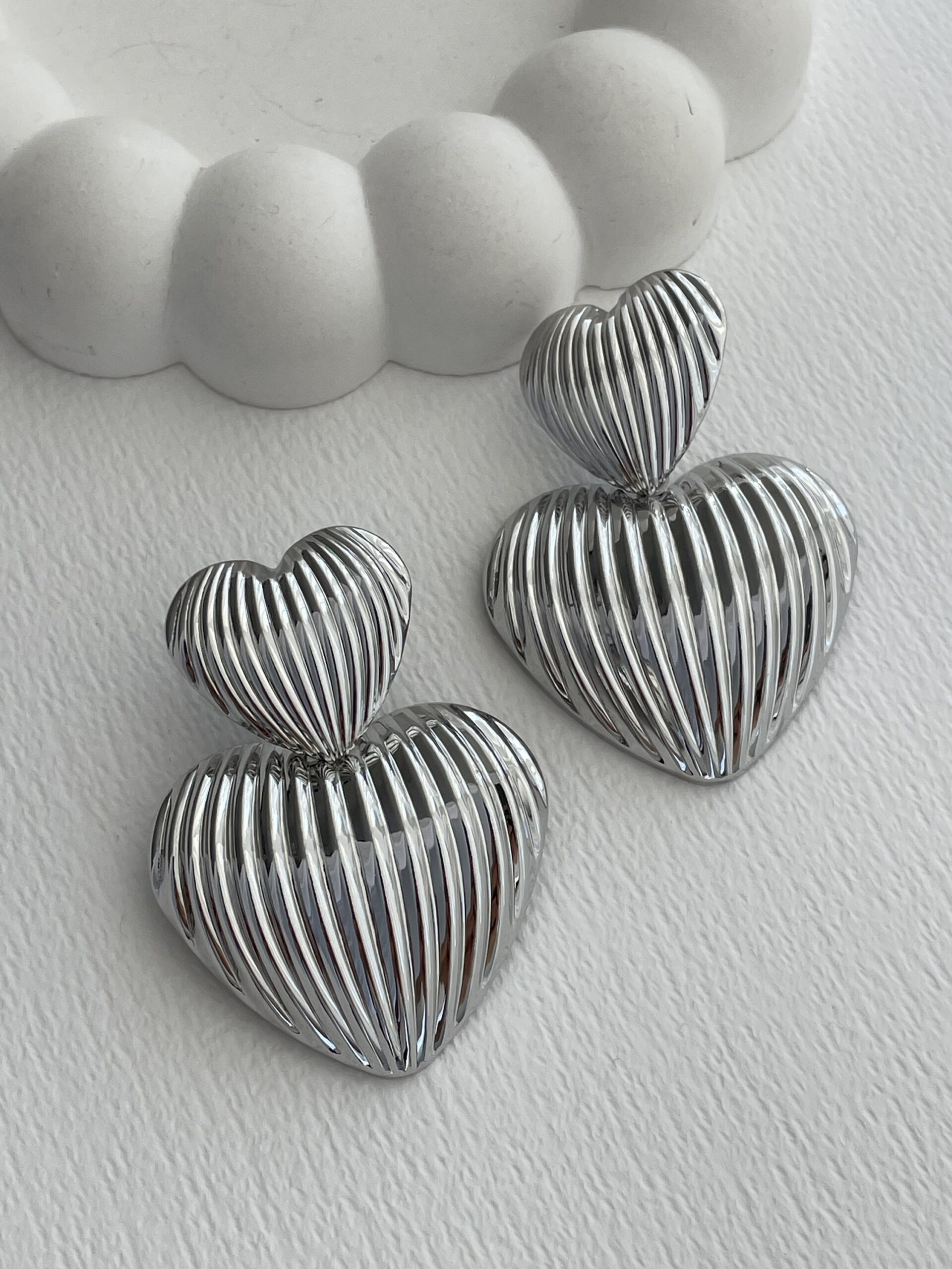 Özel Seri Tırtık Desen İkili Kalp Tasarım Gümüş Küpe