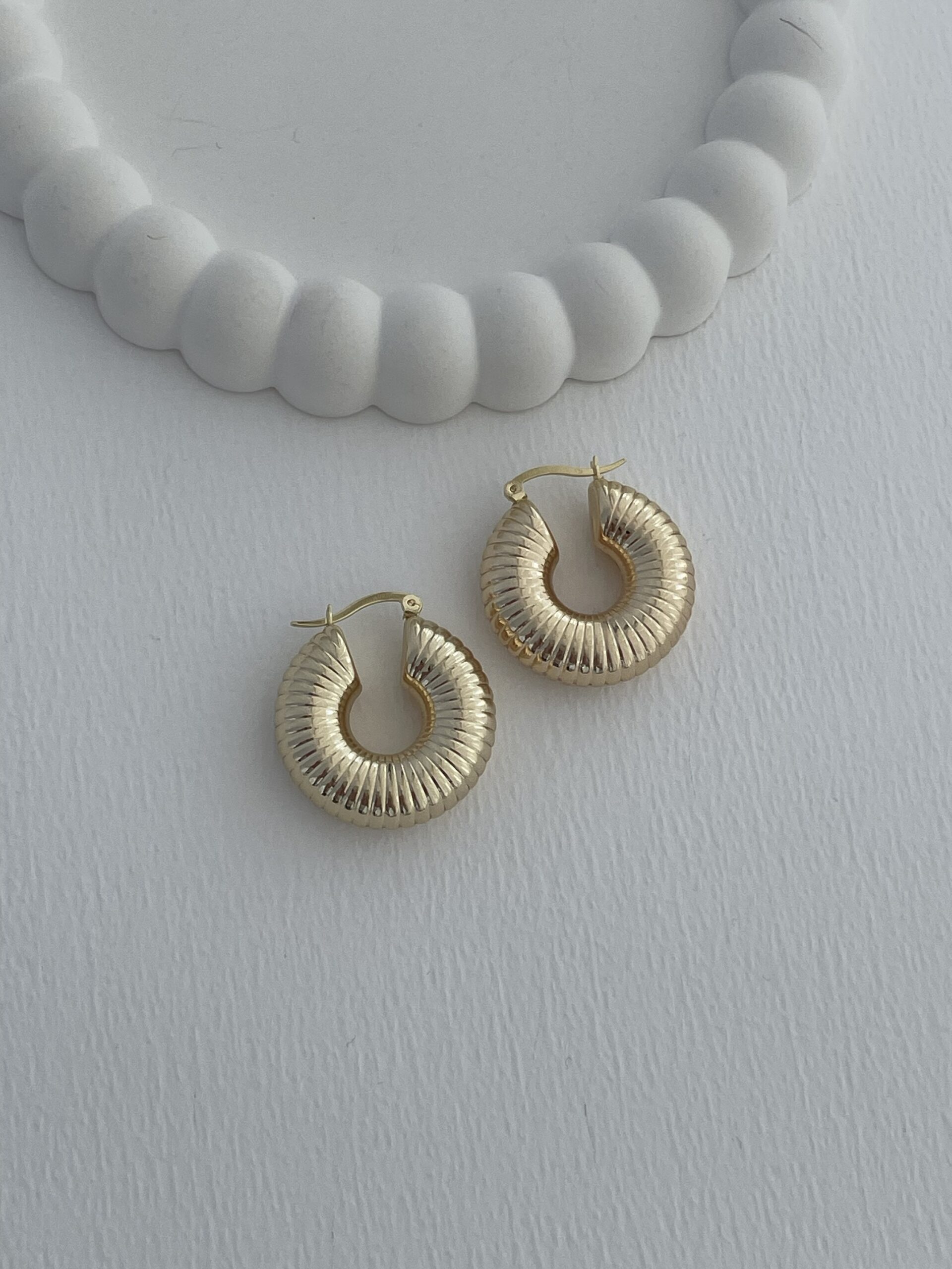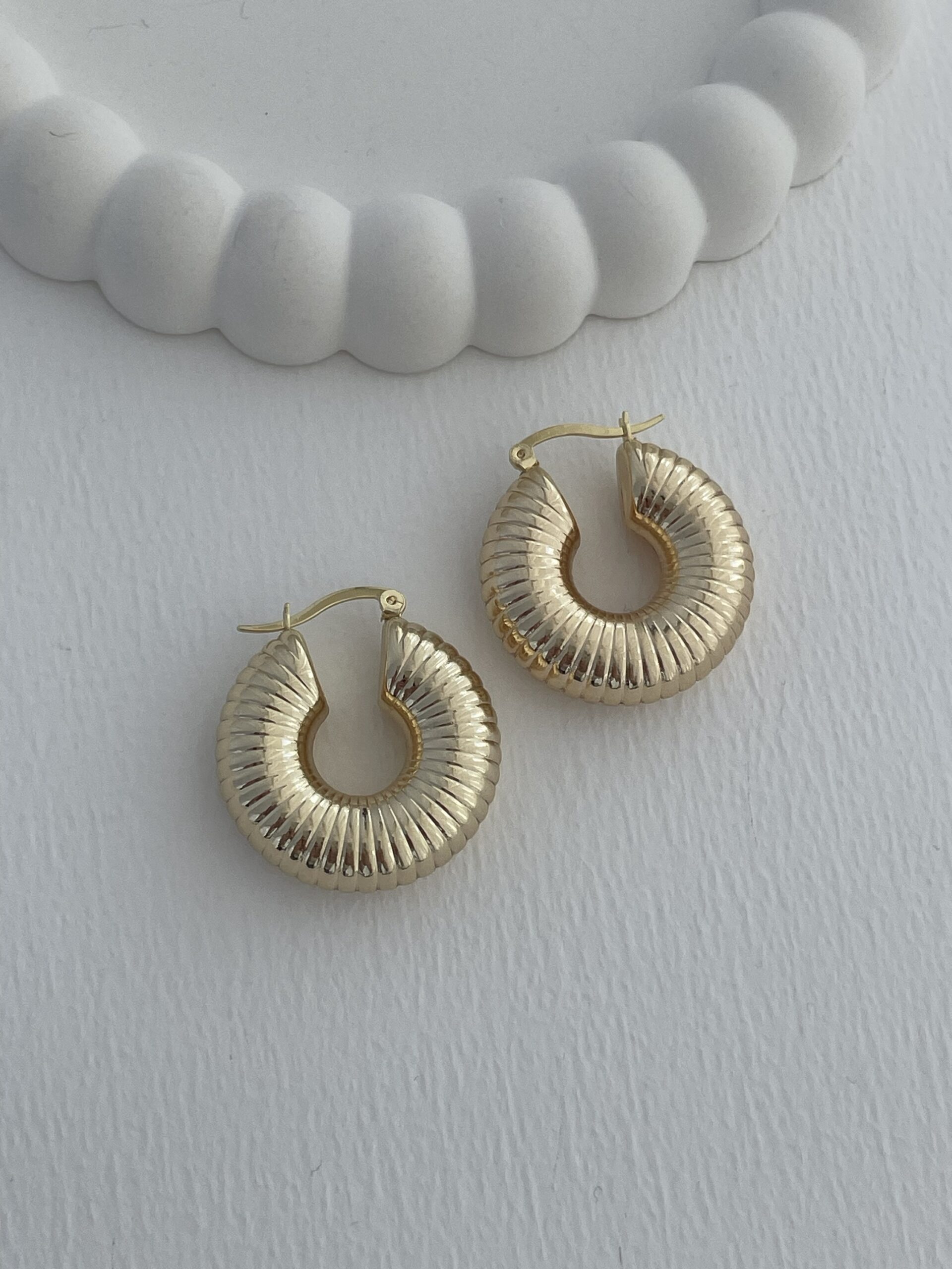 Özel Seri Tırtık Desen Kalın Gold Halka Küpe
