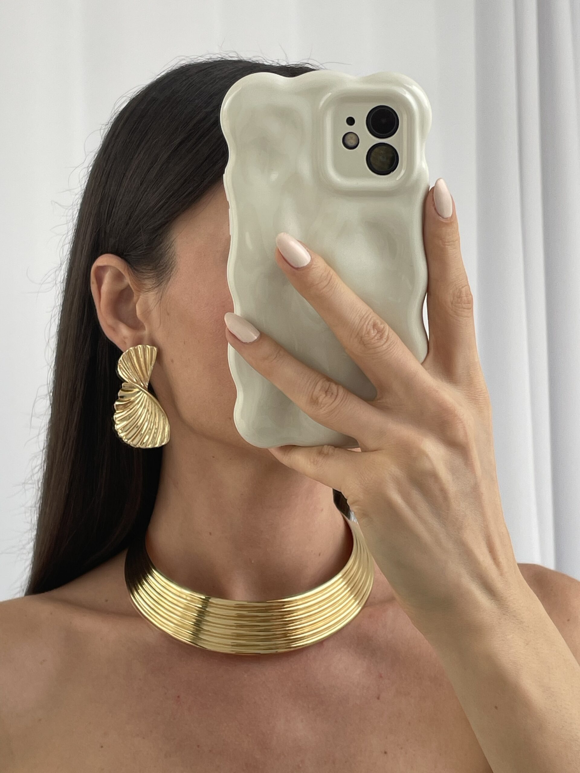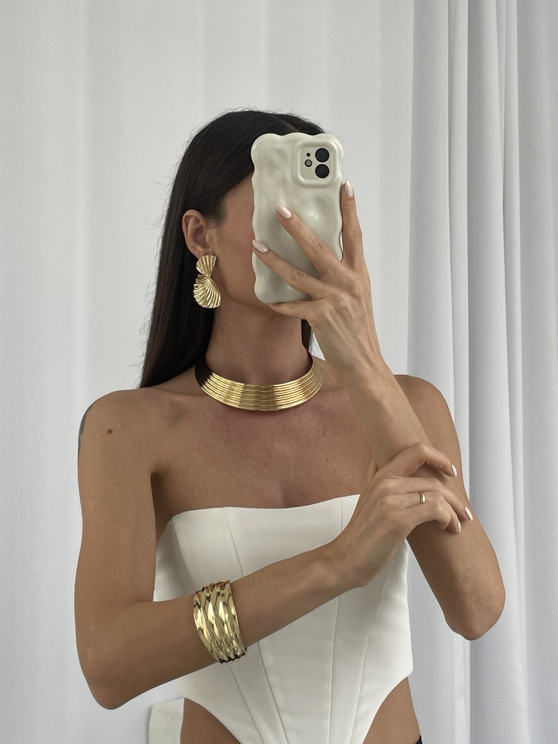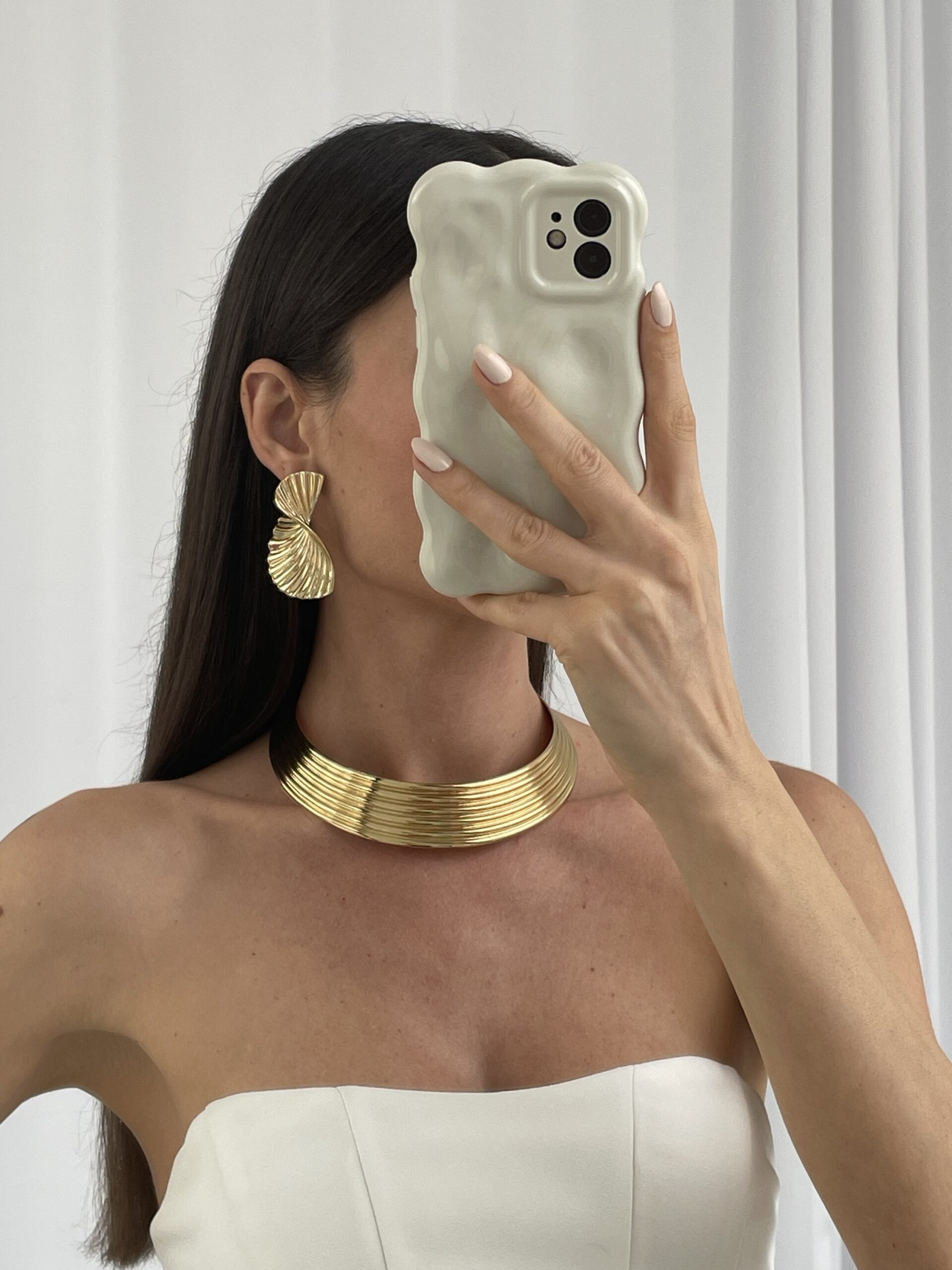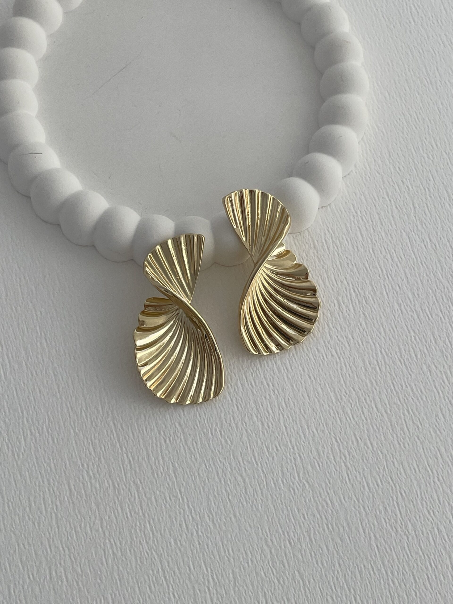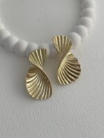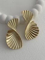 Özel Seri Tırtık Desen Kıvrım Tasarım Gold Küpe