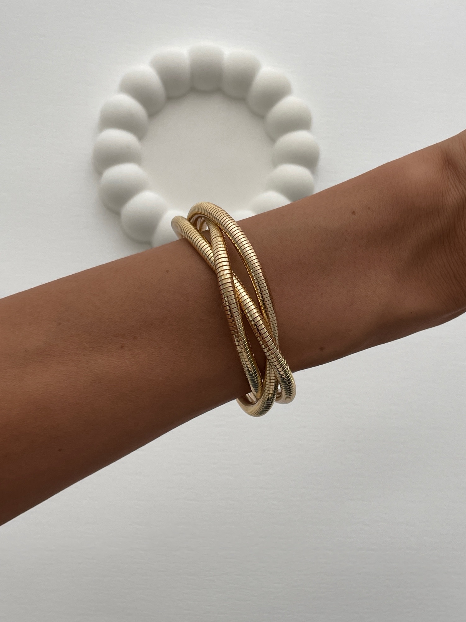 Özel Seri Tırtık Model Üçlü Sarmal Tasarım Gold Bileklik