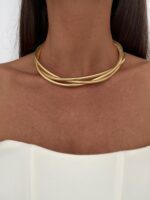 Özel Seri Tırtık Model Üçlü Sarmal Tasarım Gold Choker Kolye