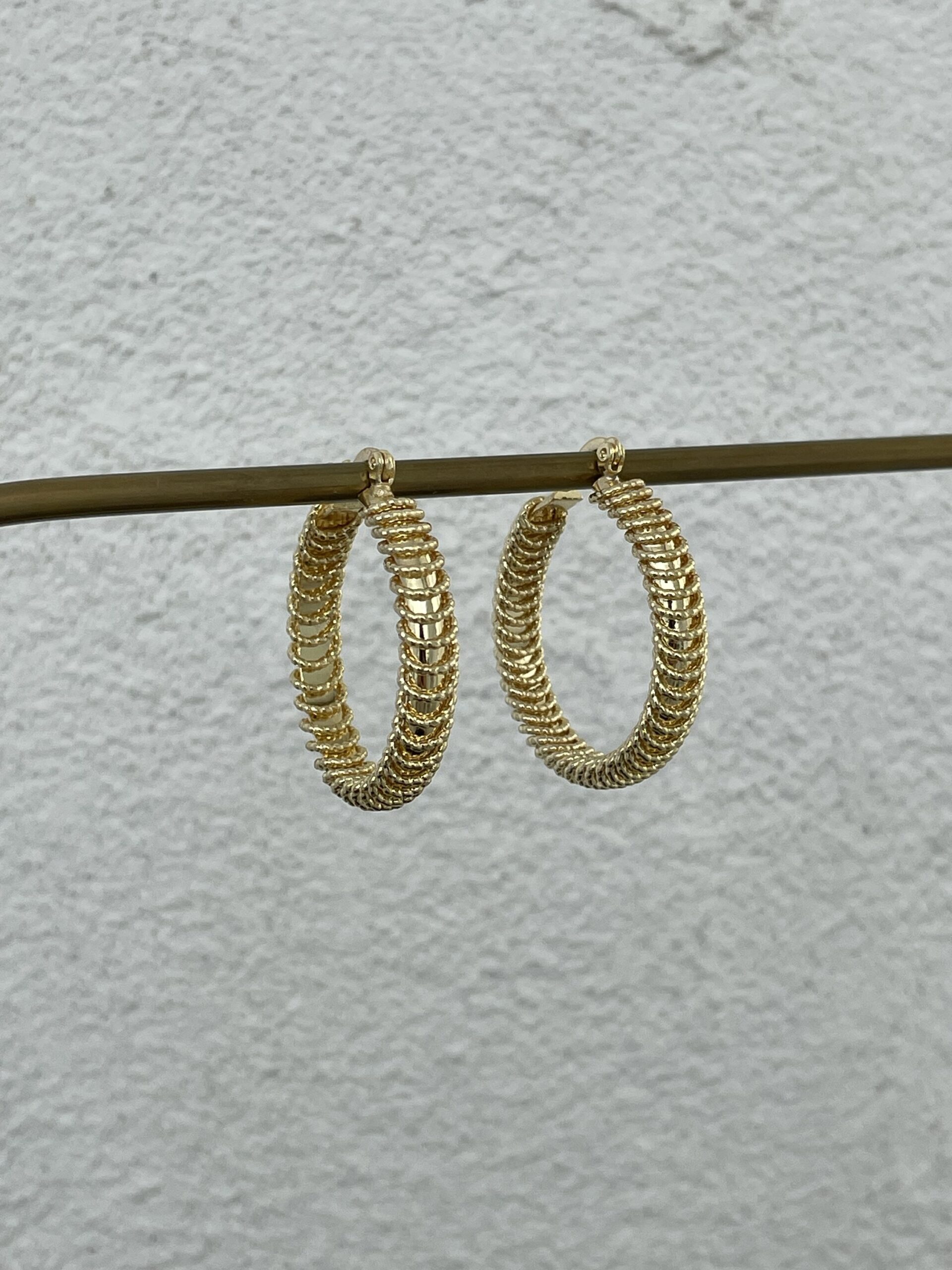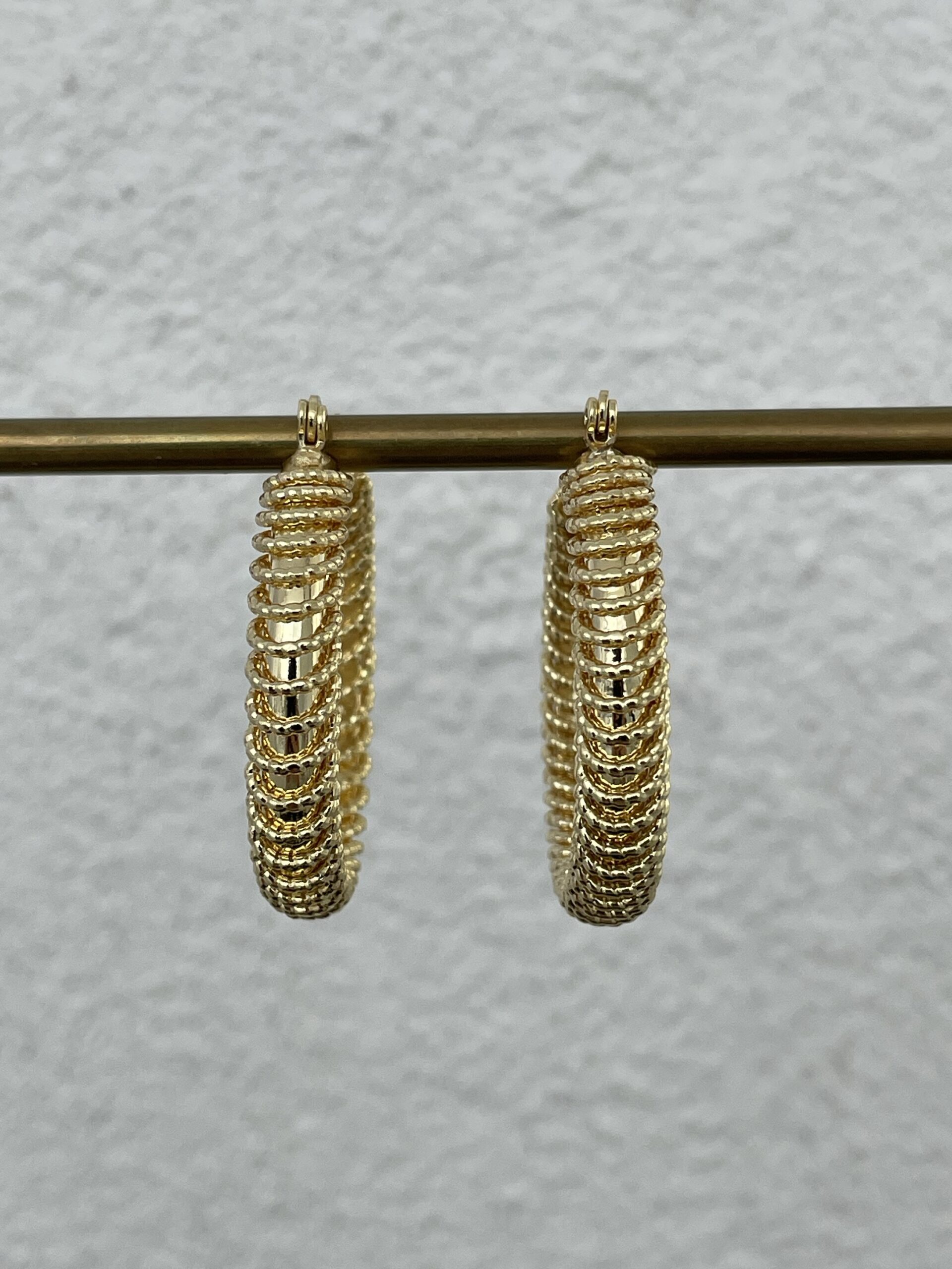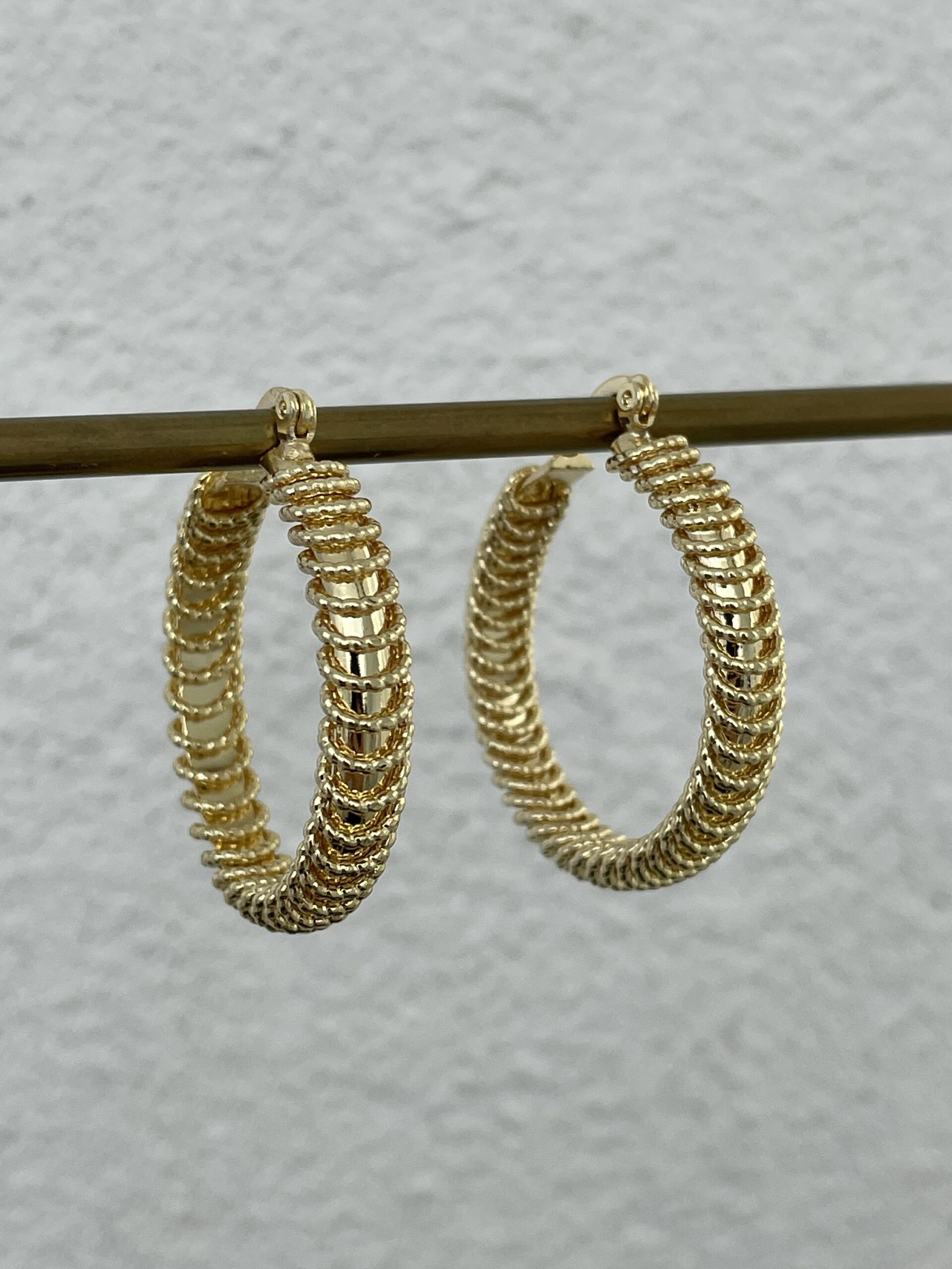 Özel Seri Tırtık Tel Çevrili Gold Halka Küpe