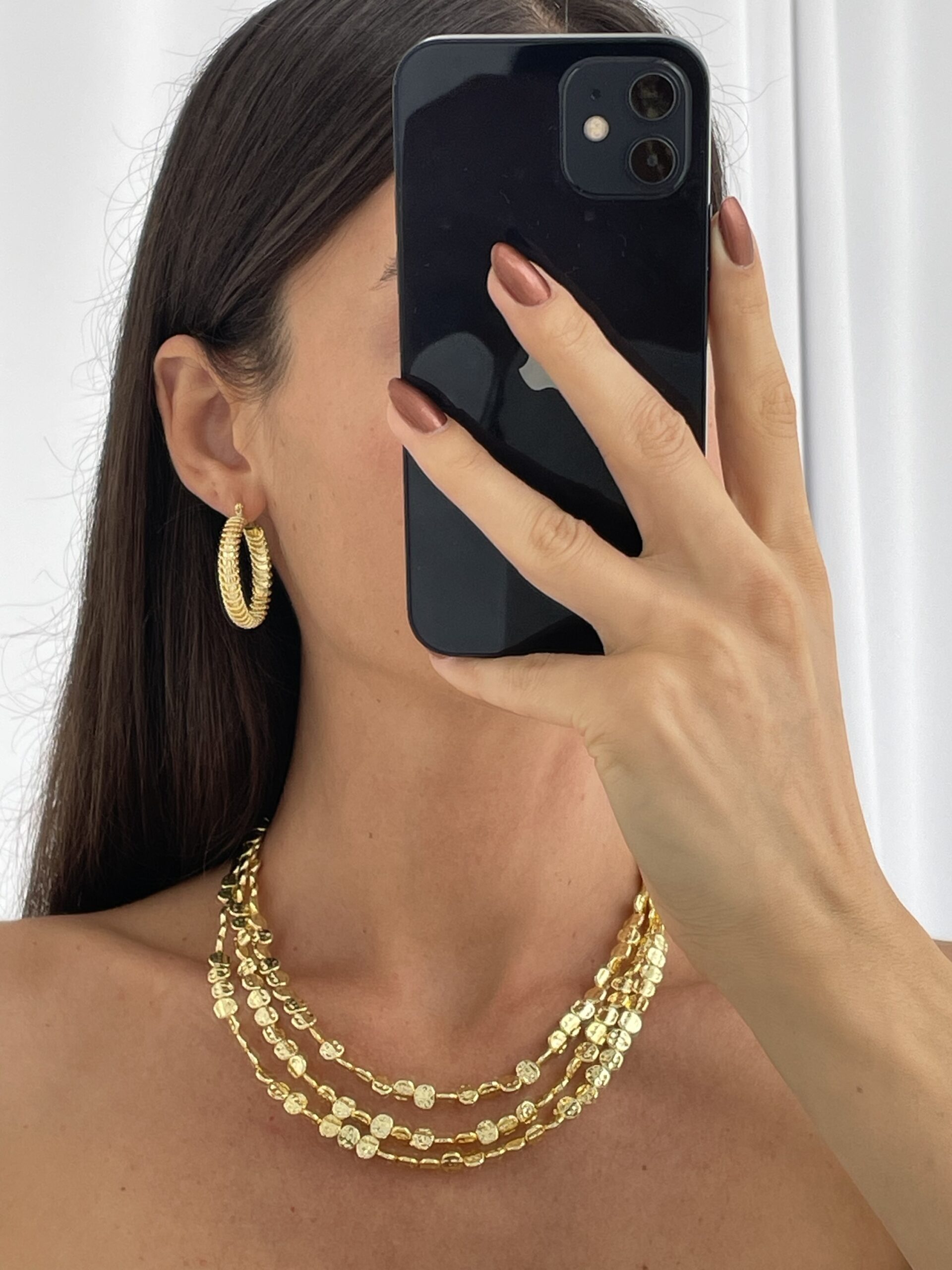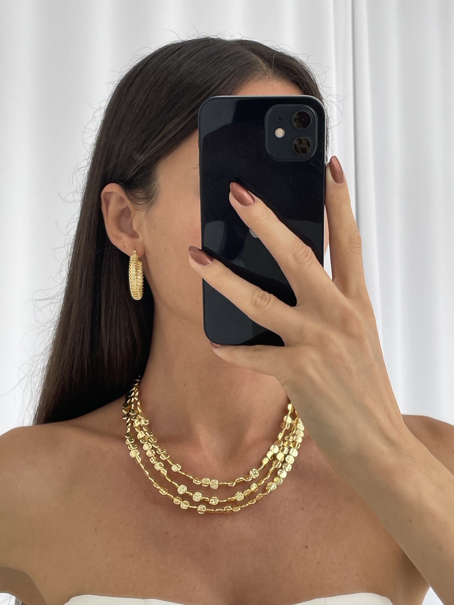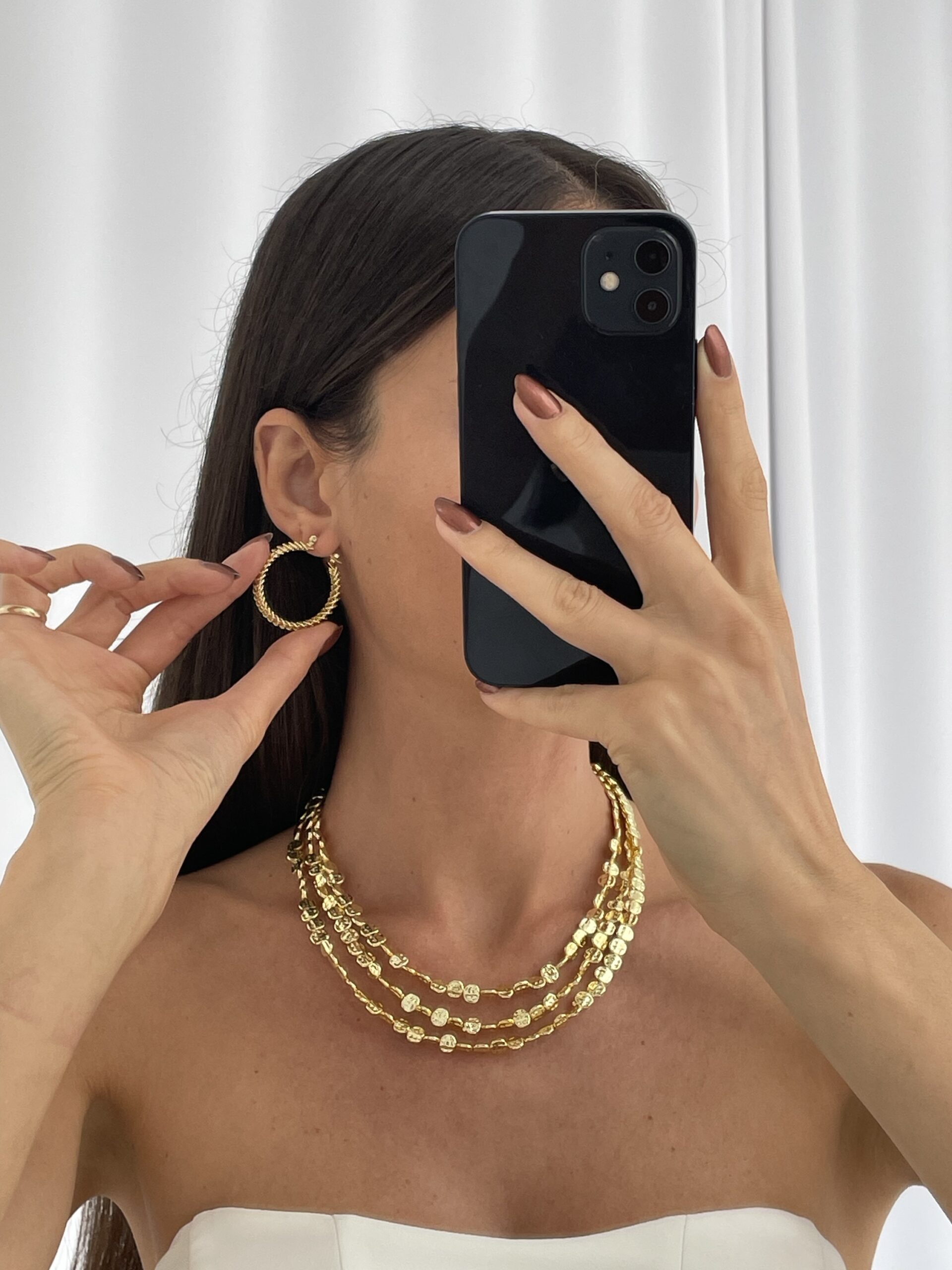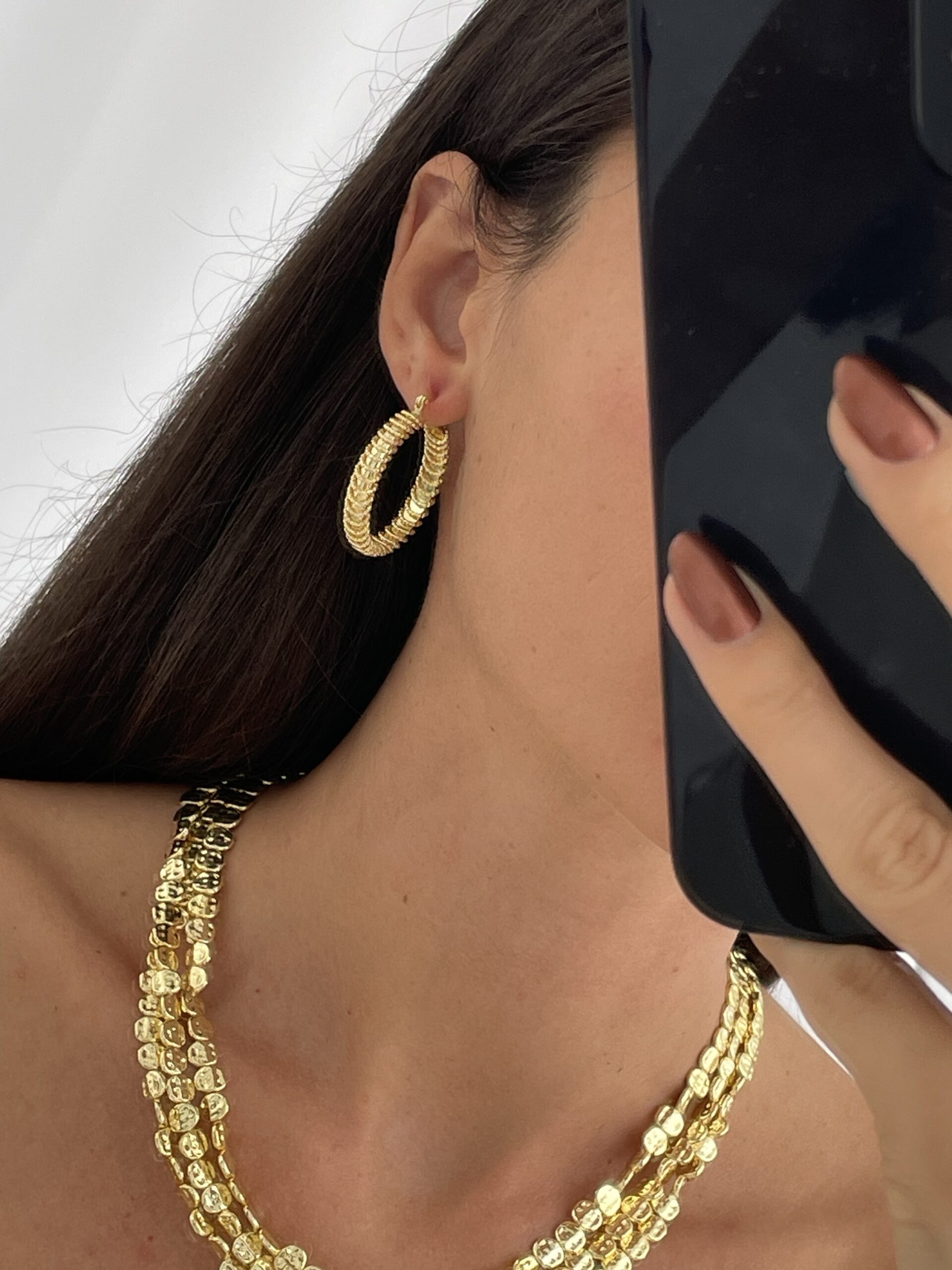Özel Seri Tırtık Tel Çevrili Gold Halka Küpe
