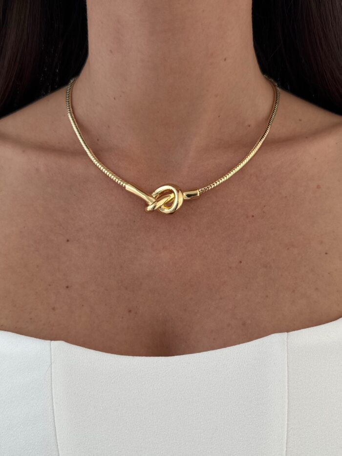 Özel Seri Tırtık Zincir Düğüm Tasarım Gold Kolye