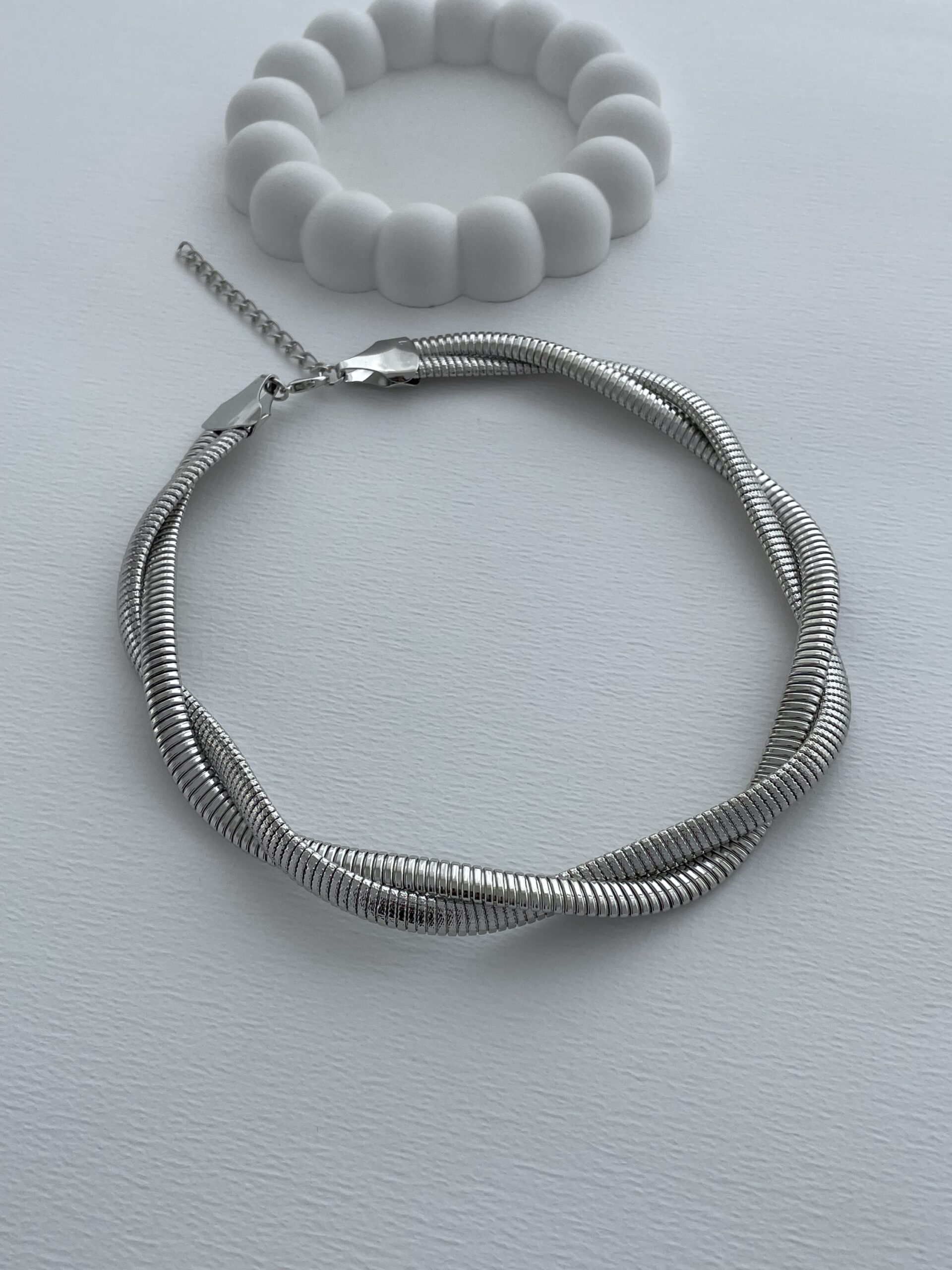 Özel Seri Tırtıklı Örgü Model Gümüş Kolye