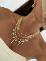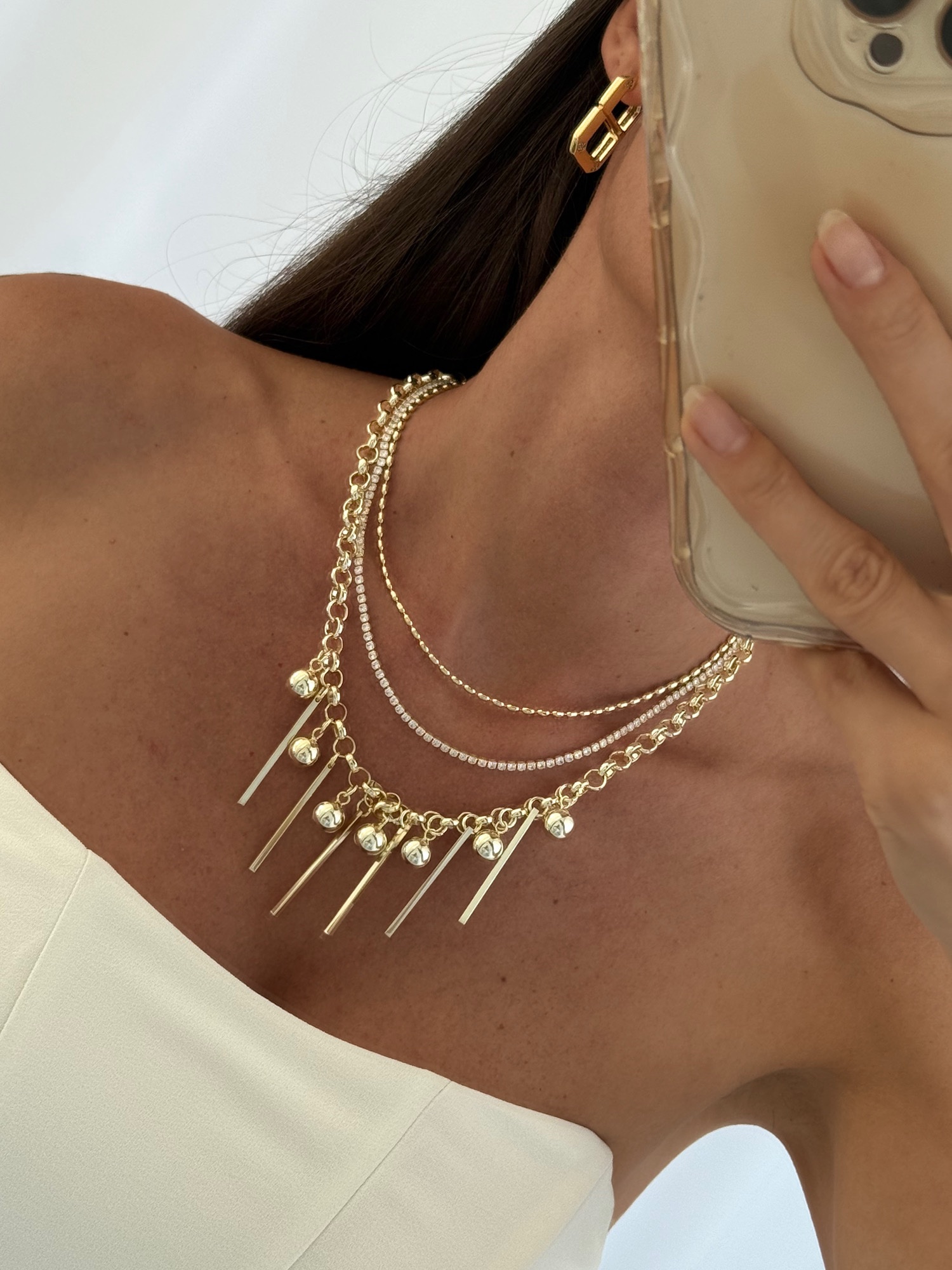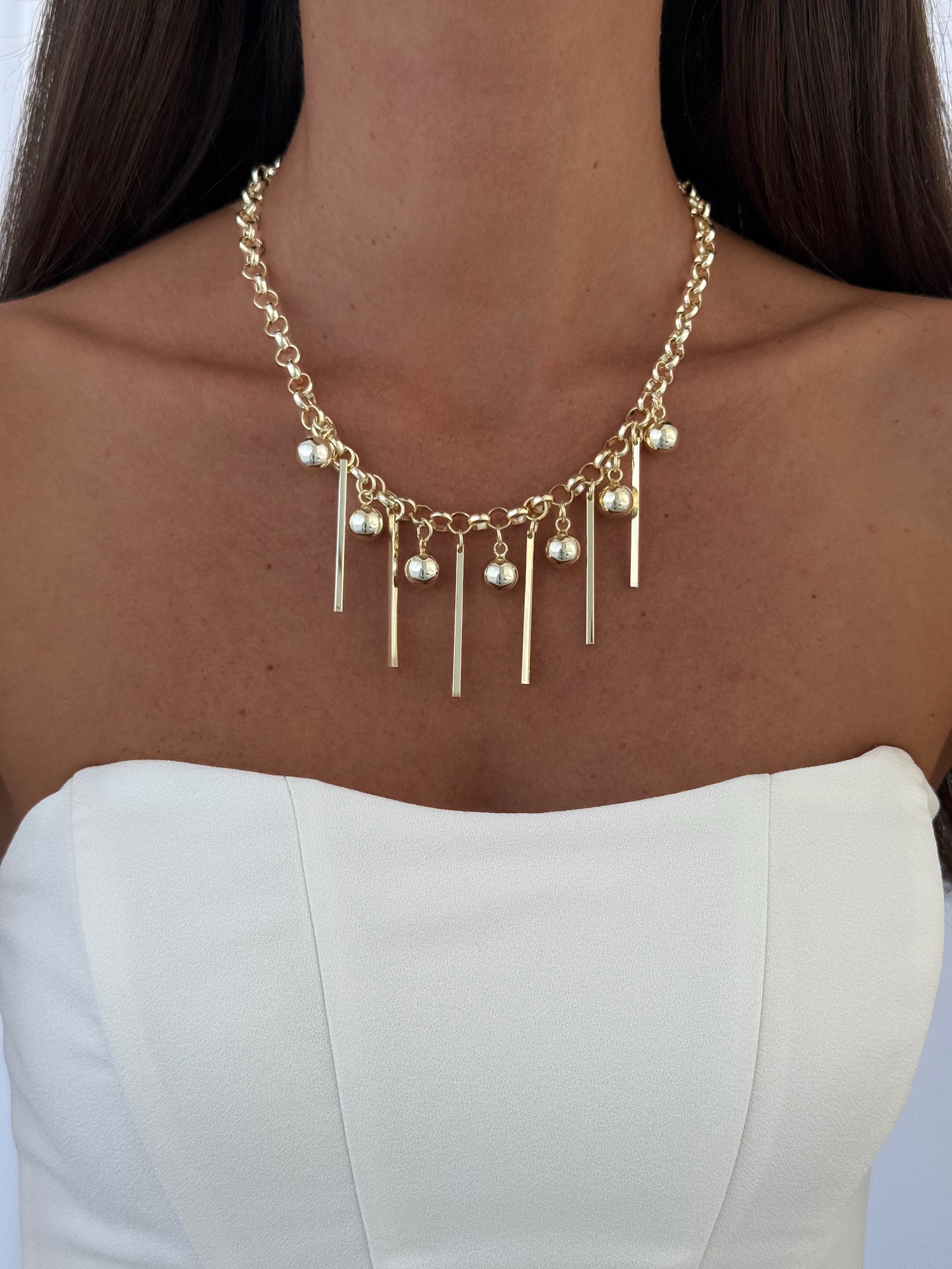 Özel Seri Top & Saçak Tasarım Halka Zincir Gold Kolye