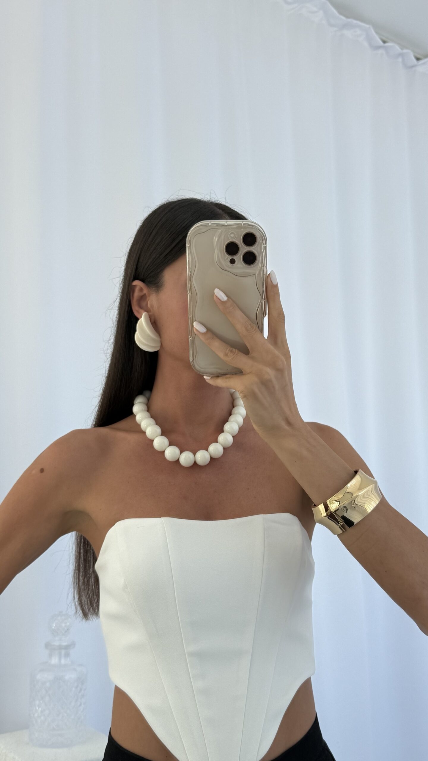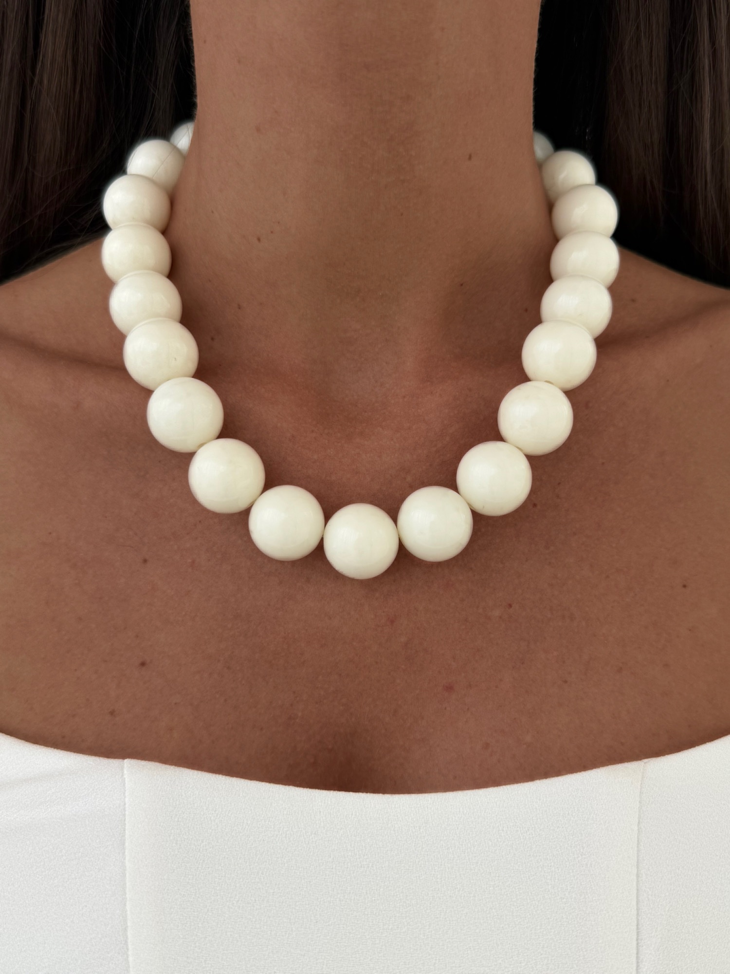 Özel Seri Top Tasarım Krem Rengi Kolye