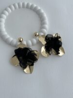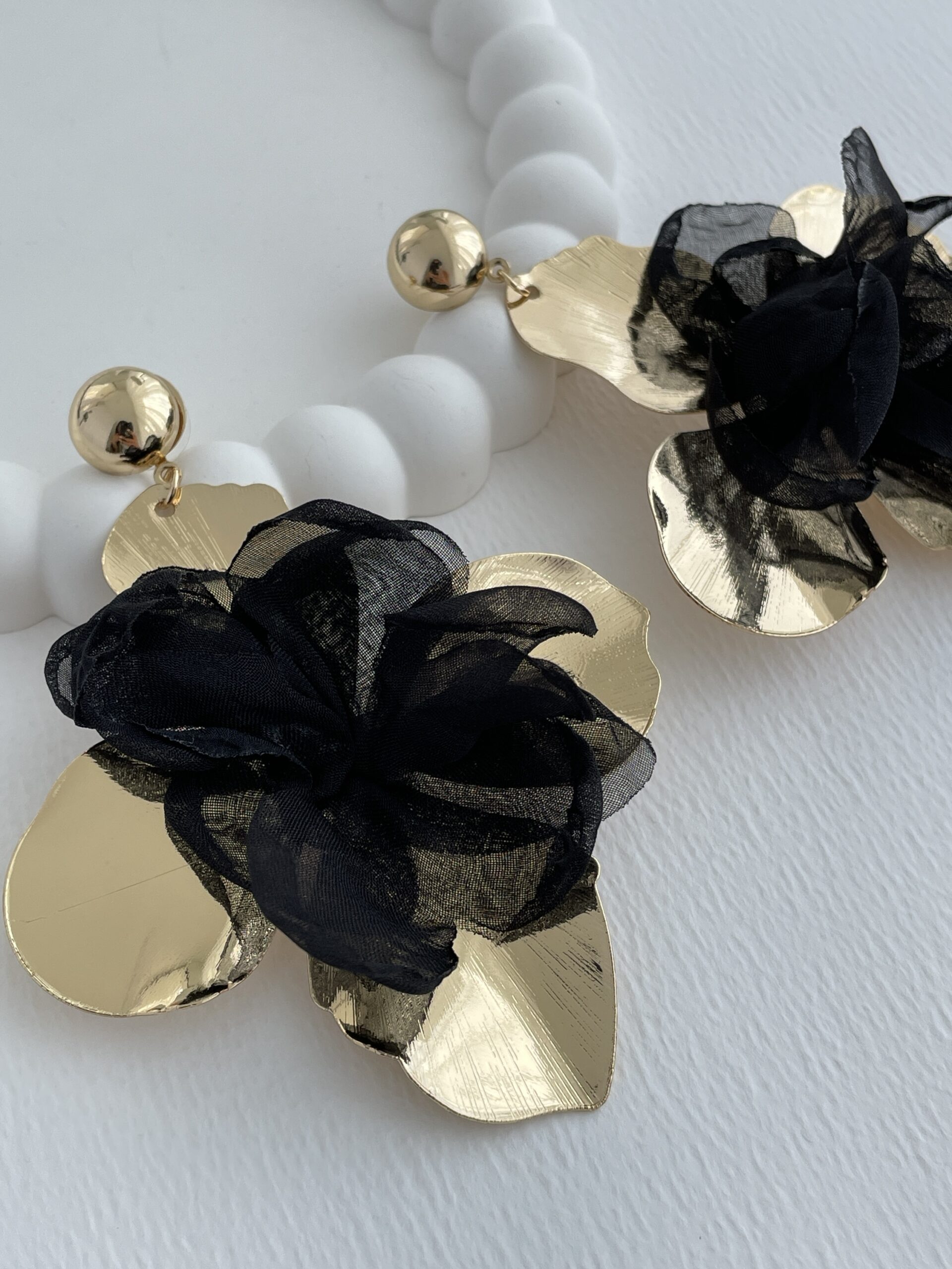 Özel Seri Siyah Tül Gül Tasarım Büyük Gold Küpe