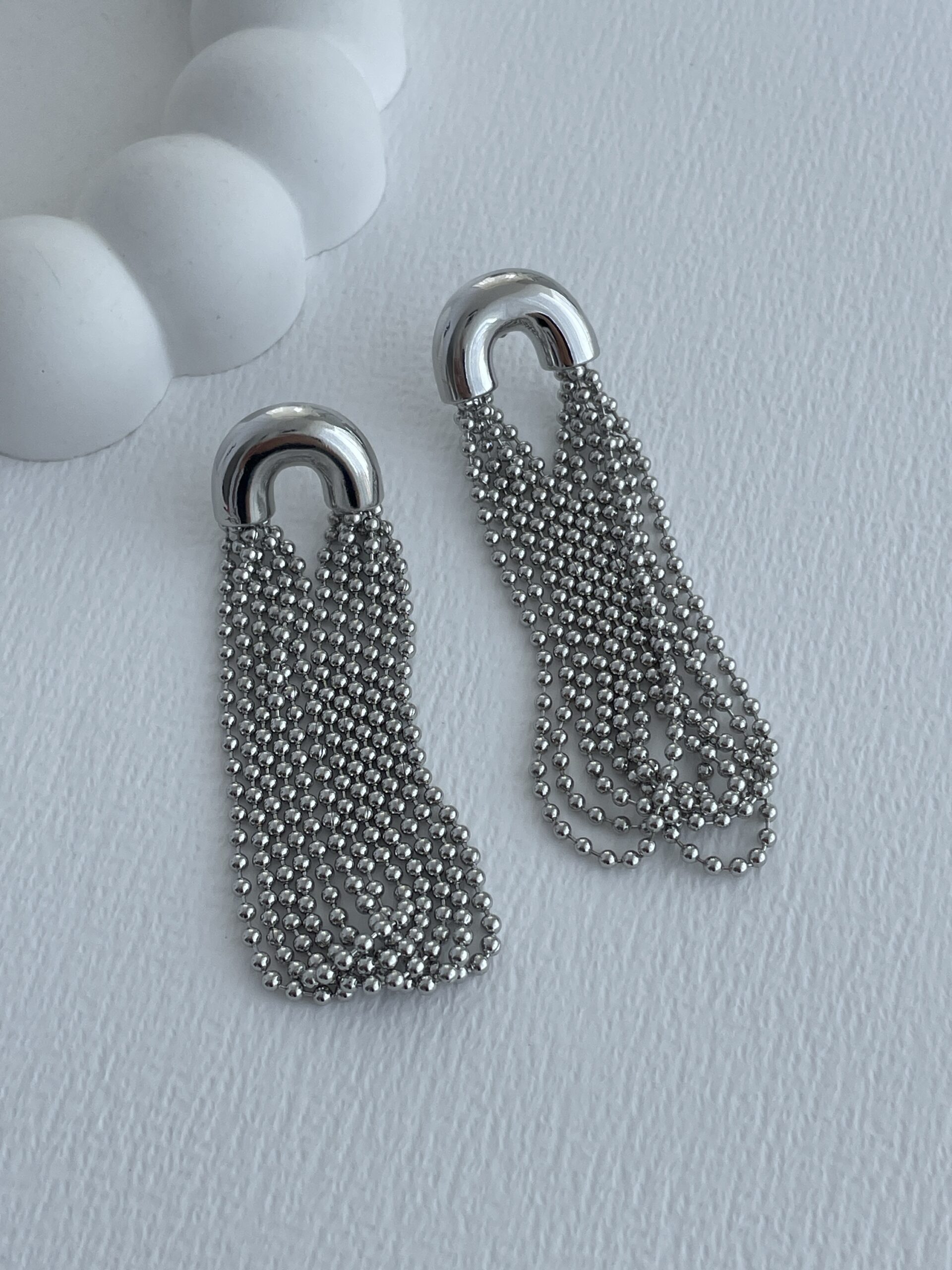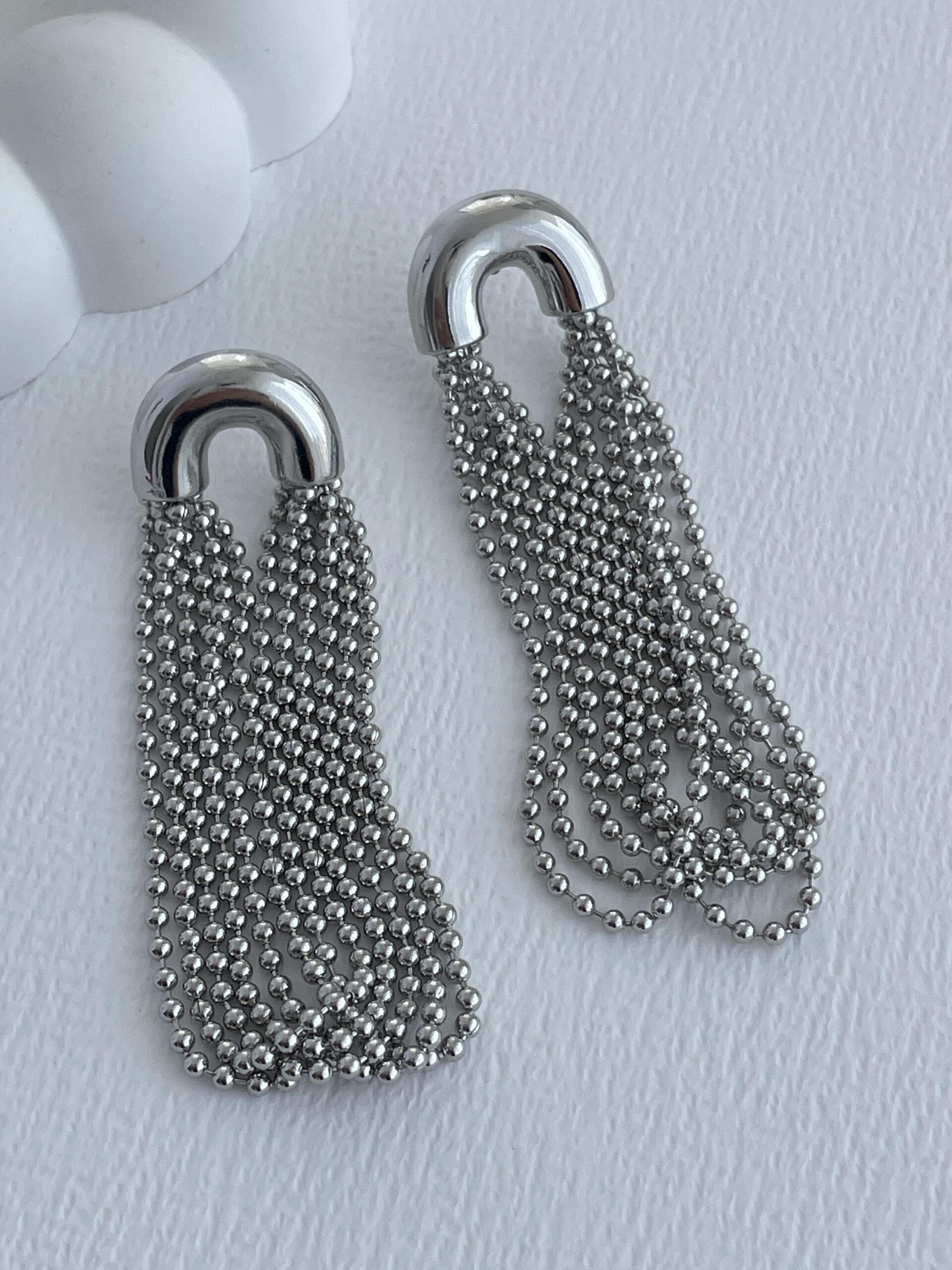 Özel Seri U Tasarım Top Zincir Gümüş Sallantılı Küpe