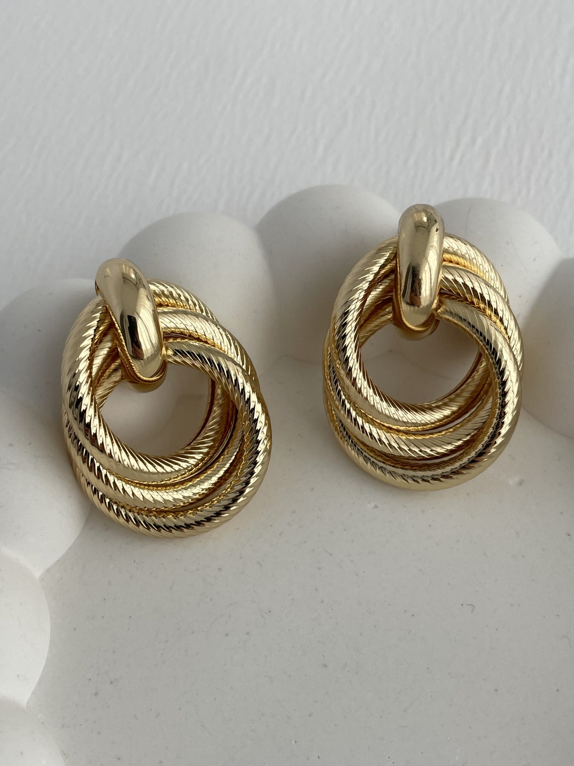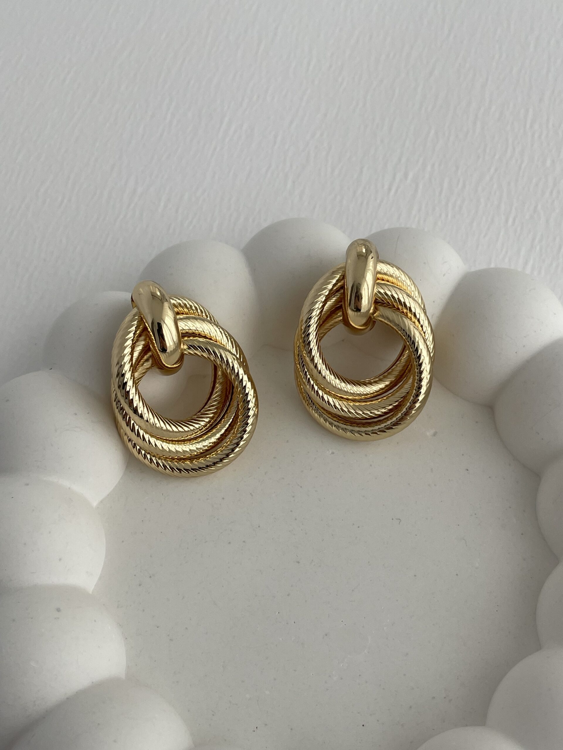 Özel Seri Üç Halkalı Tırtık Desen Gold Küpe