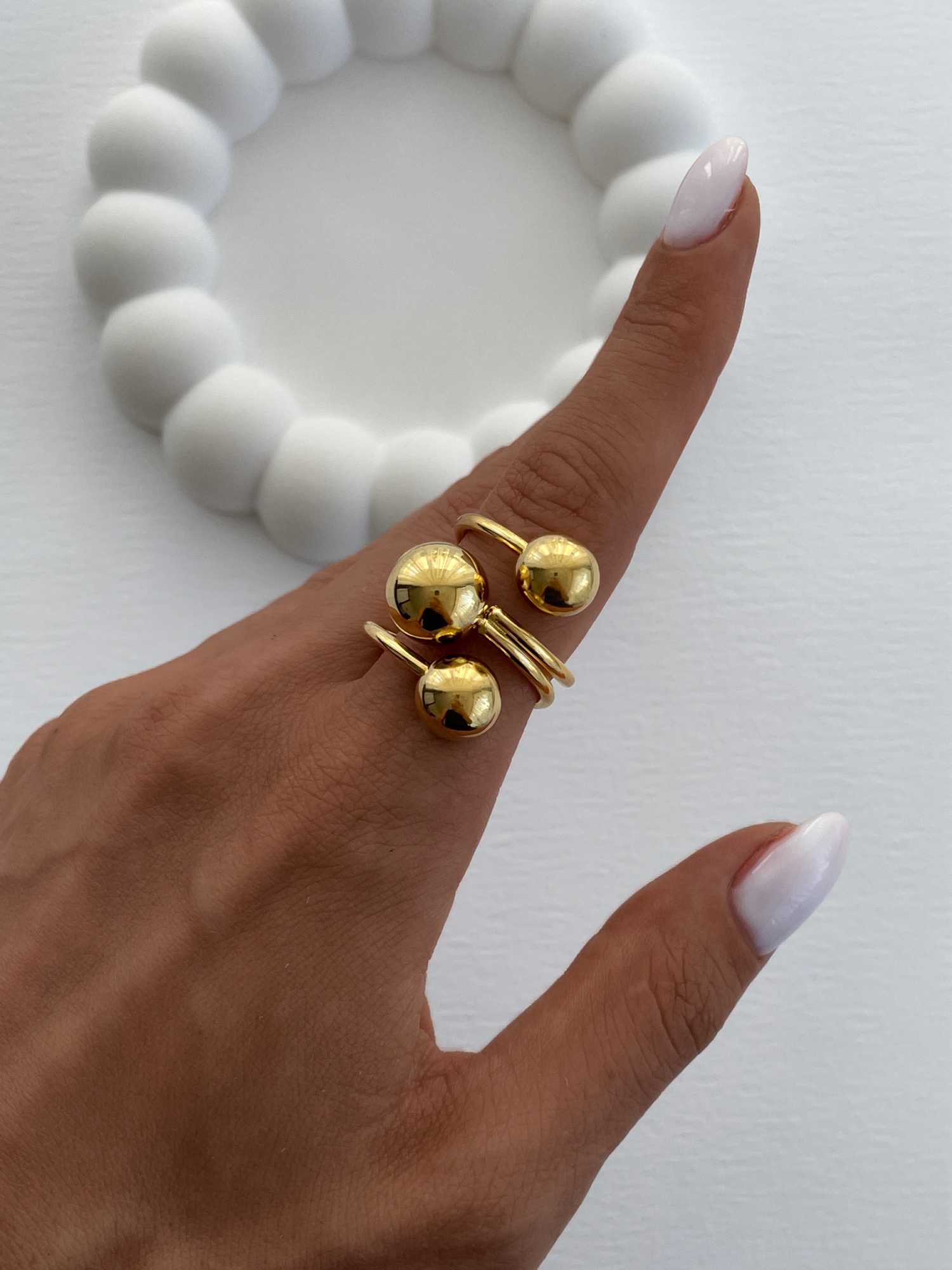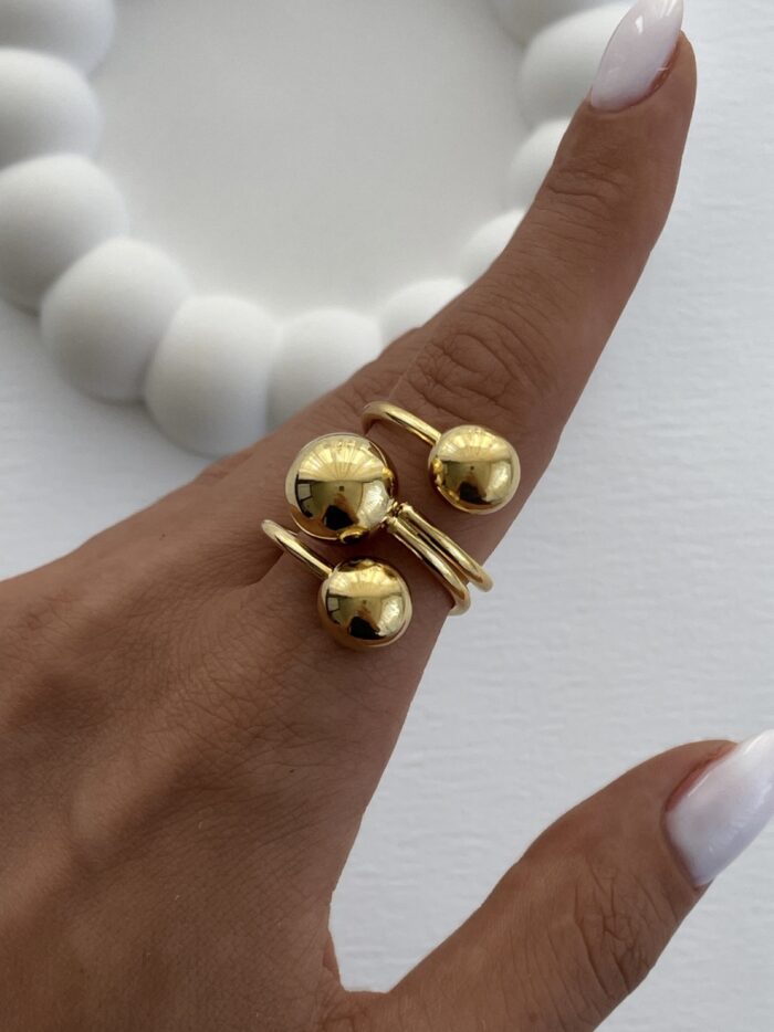 Özel Seri Üç Top Tasarım Gold Ayarlanabilir Yüzük