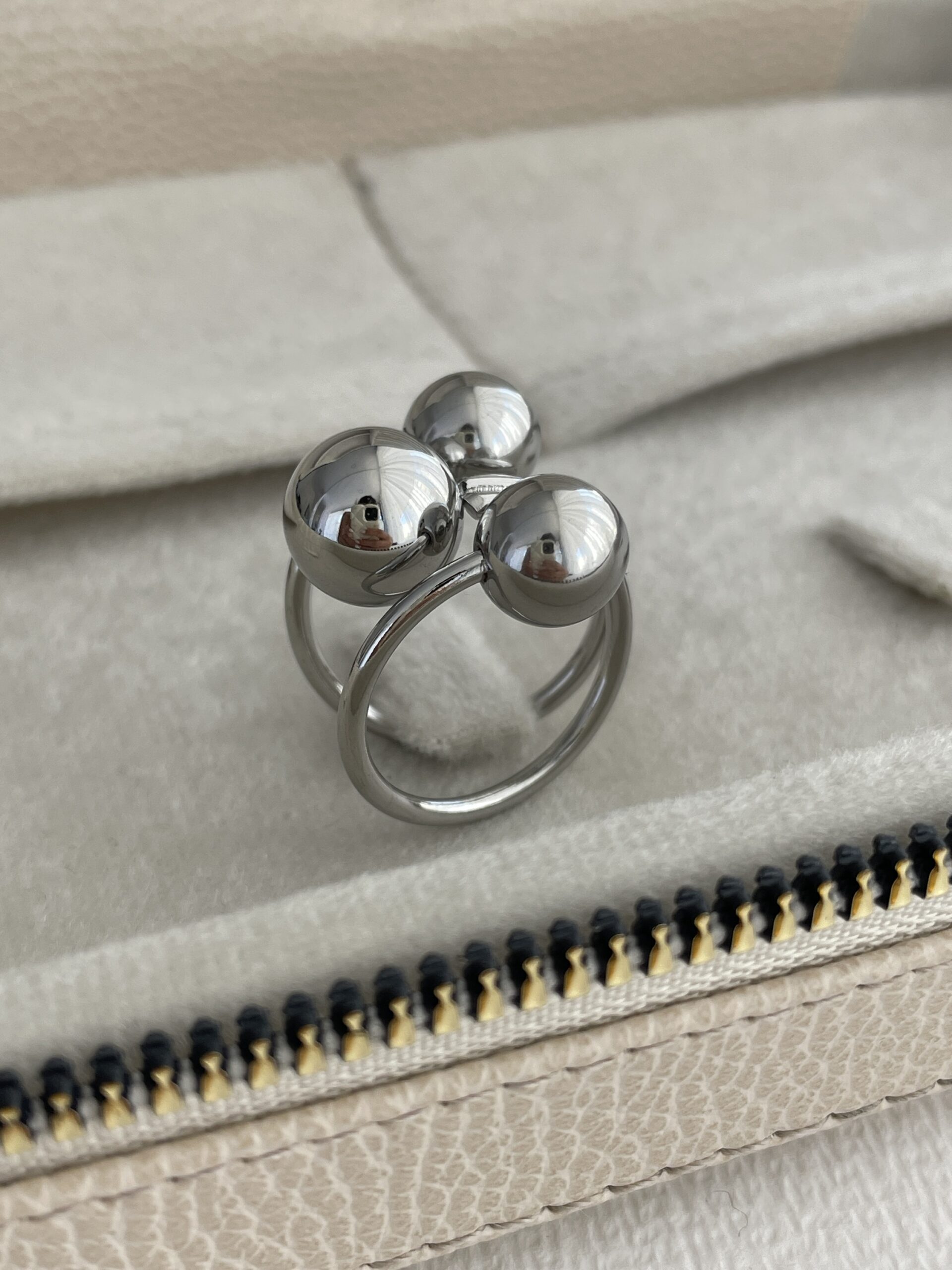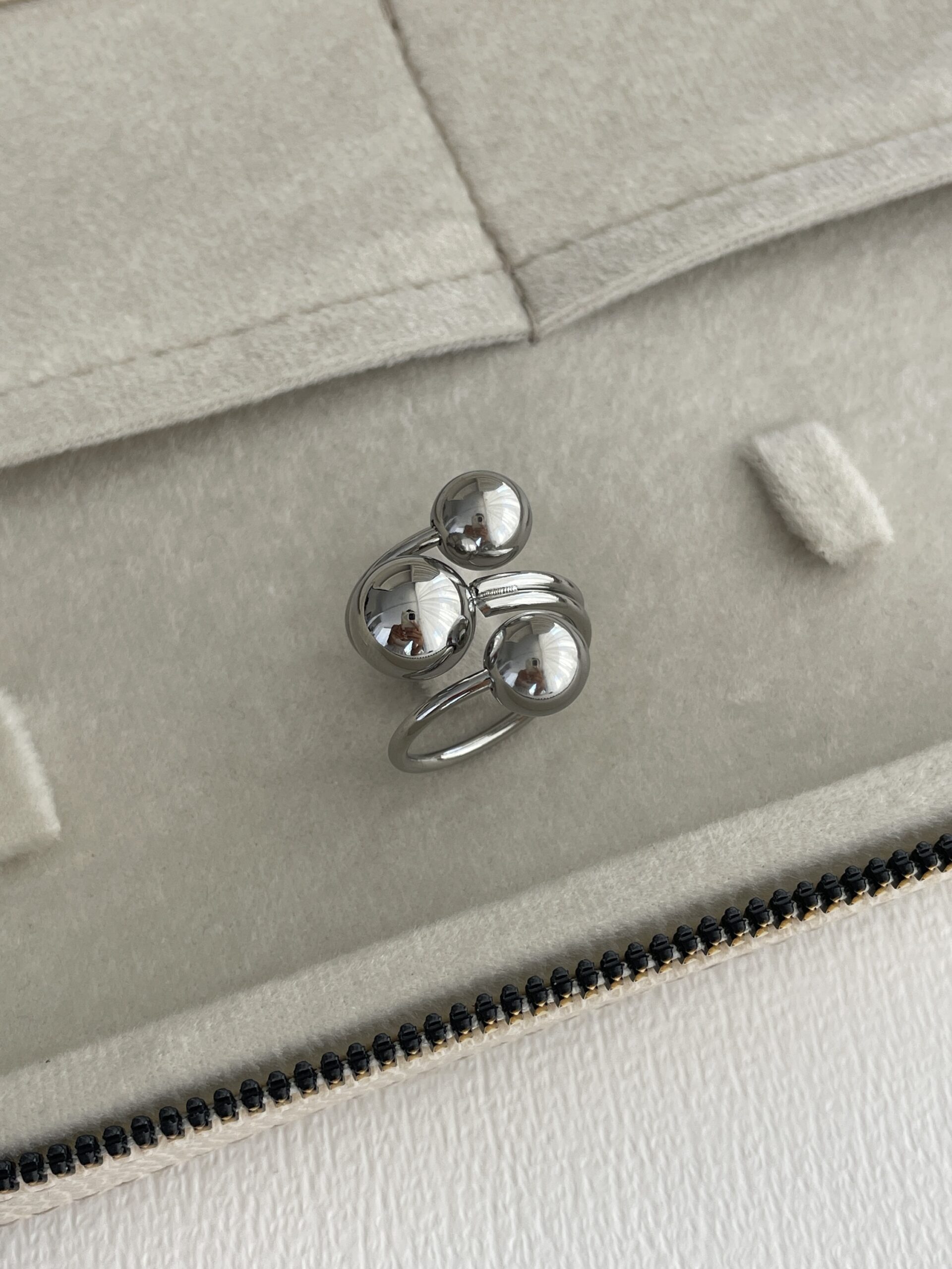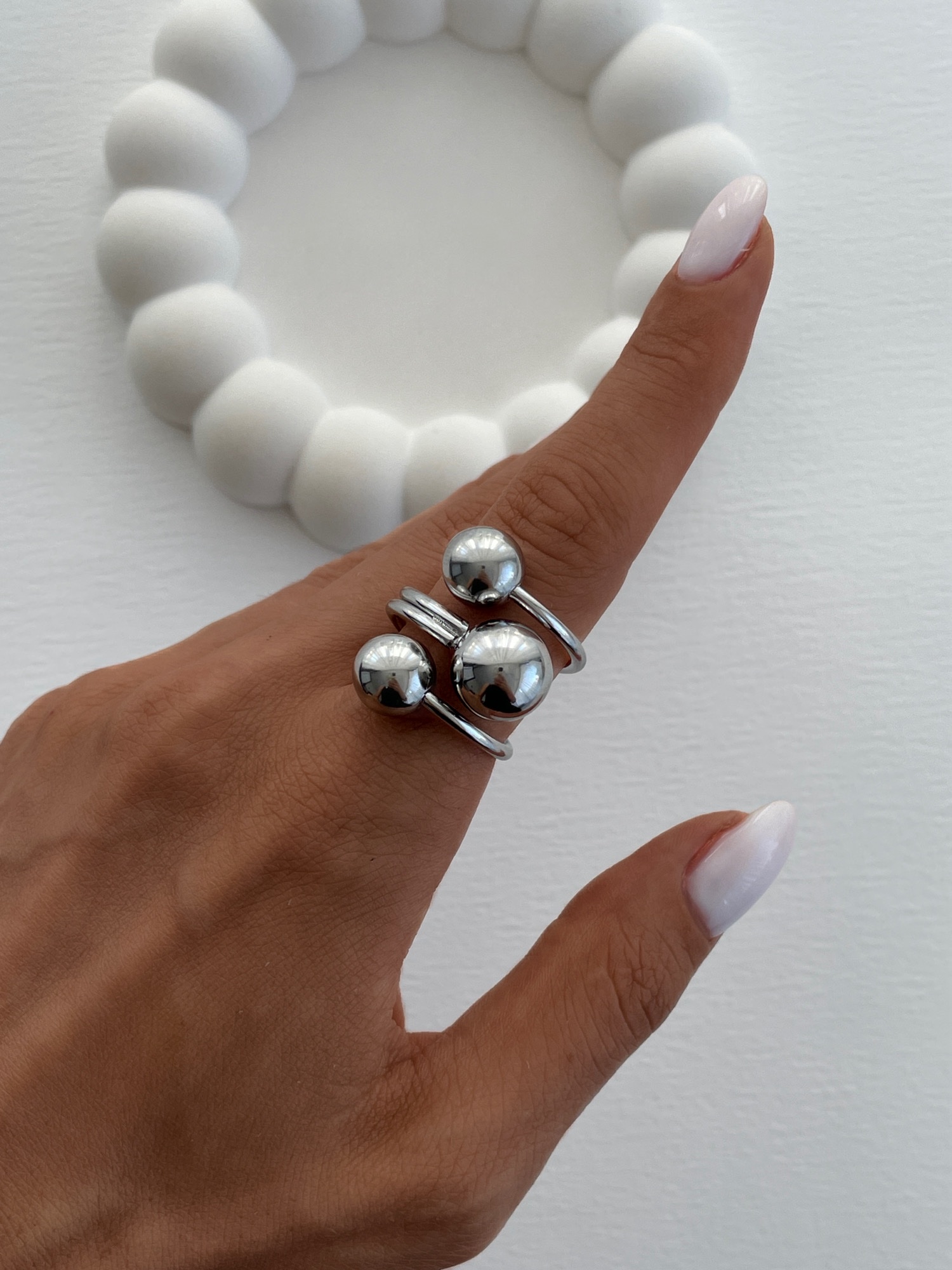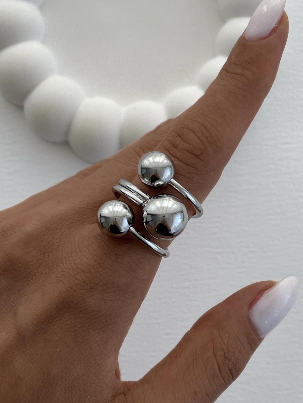 Özel Seri Üç Top Tasarım Gümüş Ayarlanabilir Yüzük
