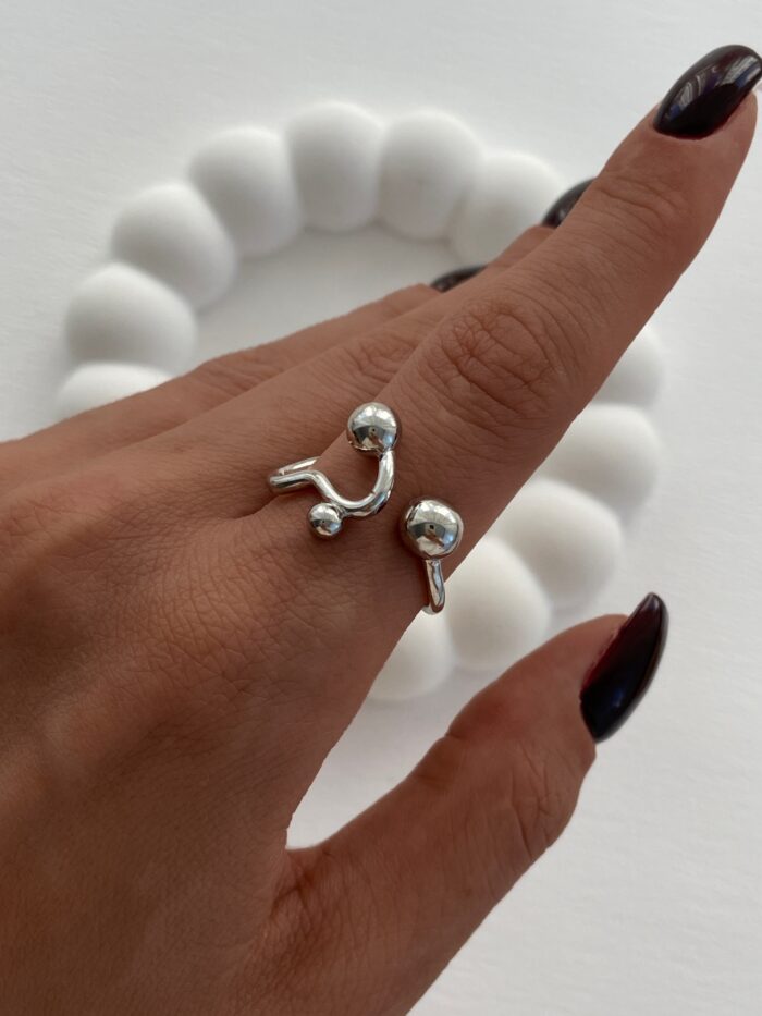 Özel Seri Üç Toplu Geometrik Tasarım Ayarlanabilir Gümüş Yüzük