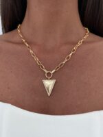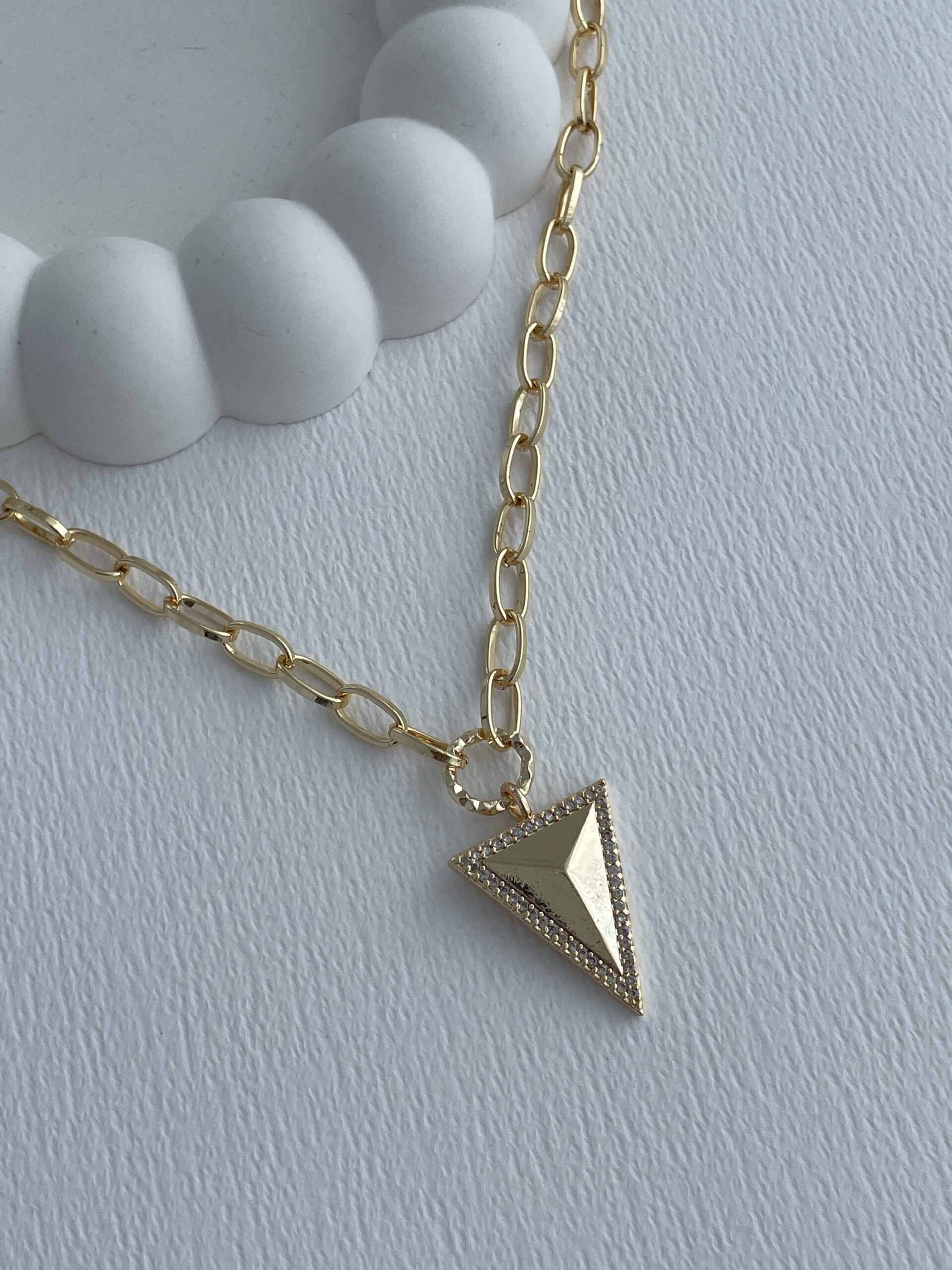 Özel Seri Üçgen Tasarım Gold Figaro Zincir Kolye
