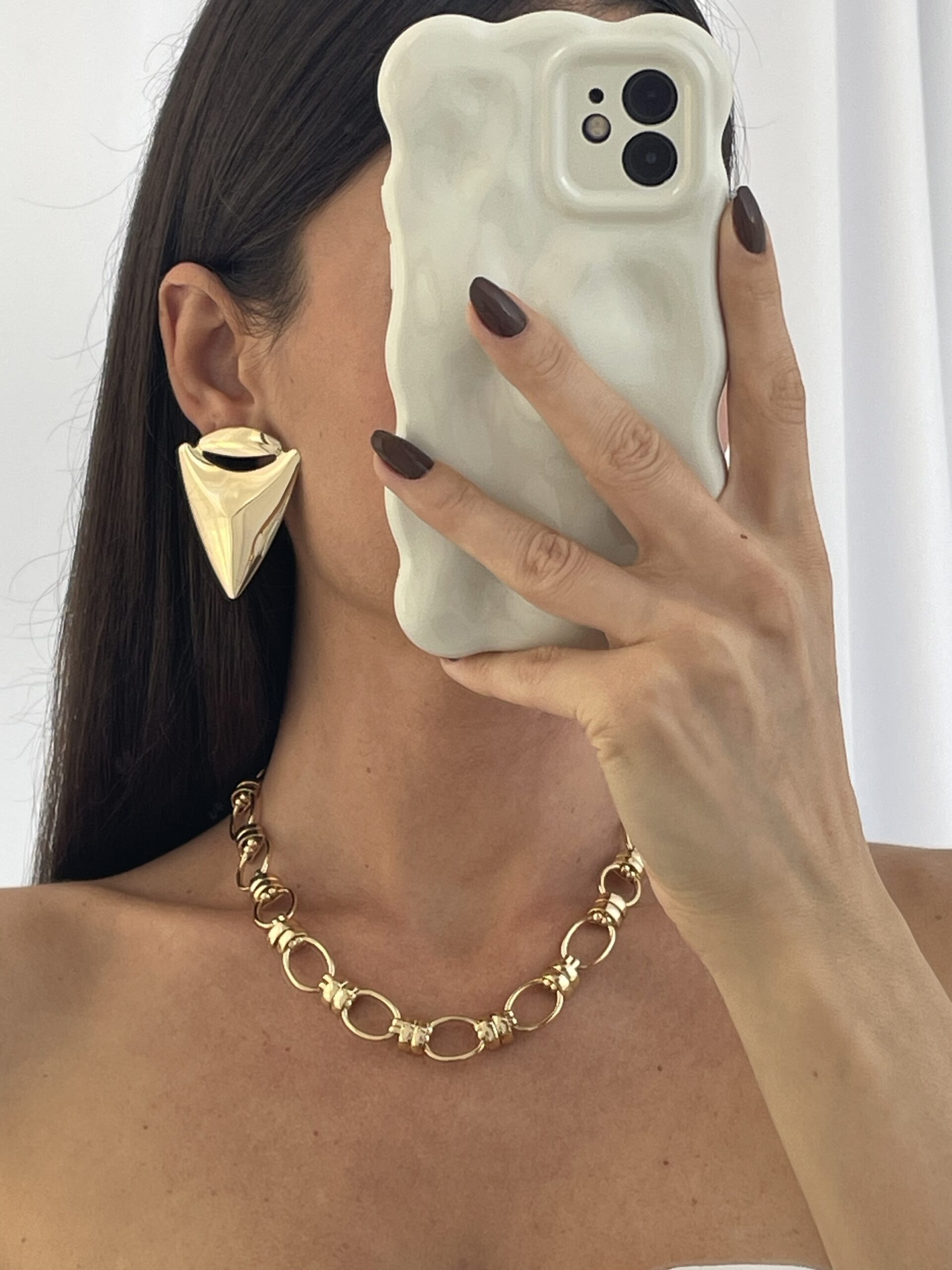 Özel Seri Üçgen Tasarım Gold Küpe