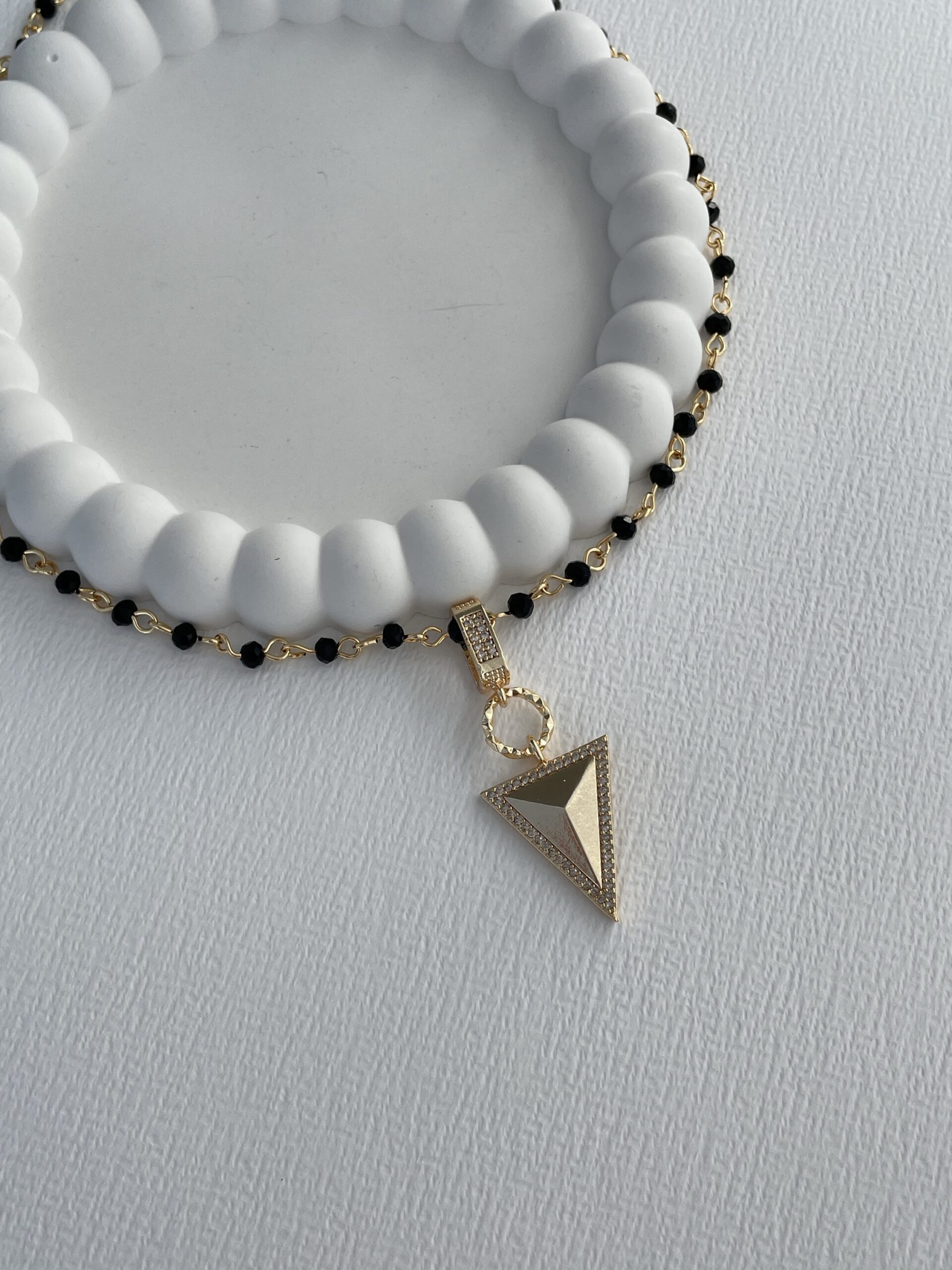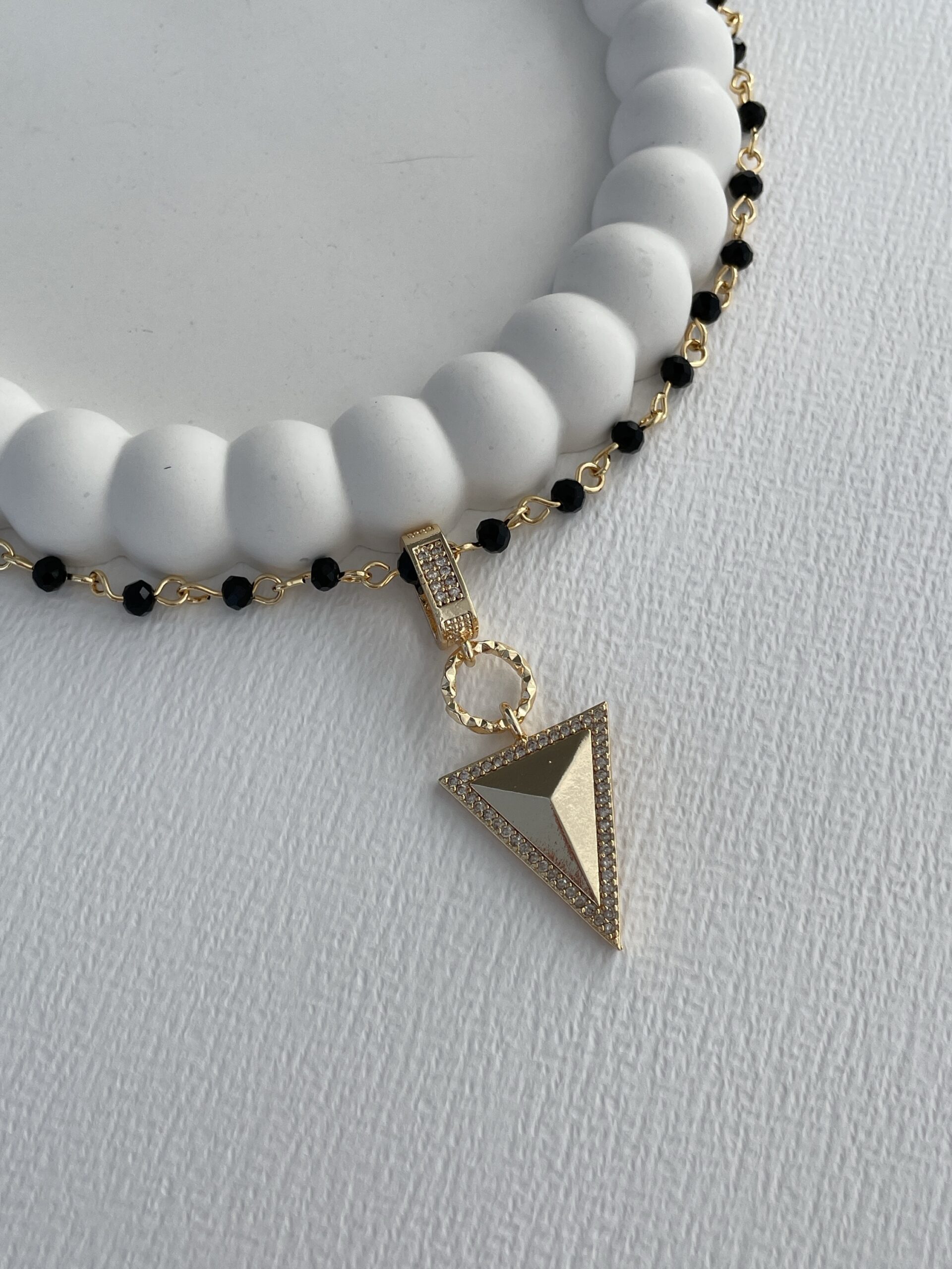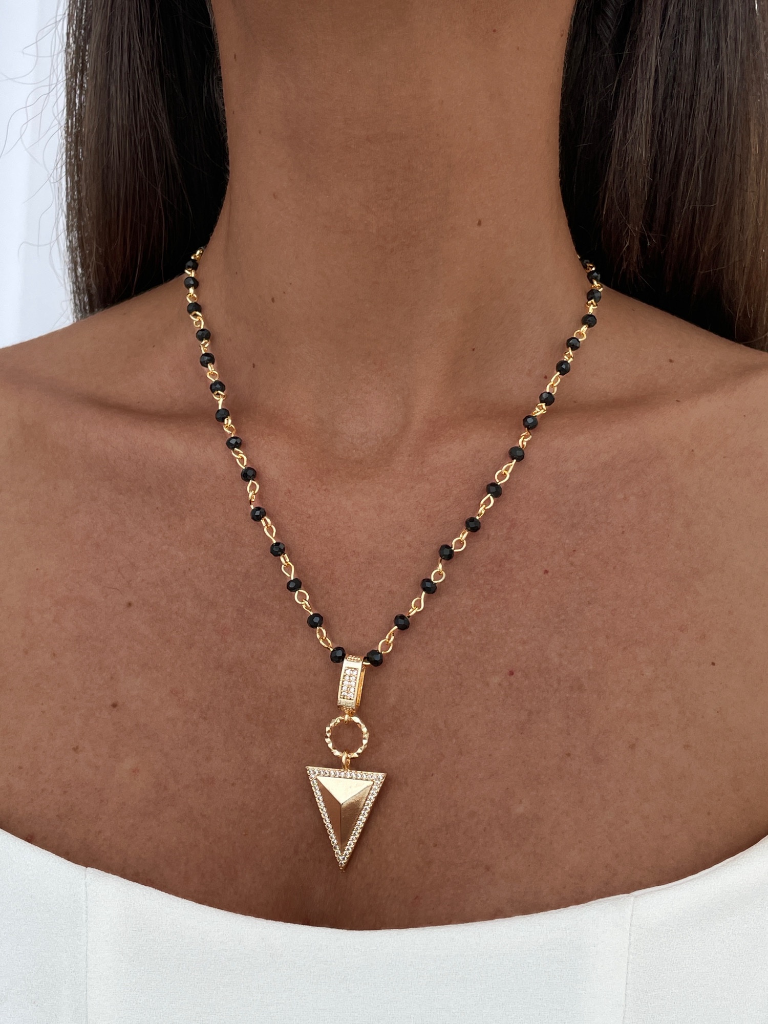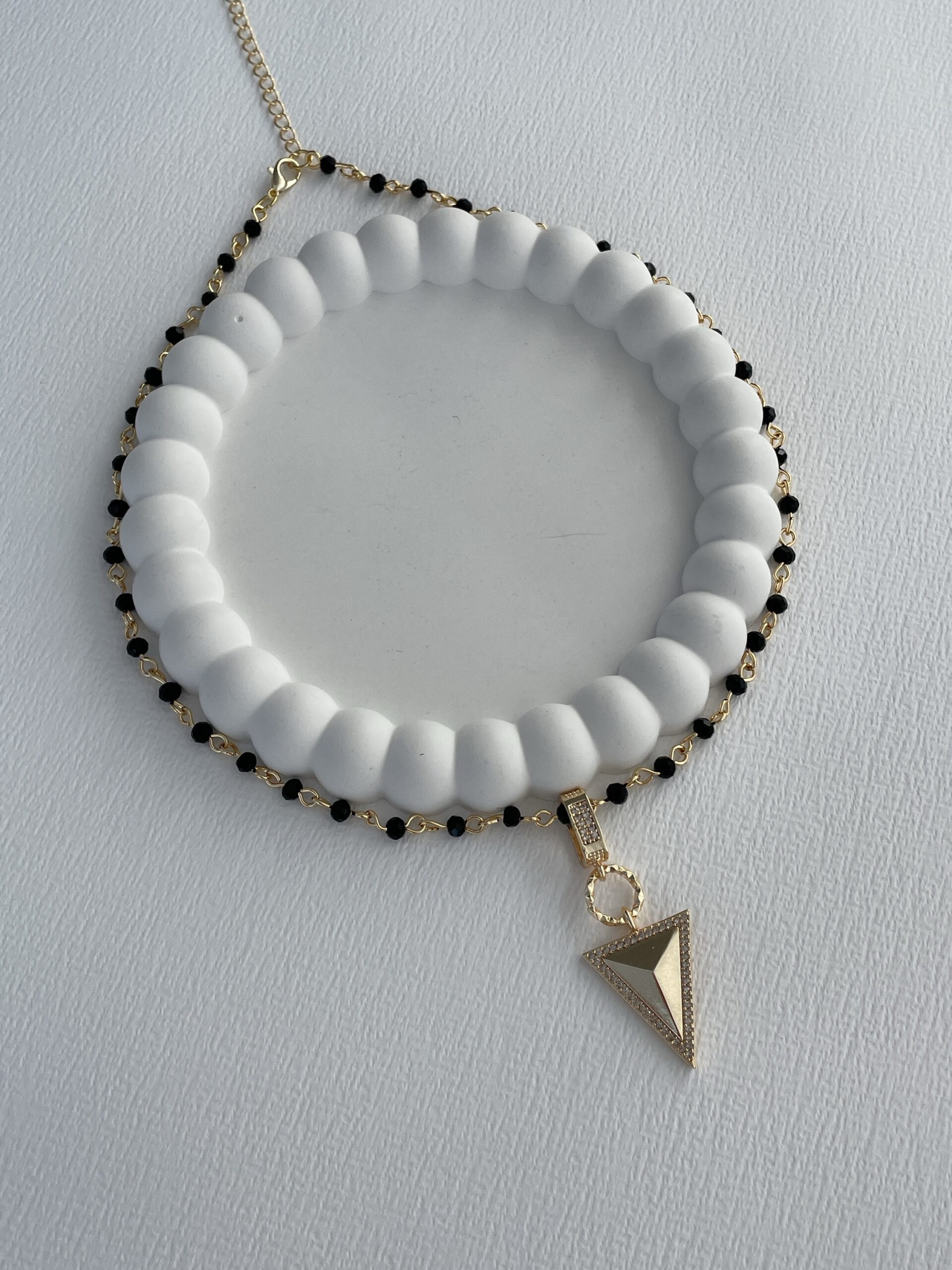 Özel Seri Üçgen Tasarım Gold & Siyah Top Zincir Kolye
