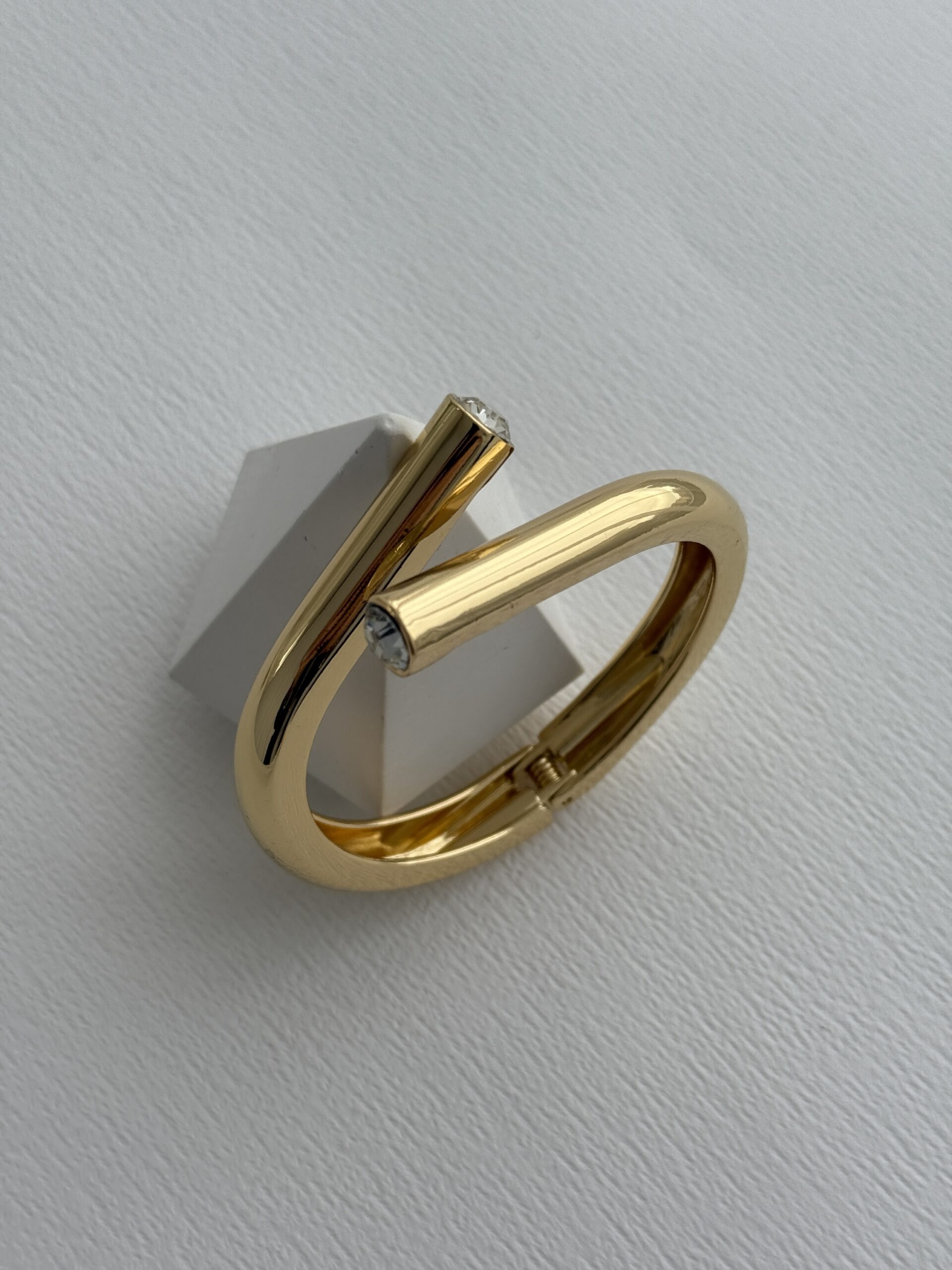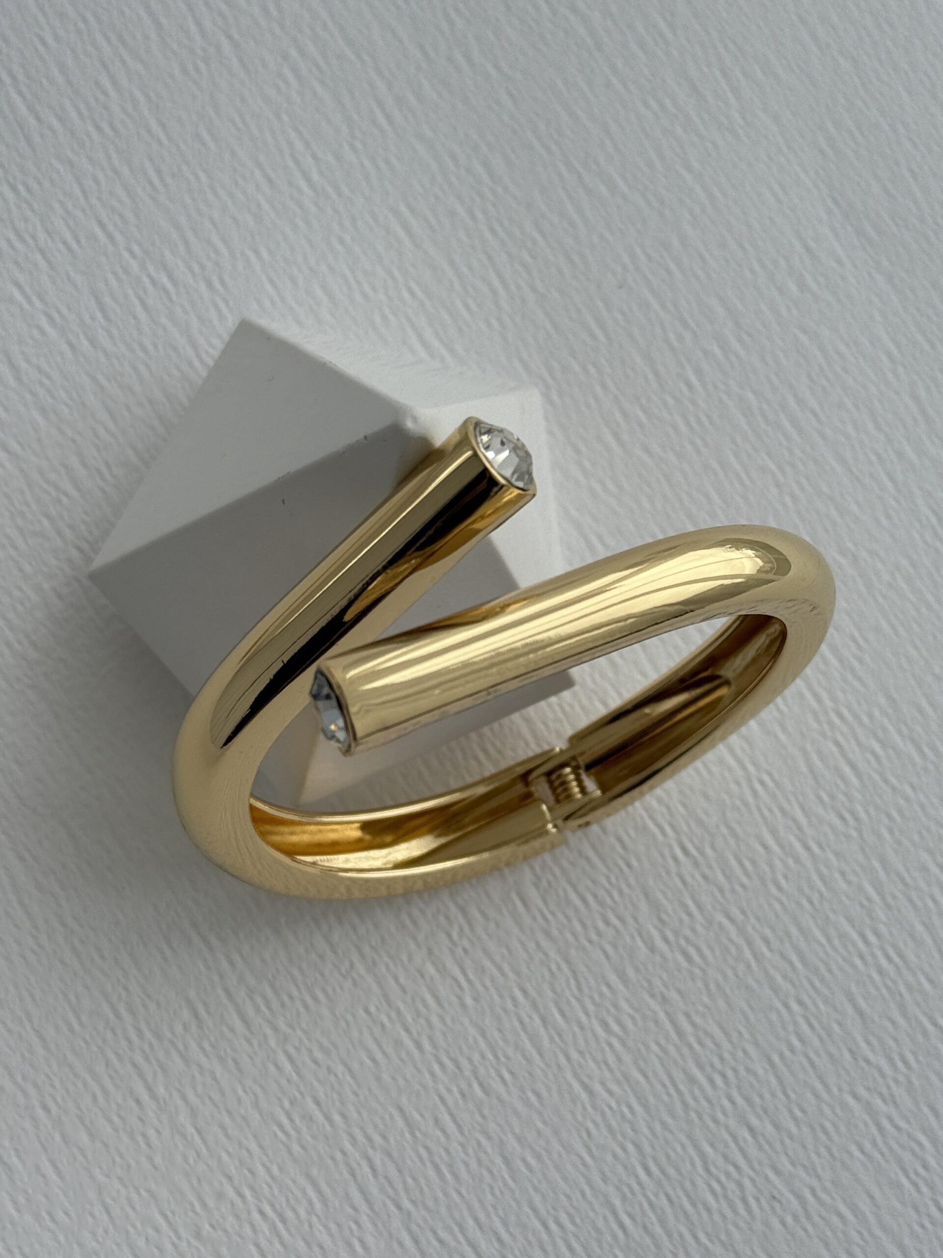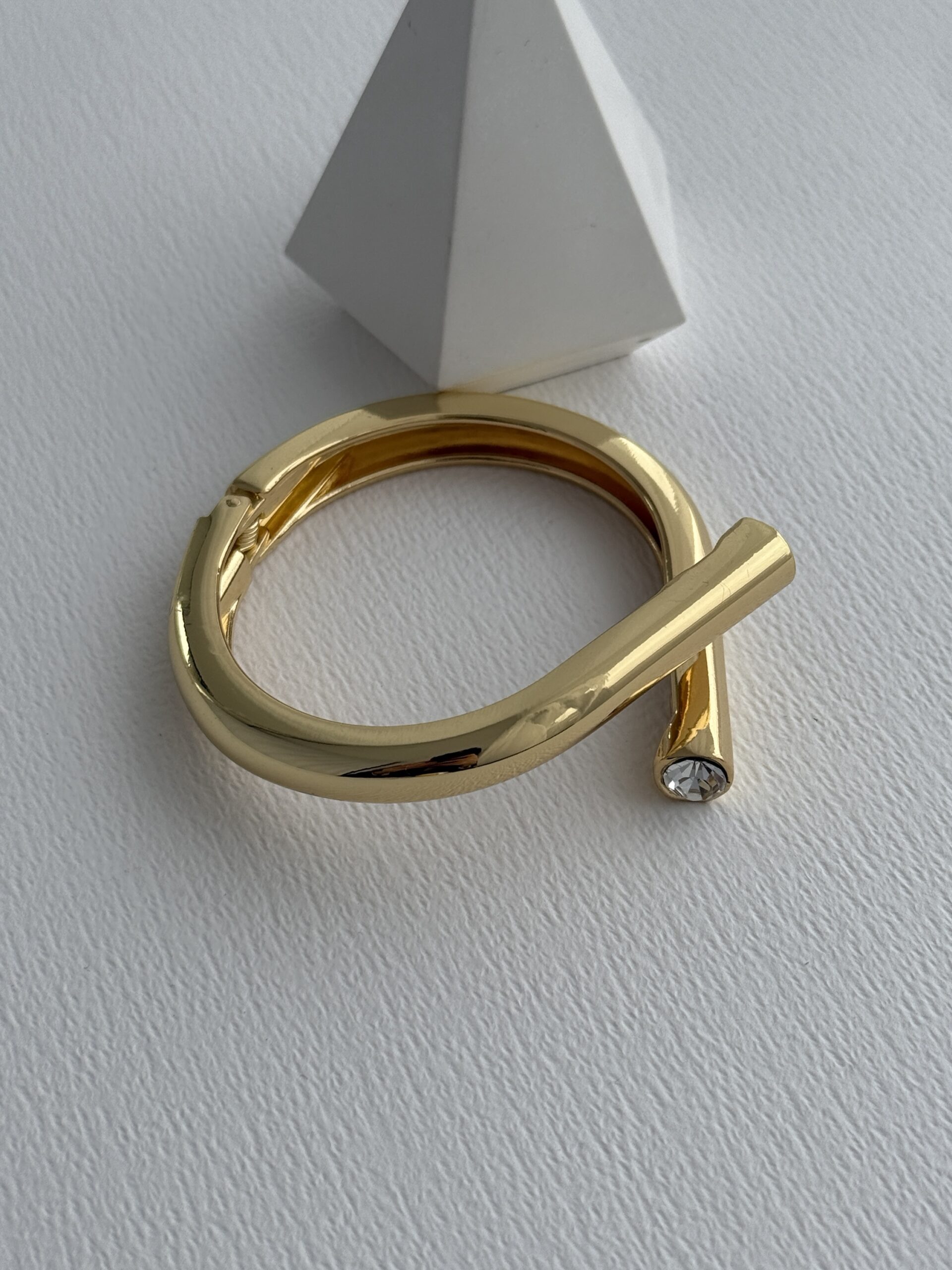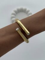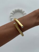 Özel Seri Uçları Taşlı Gold Kelepçe Bileklik