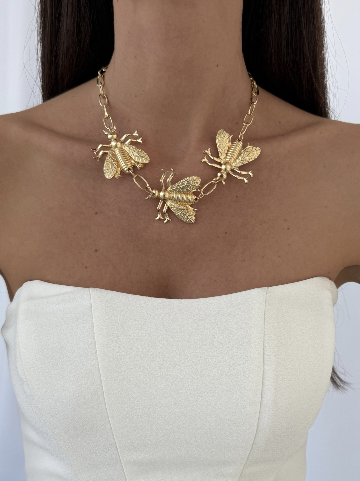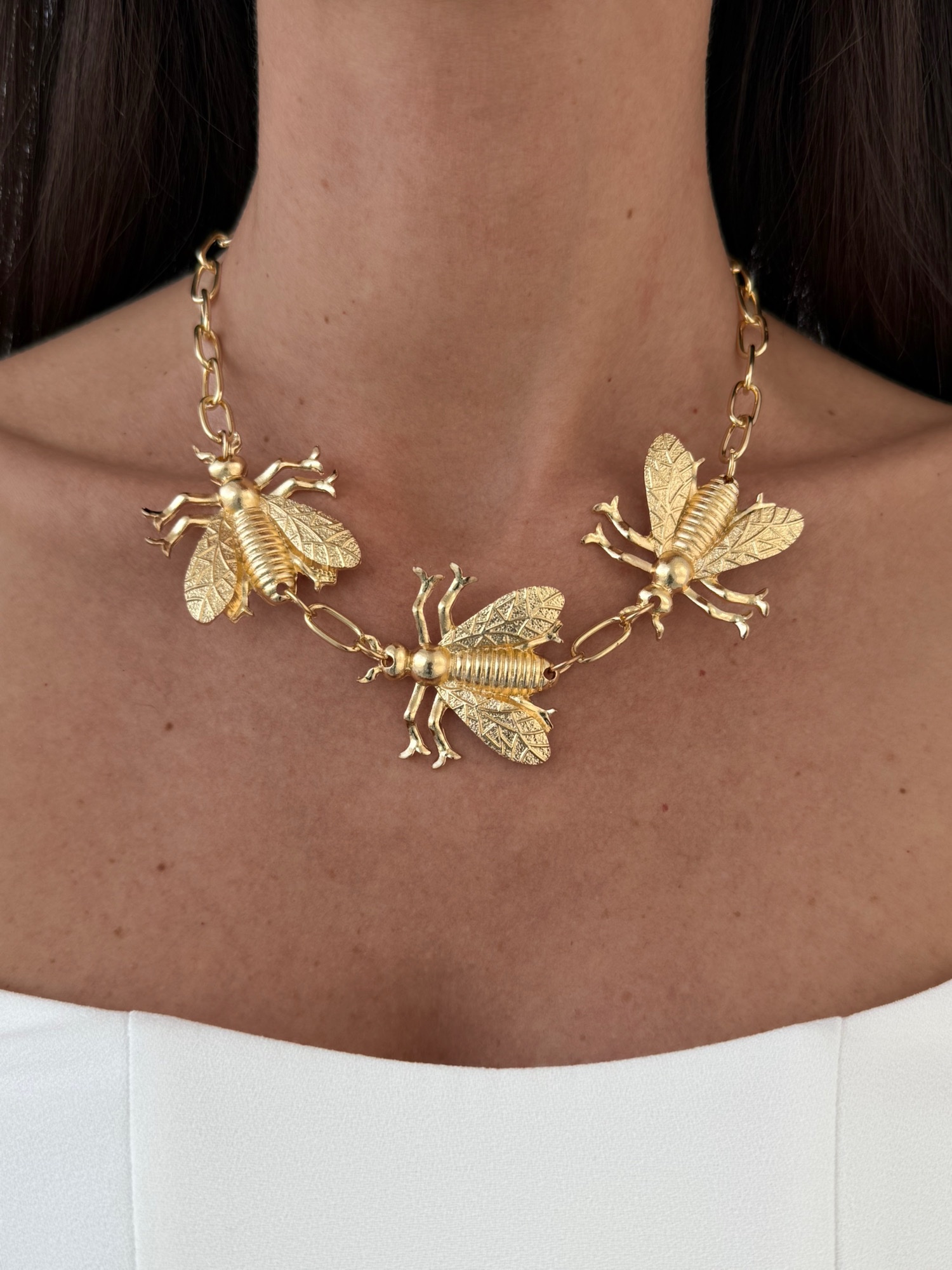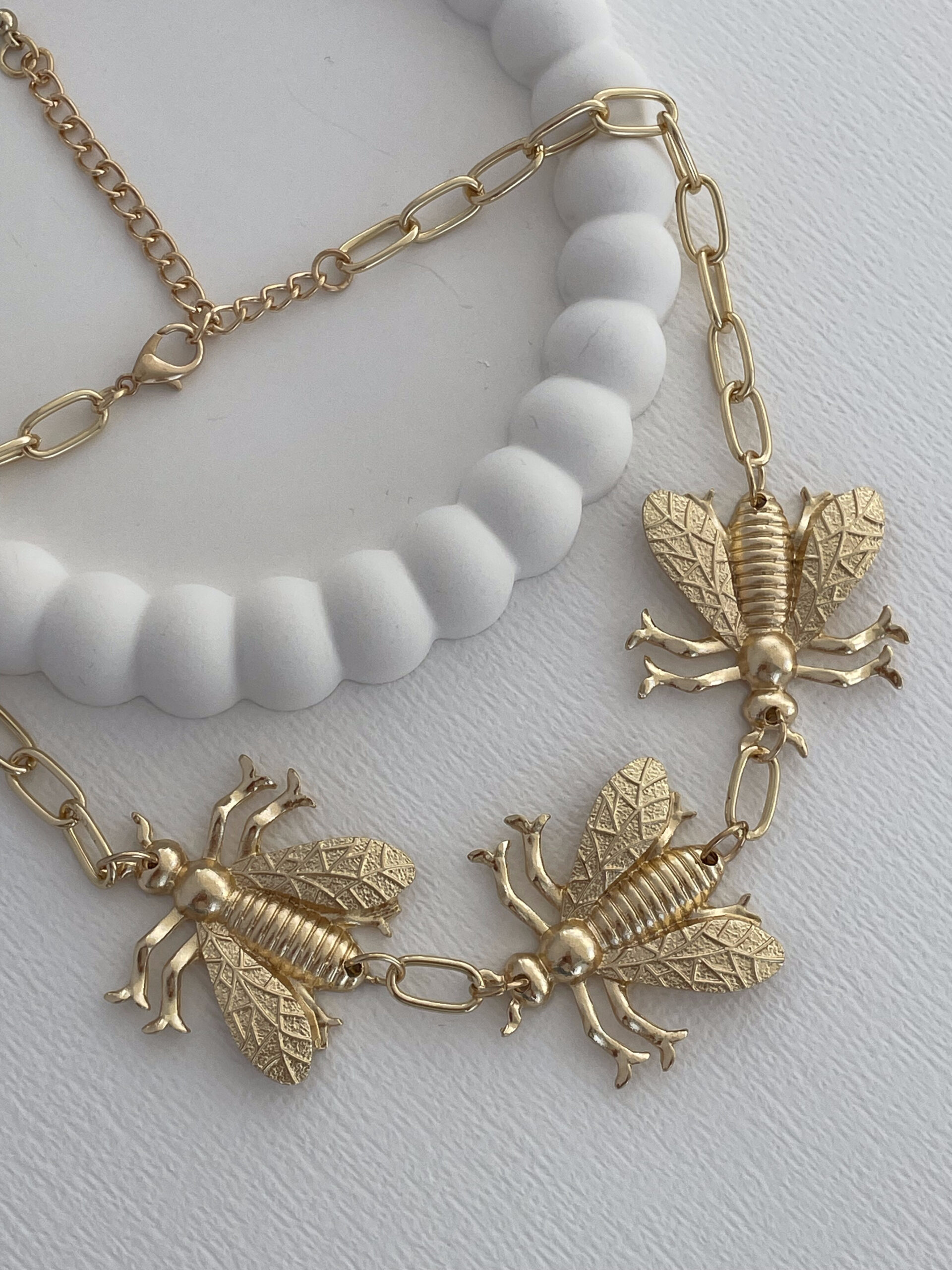 Özel Seri Üçlü Arı Tasarım Gold Kolye