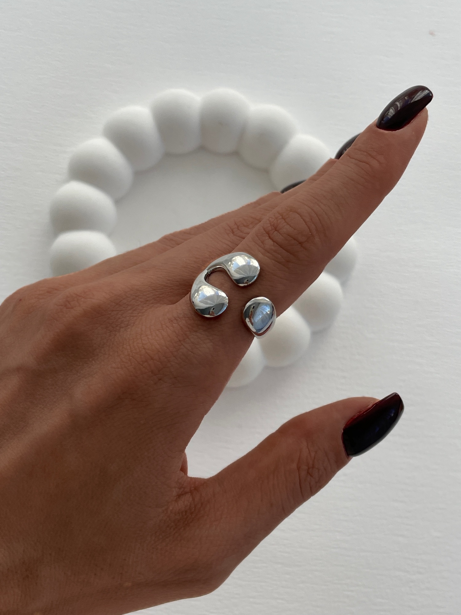 Özel Seri Üçlü Damla Ayarlanabilir Gümüş Yüzük
