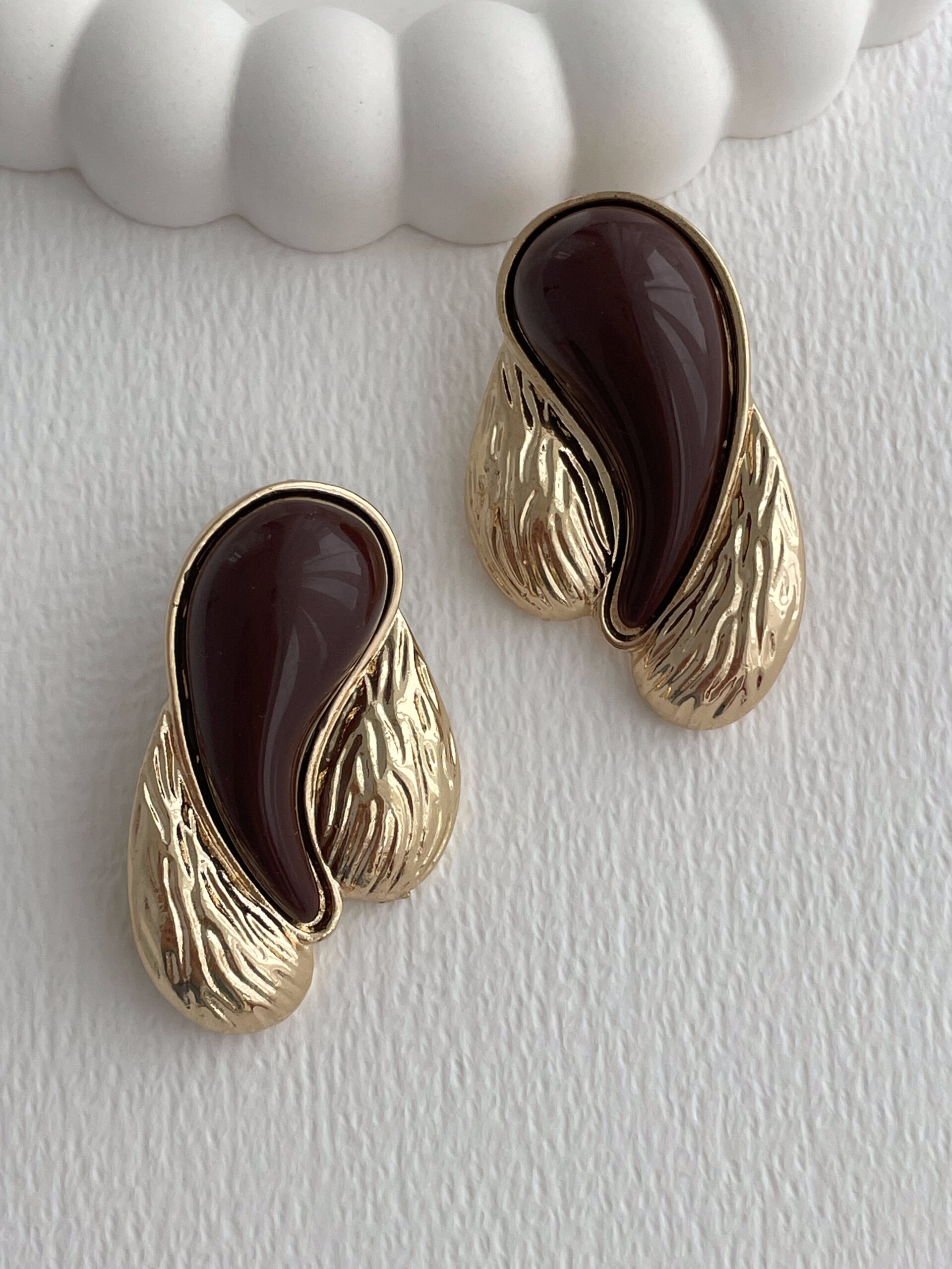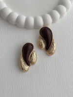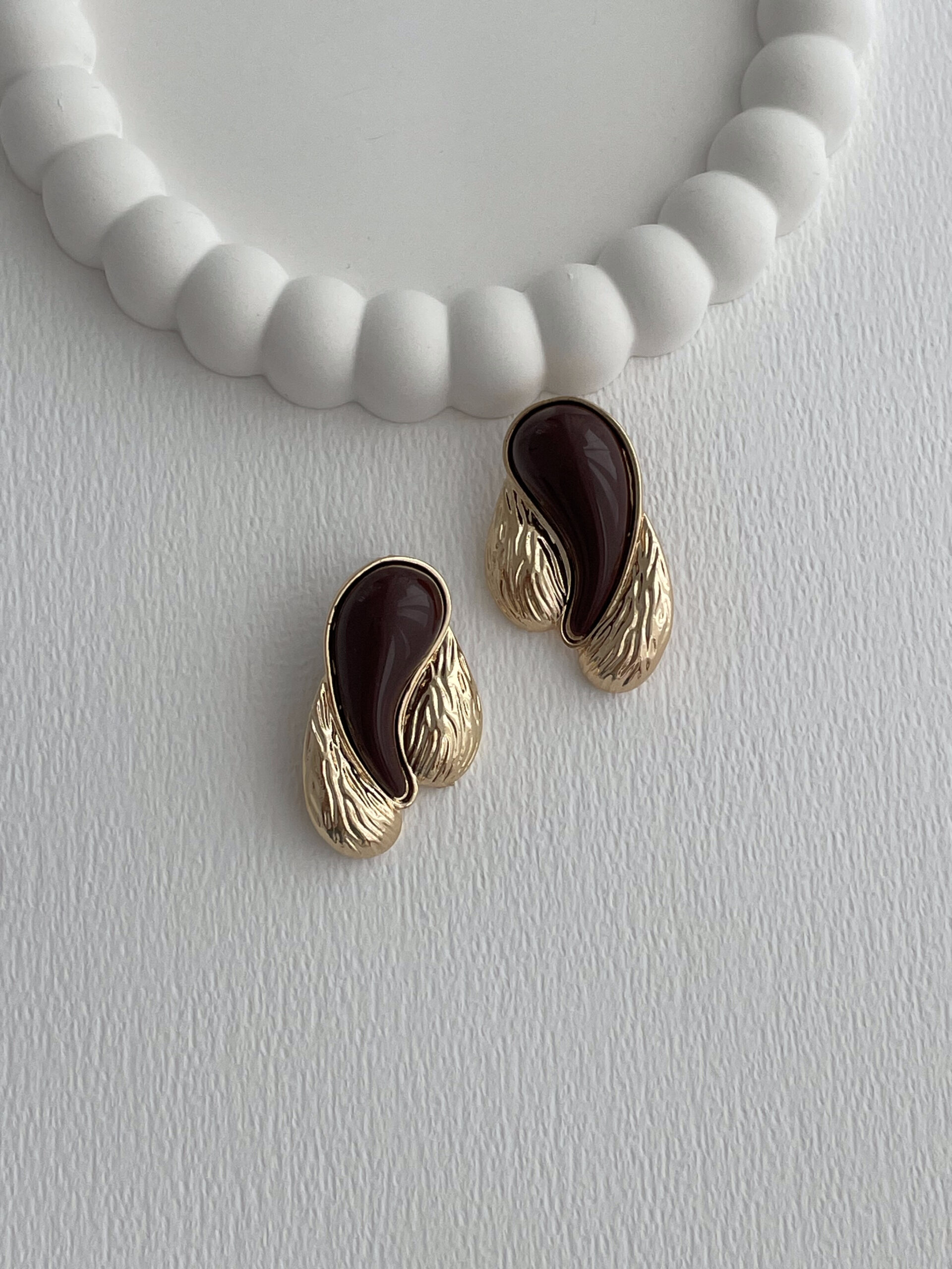 Özel Seri Üçlü Damla Model Kahverengi Mineli Desenli Gold Küpe