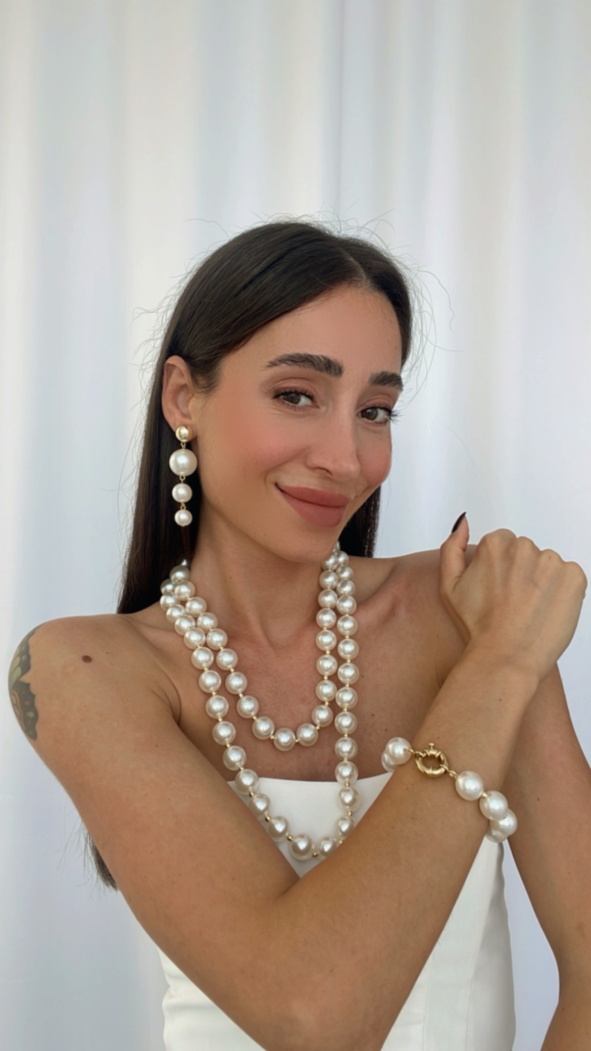 Özel Seri Üçlü Gold Detay İnci Küpe