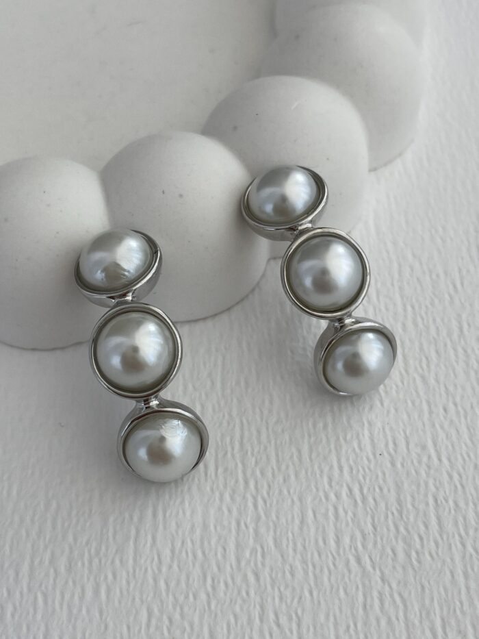 Özel Seri Üçlü Gümüş İnci Küpe