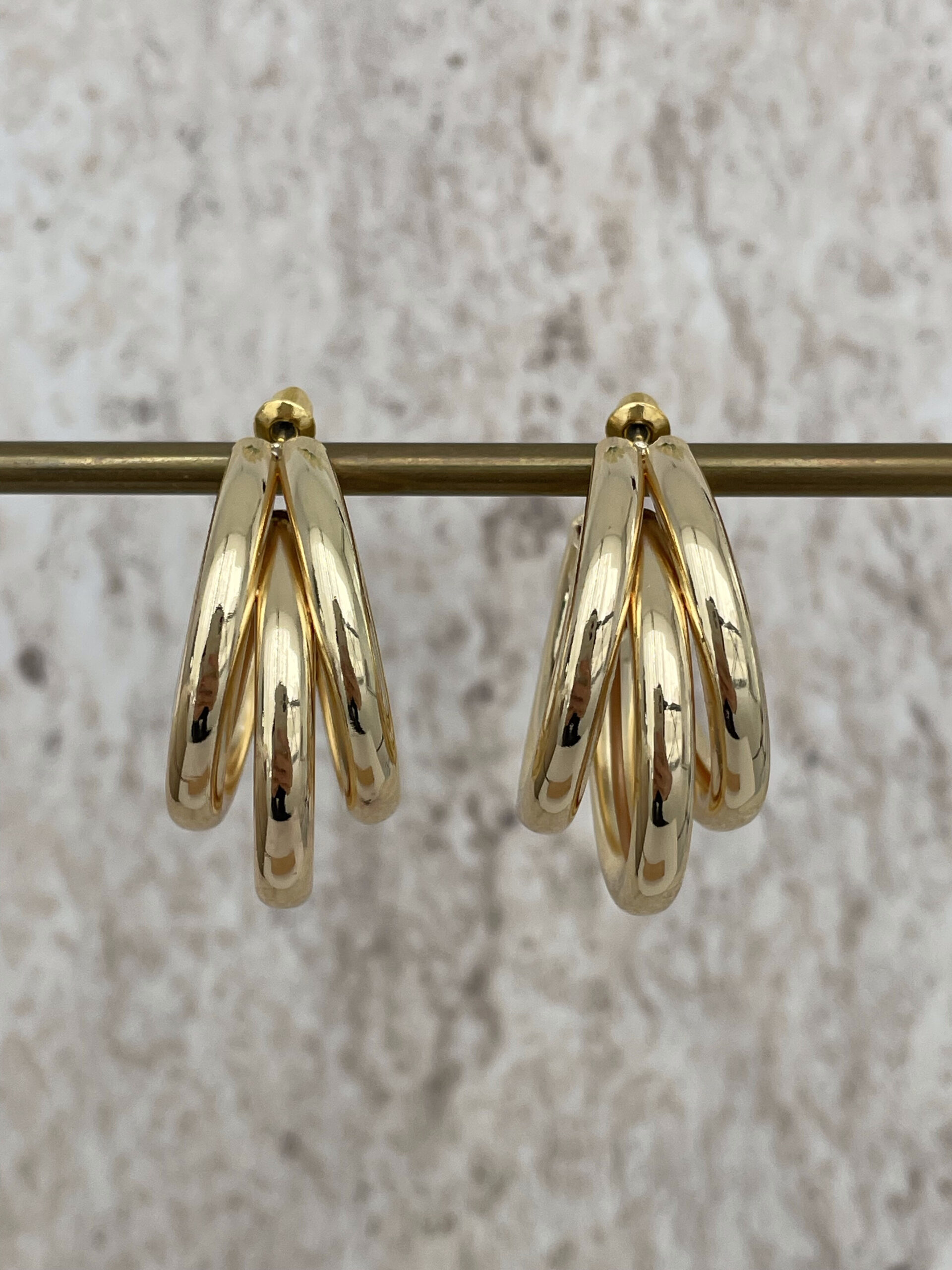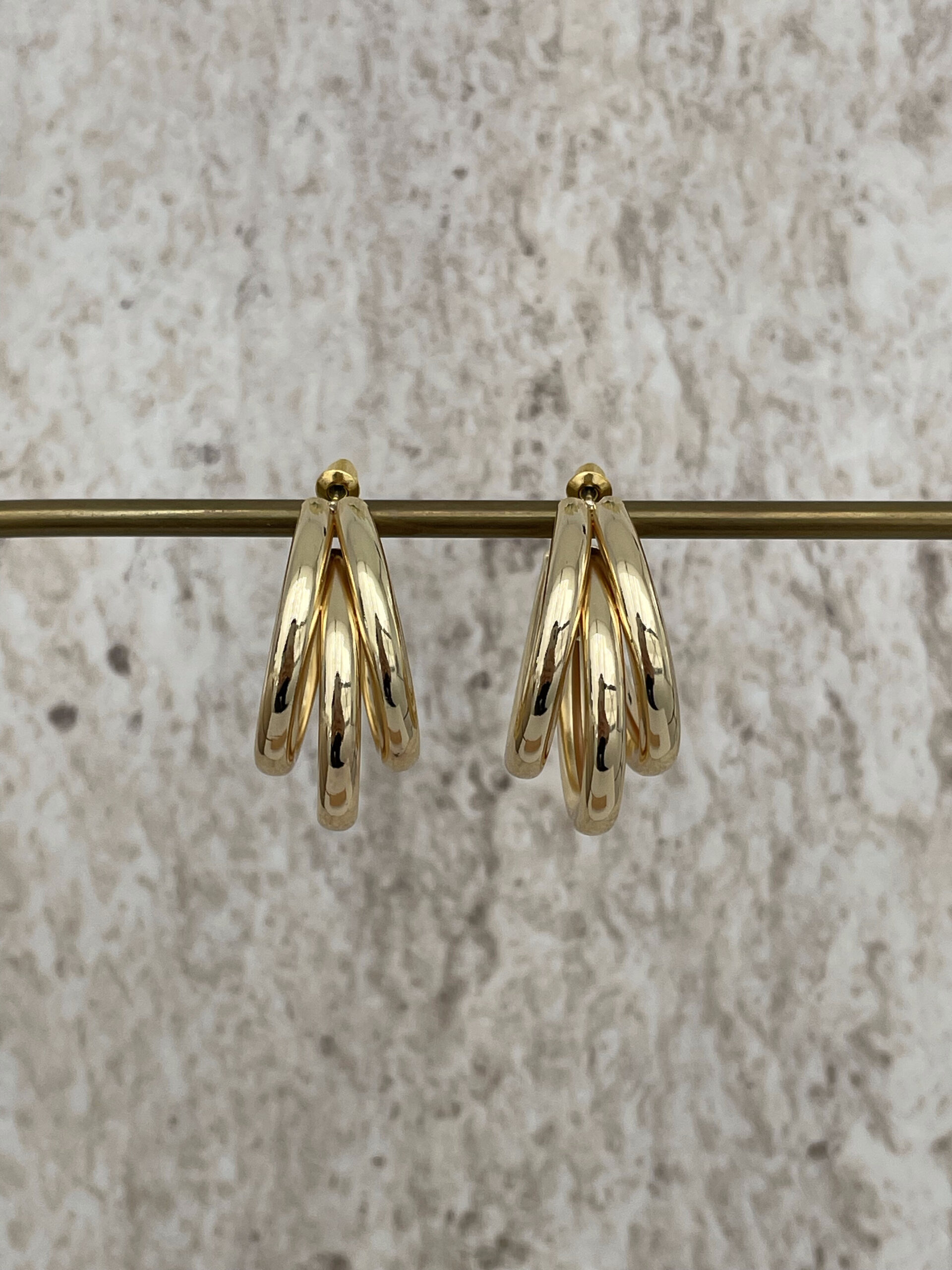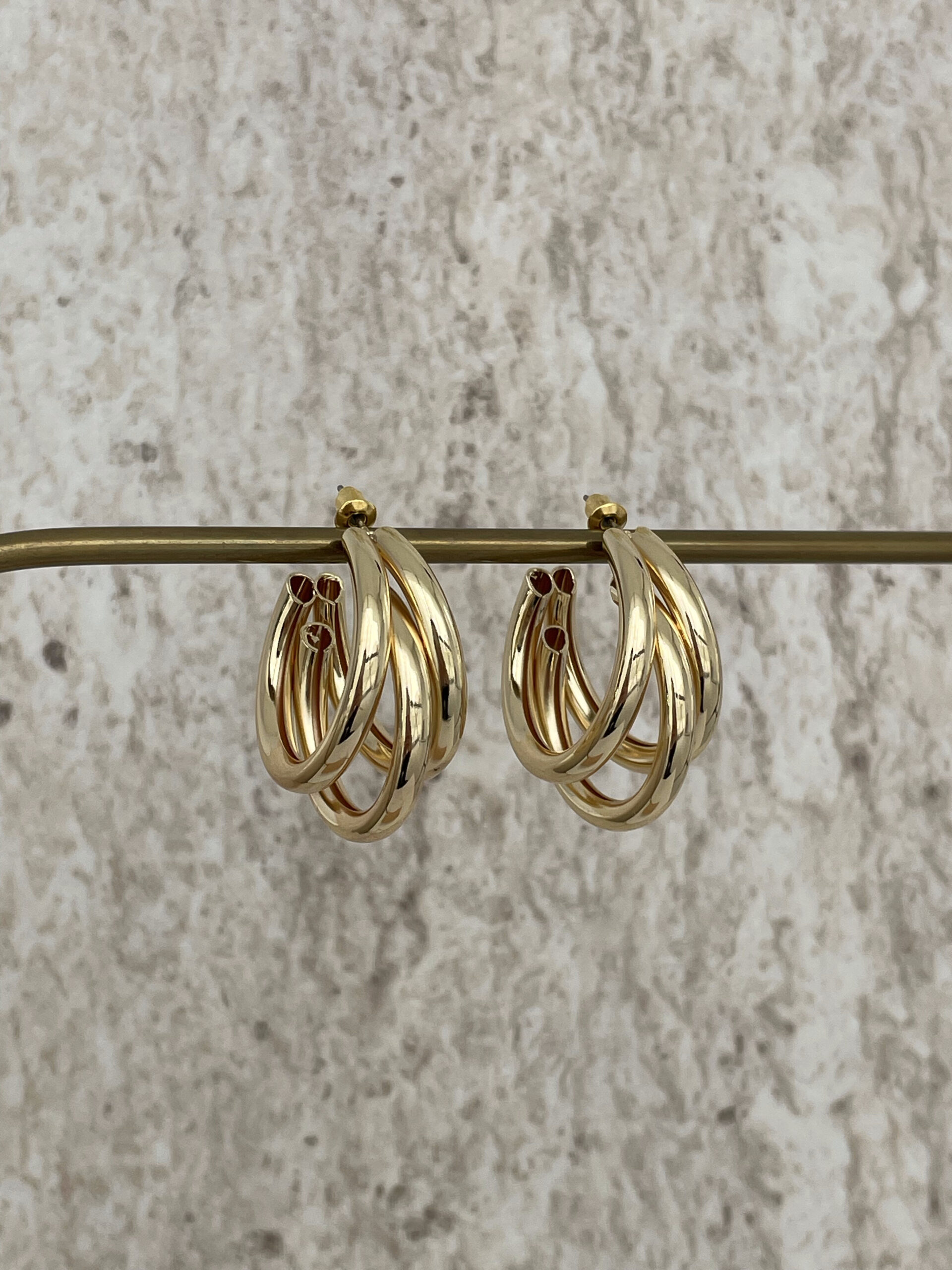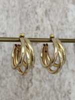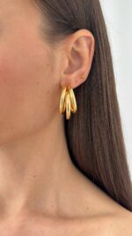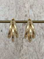 Özel Seri Üçlü Halka Tasarım Orta Boy Gold Küpe