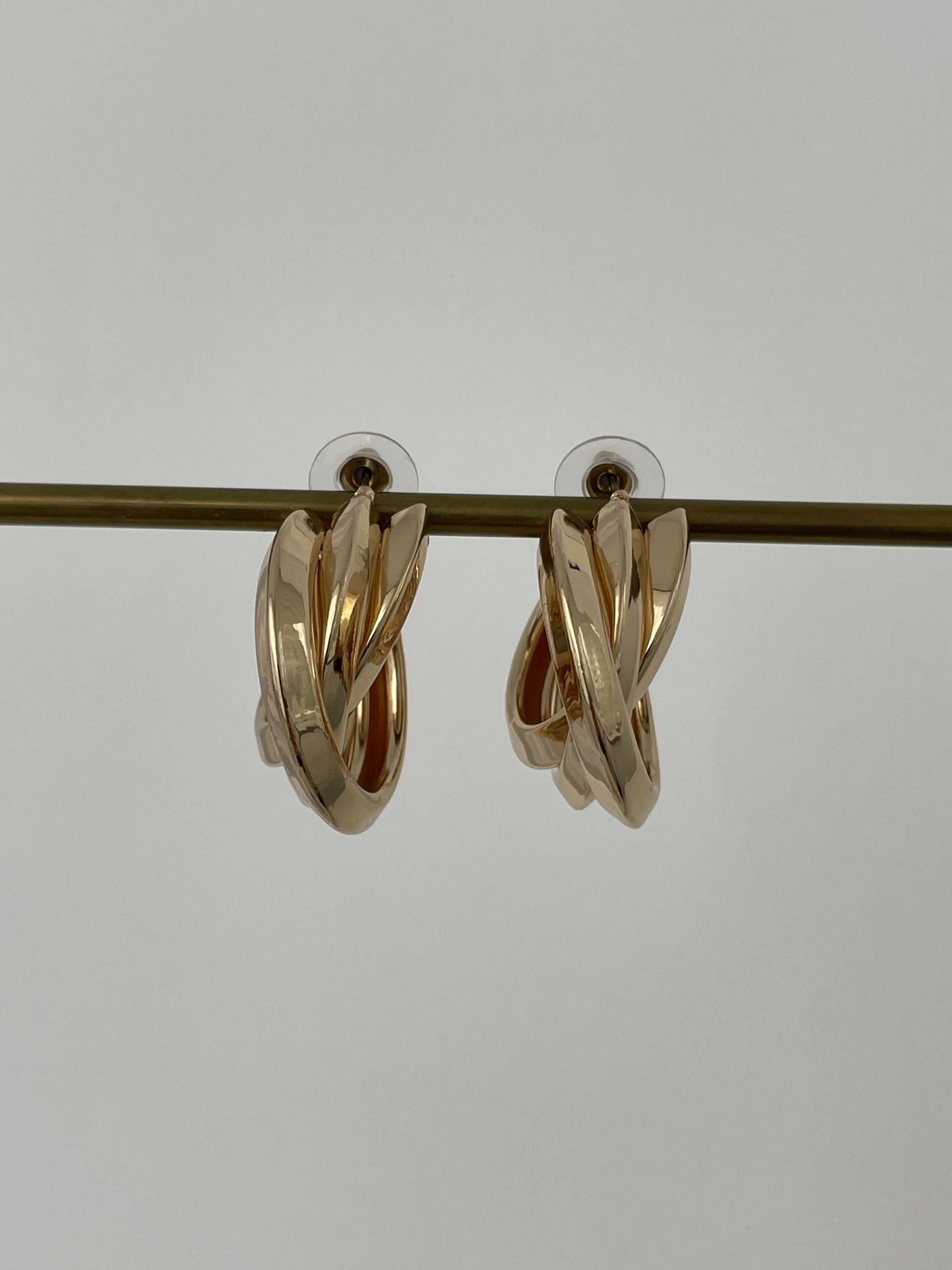 Özel Seri Üçlü Kıvrım Geometrik Tasarım Gold Küpe