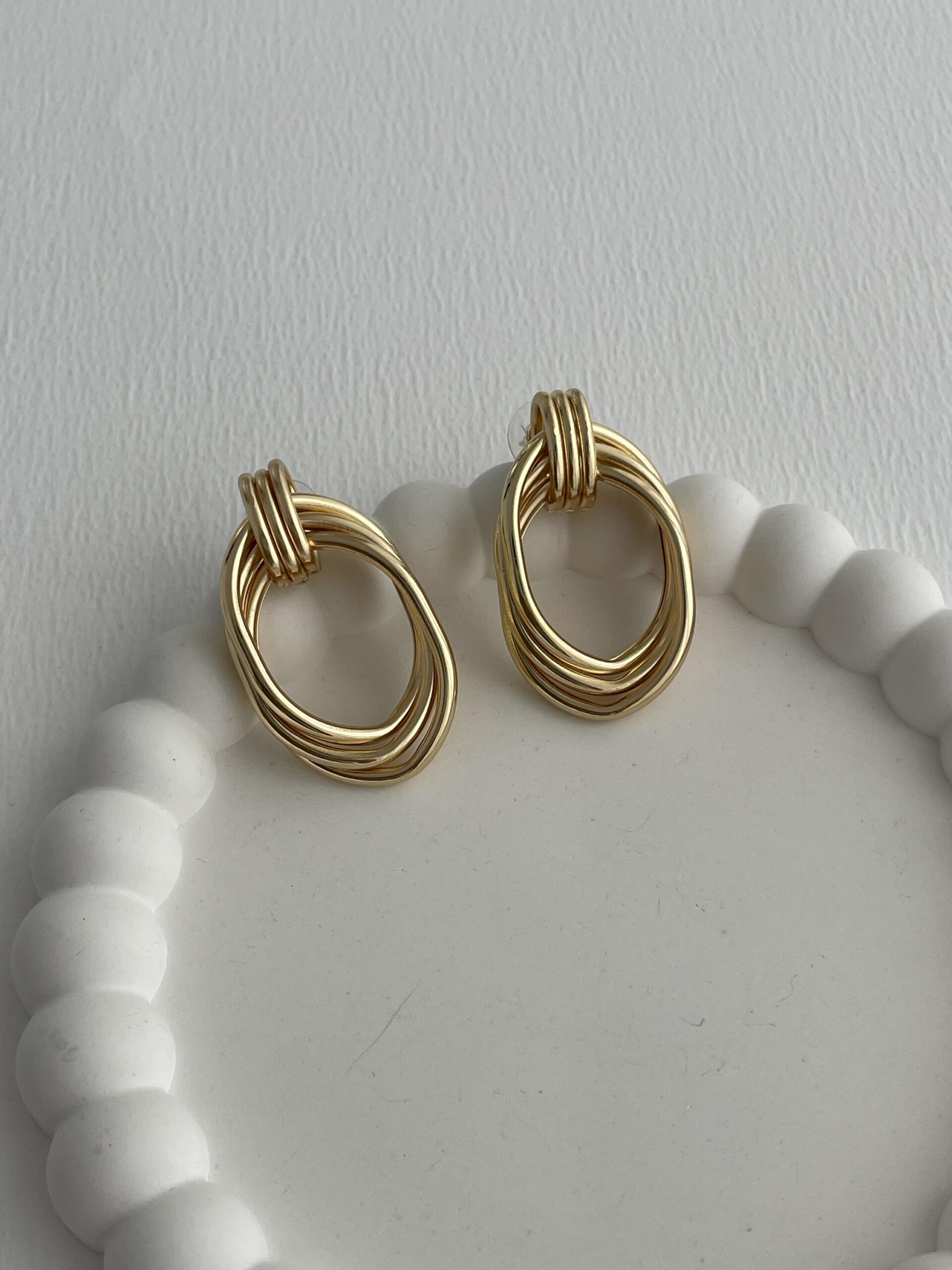 Özel Seri Üçlü Oval Tasarım Gold Küpe