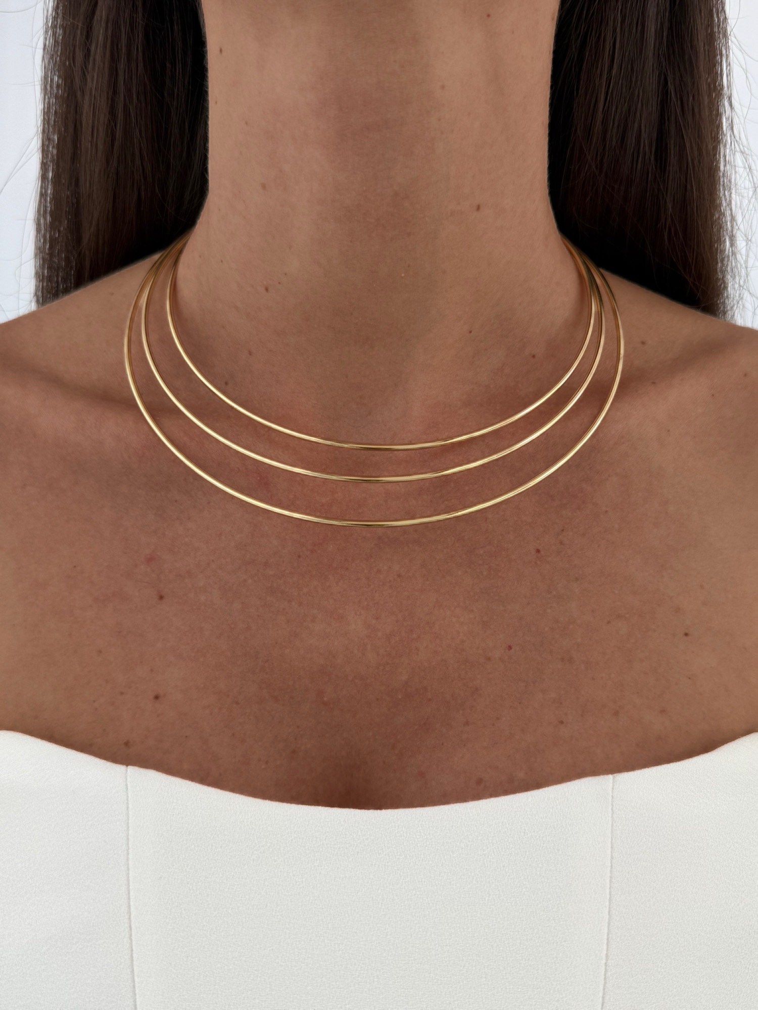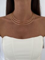 Özel Seri Üçlü Tel Tasarım Gold Choker Kolye