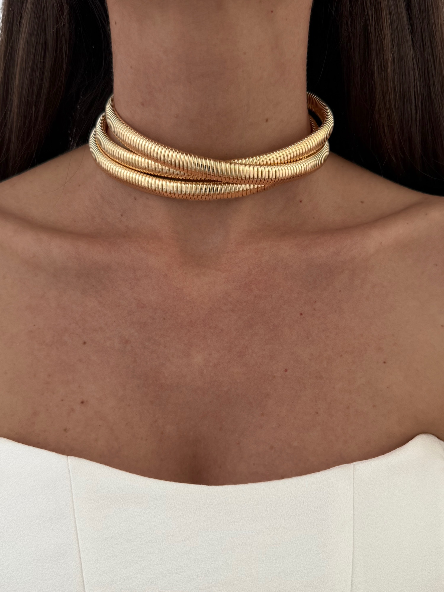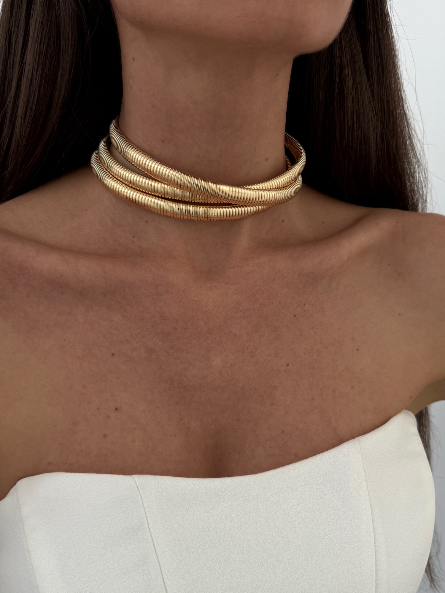 Özel Seri Üçlü Tırtık Model Gold Choker Kolye