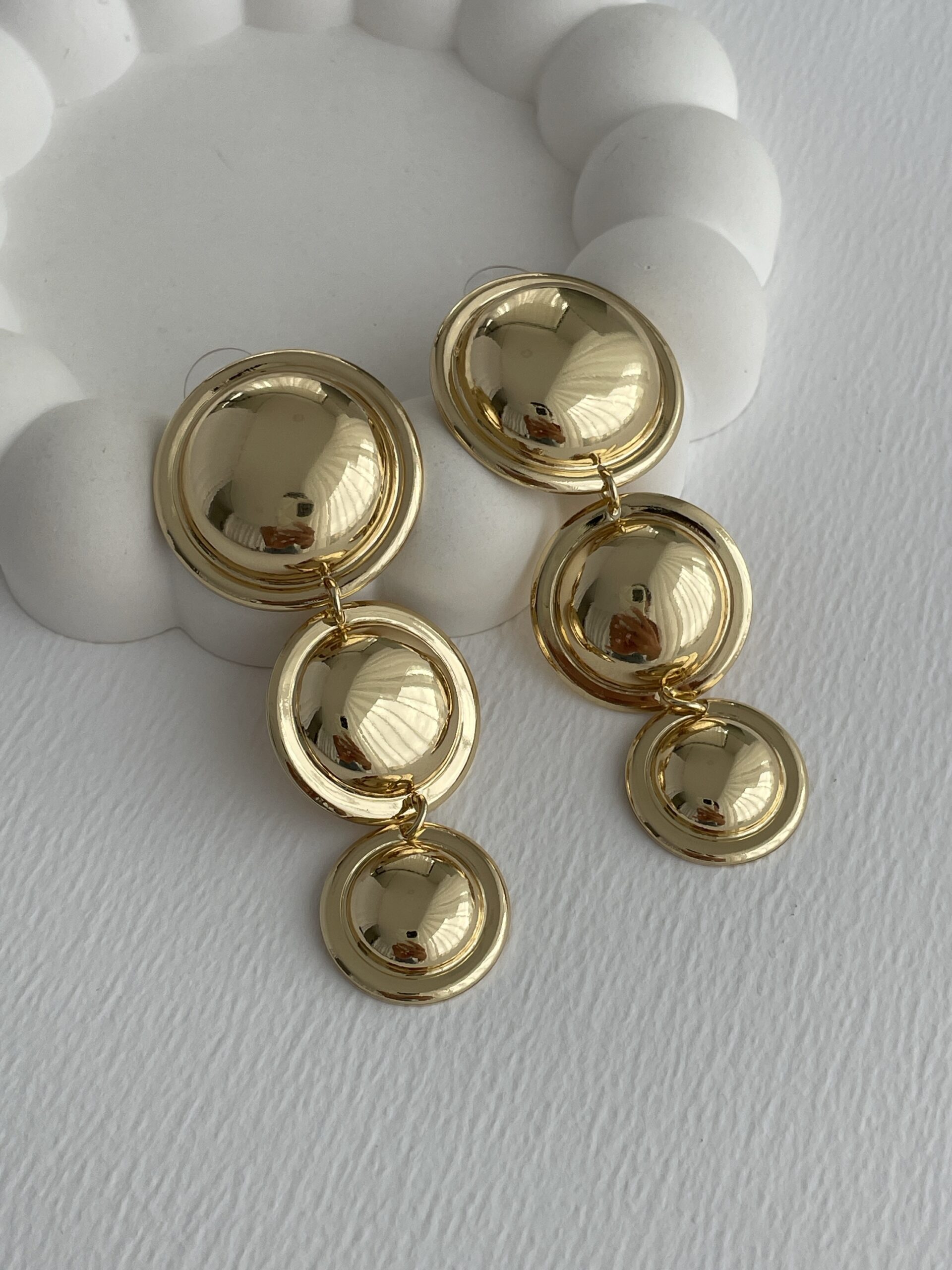 Özel Seri Üçlü Yuvarlak Tasarım Maksi Boy Gold Küpe