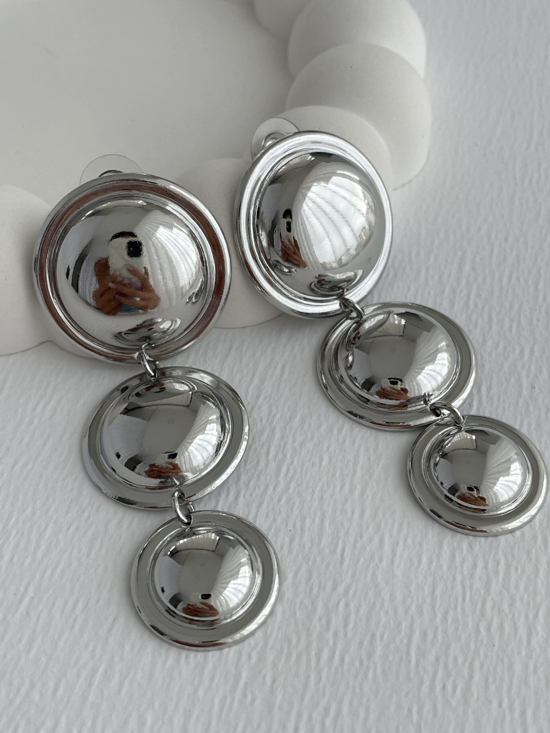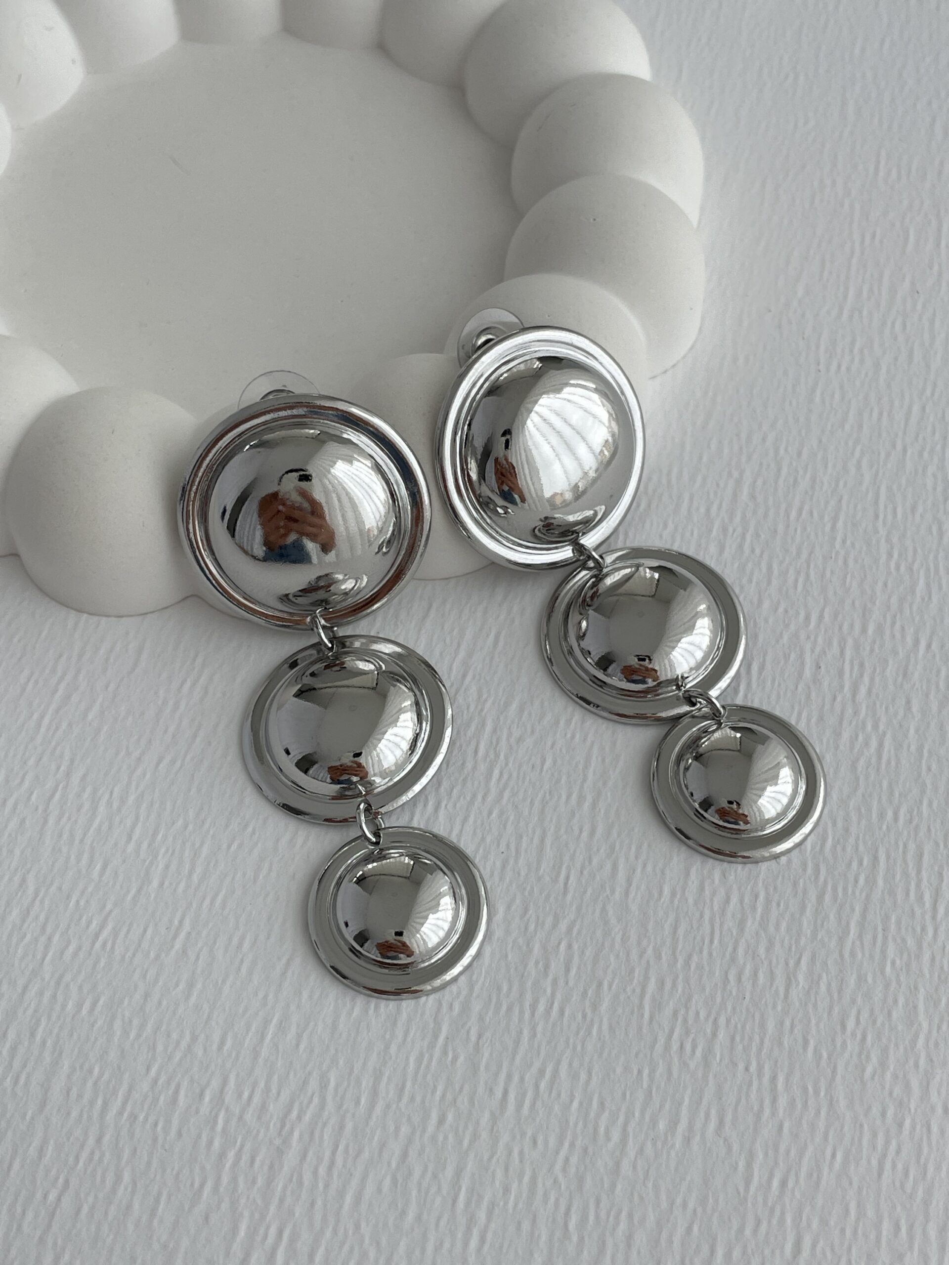Özel Seri Üçlü Yuvarlak Tasarım Maksi Boy Gümüş Küpe
